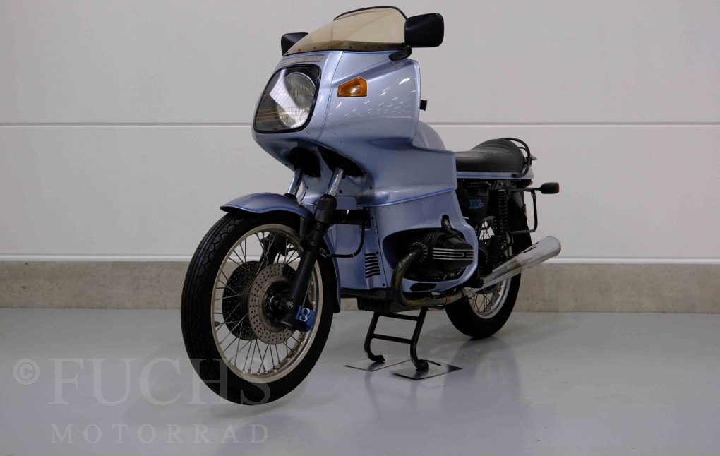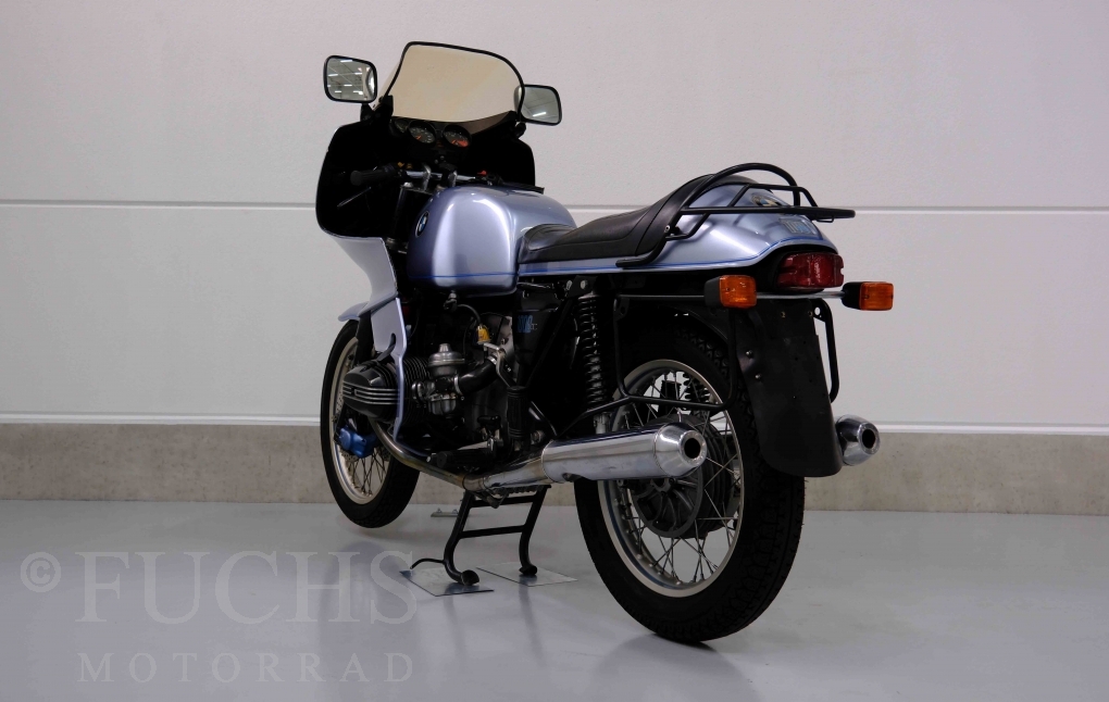 Die R 100 RS hat sich über viele Jahre großer Beliebtheit erfreut. Rund 33.000 Fahrzeuge wurden gebaut. Diese RS stammt aus den ersten Produktionsjahren was optisch leicht durch die Speichenräder zu identifizieren ist. Mit deer Vollverkleidung waren problemlos hohe Reisegeschwindigkeiten möglich. Nach einer Inspektion und der Montage neuer Reifen, ist die RS für ausgedehnte Motorradtouren in Verbindung mit dem Rückstoß in die frühen 80 Jahre bereit.