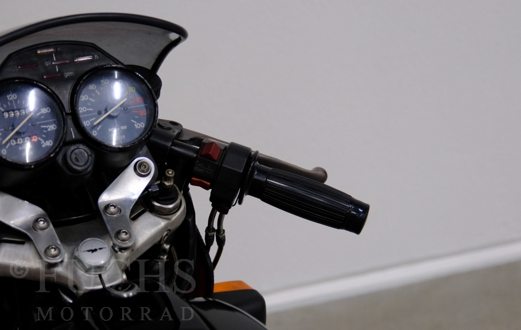 Mit einer Stückzahl von 11.045 war die Le Mans 2 ein erfolgreiches Sportmotorrad der Marke Moto Guzzi. Unsere Le Mans ist in den vergangenen Jahrzehnten mehrfach überholt und restauriert worden und befindet sich deshalb in einem guten Zustand. Auch wenn aktuell ein frischer Service mit neuen Reifen ansteht, gefällt uns die Qualität dieser attraktiven Guzzi.