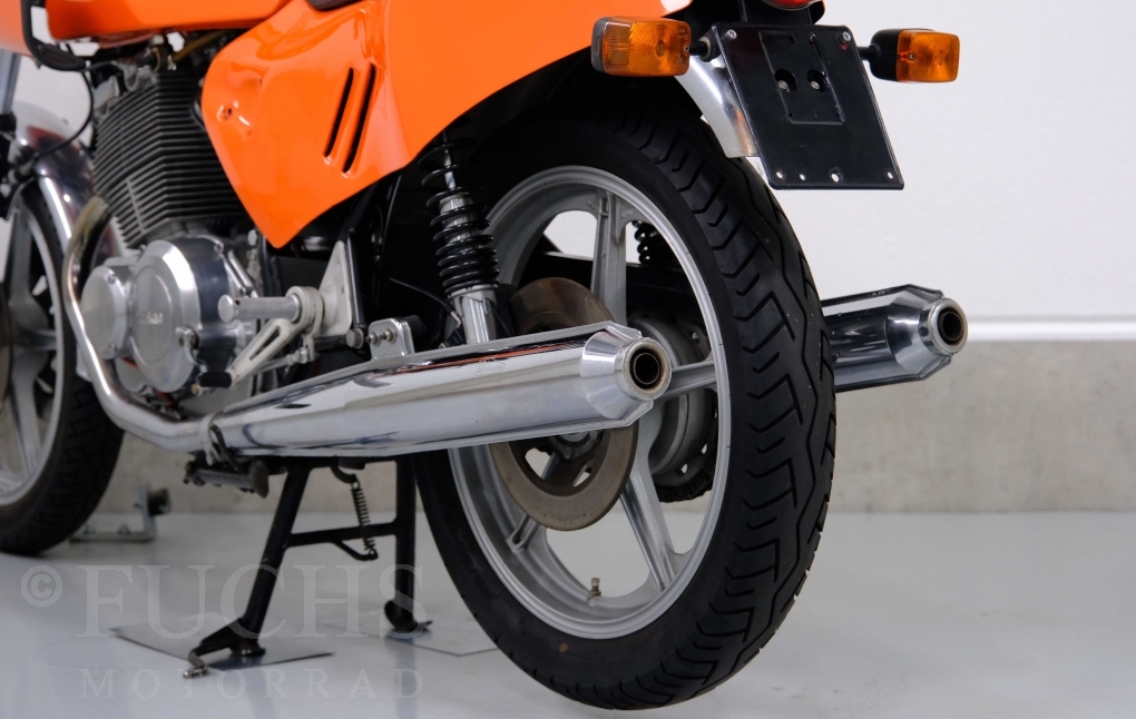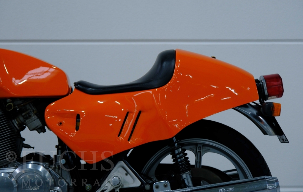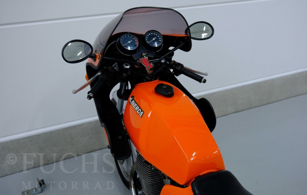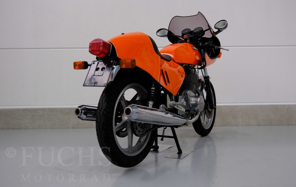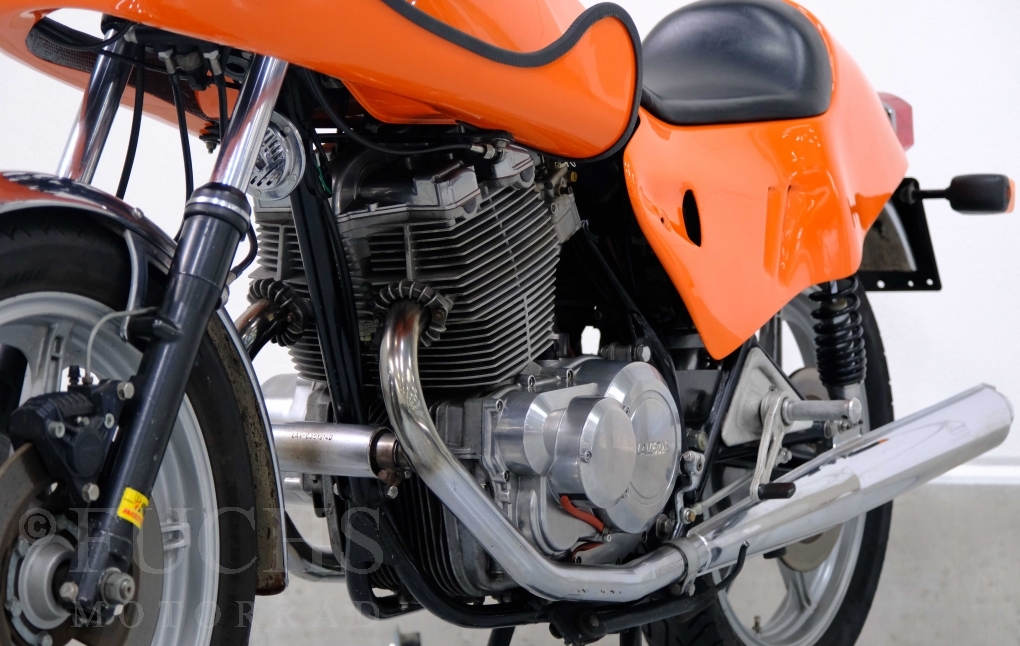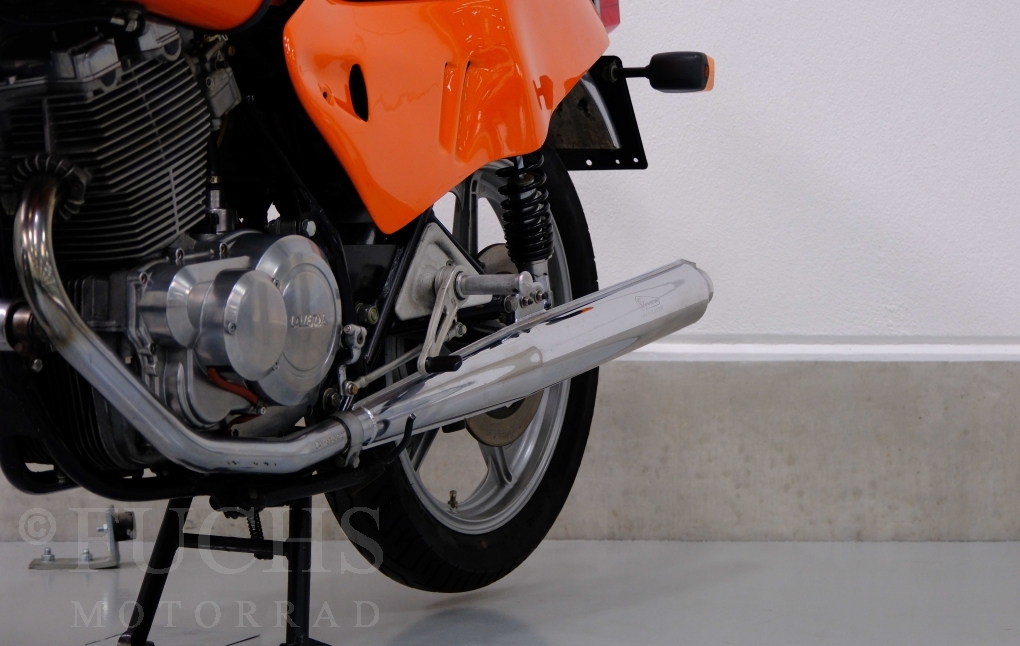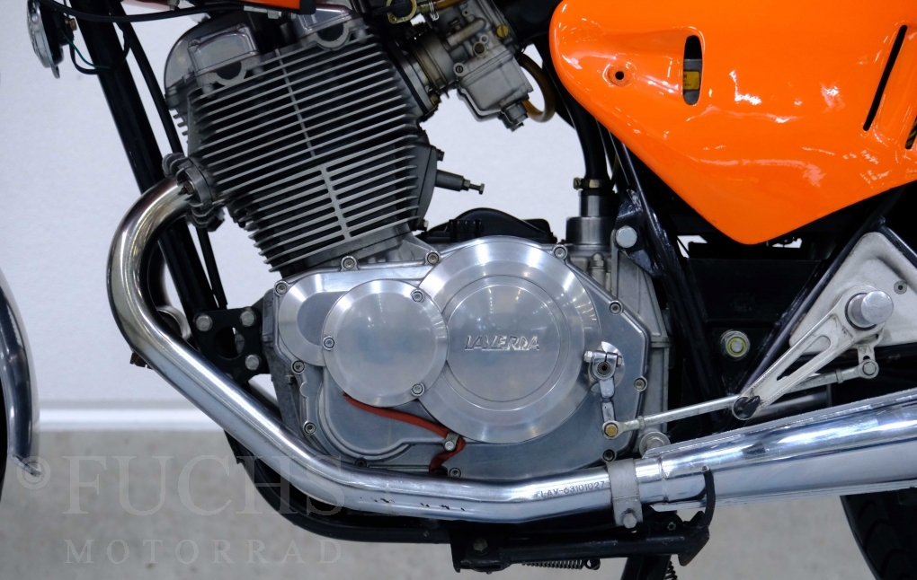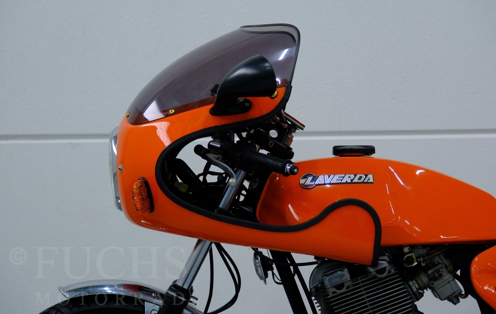 Moto-Witt war Anfang der 80er Jahre in Deutschland Importeur der Marke Laverda. Mit einer geringen Stückzahl von rund 50 Fahrzeugen hat er eine SFC Version aufgebaut. Die nummerngleiche Laverda können wir in einem sehr schönen Zustand anbieten. Zu den typischen Modifikationen der SFC gehörte die Verkleidung, Fußrastenanlage, Marzocchi Vorderradgabel. Die Laverda war Bestandteil einer Sammlung und kann je nach Kundenwunsch wieder in Betrieb genommen werden. Deutsche Fahrzeugpapiere liegen vor.