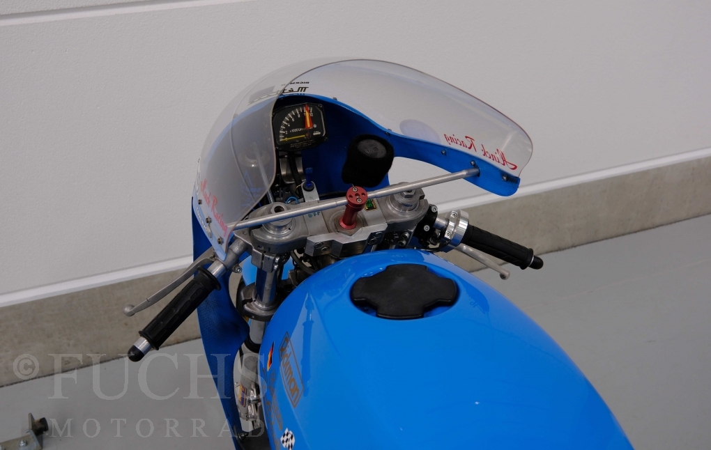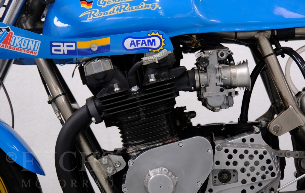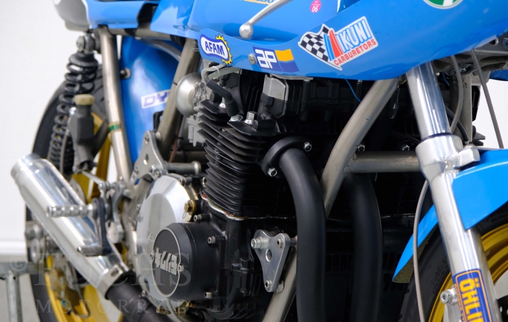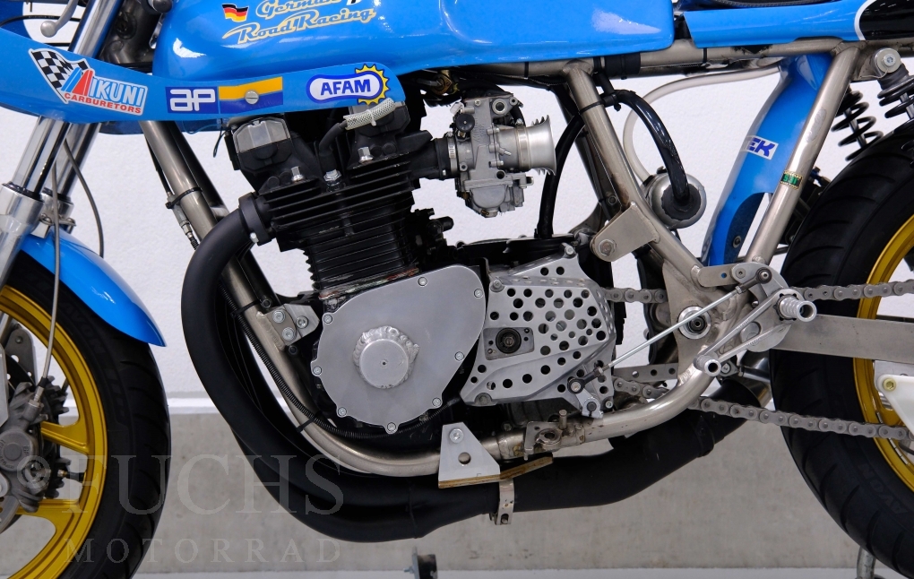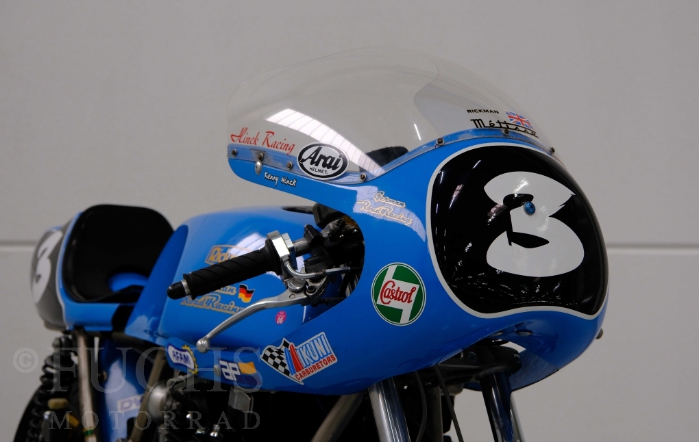 Den ursprünglichen Fahrzeugpapieren können wir entnehmen, dass die Rickman 1975 erstmalig in Deutschland zugelassen wurde. Vor einigen Jahren erfolgte der neue zur Rickman Kawa. Ein aktueller Service und die Rickman ist ready to race.