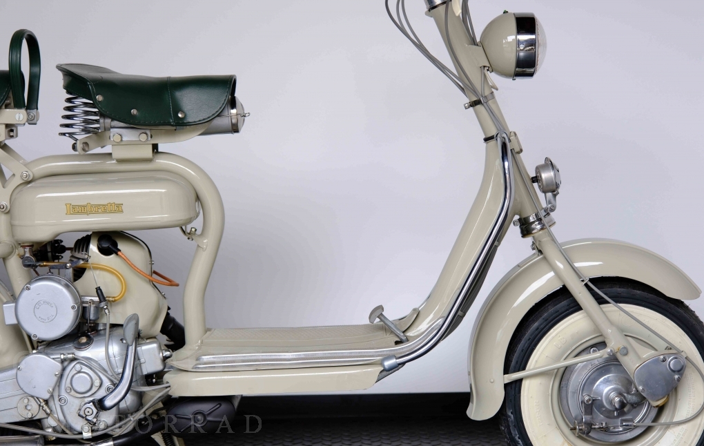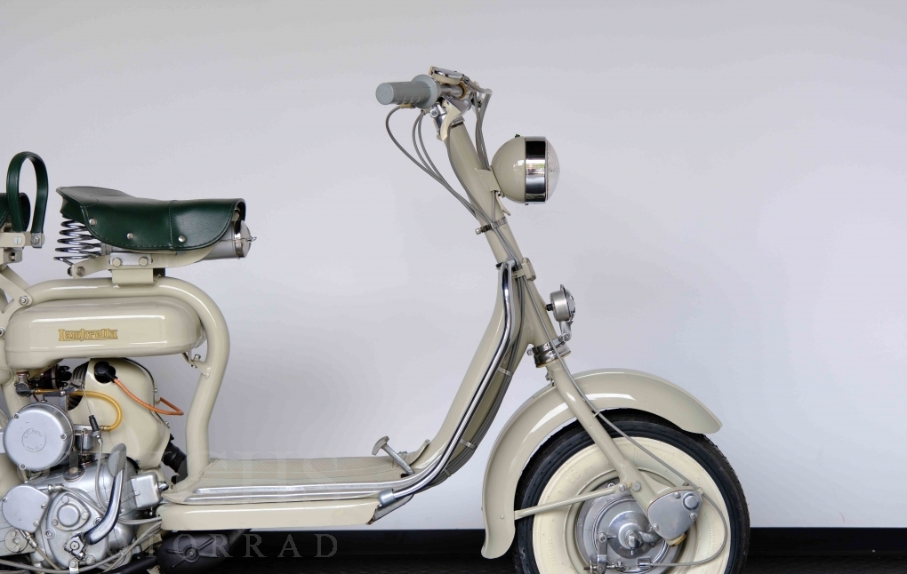 The 150 D MK2 was developed as an economical version. From todays perspective, this Lambretta is particularly attractive. Ferdinando Innocenti lived from 1891 to 1966. He succeeded in building a scooter empire. Licences for production facilities were granted worldwide. Production in Italy was discontinued in 1971. Our Lambretta 150 D MK2 dates back to the early years and is in very good condition. Thanks to expert restoration, we are delighted to be able to present this Lambretta.