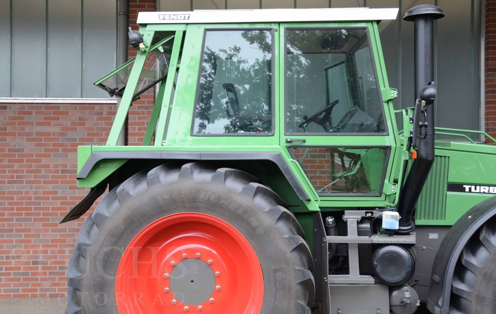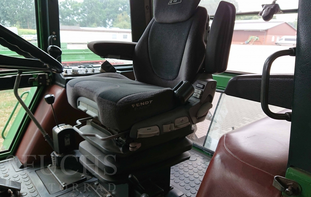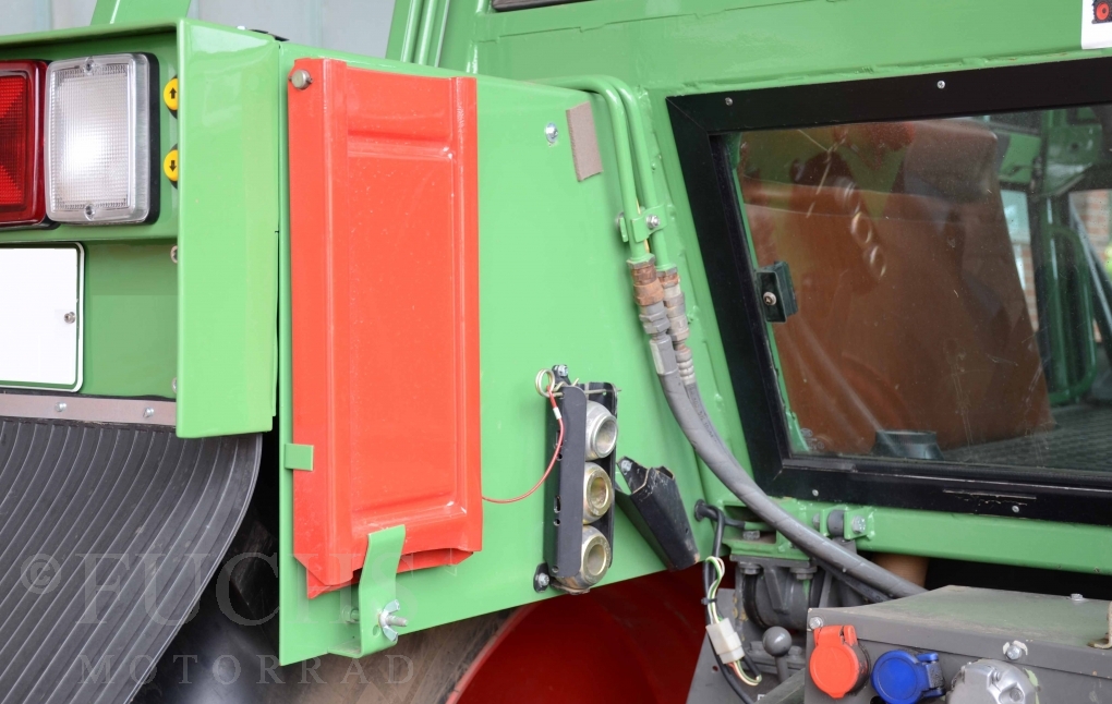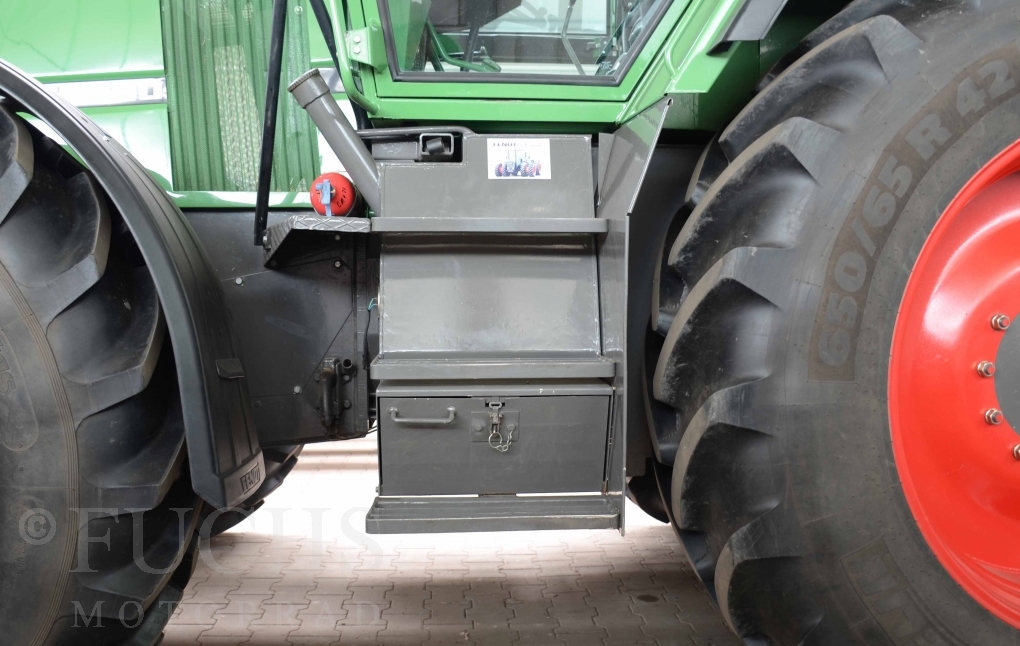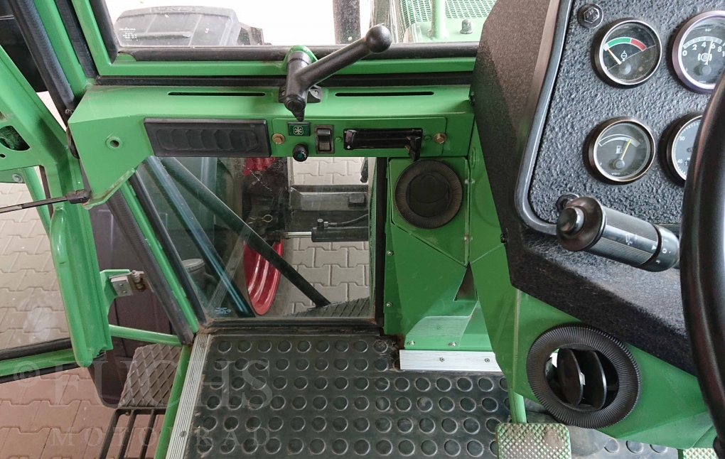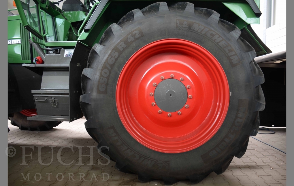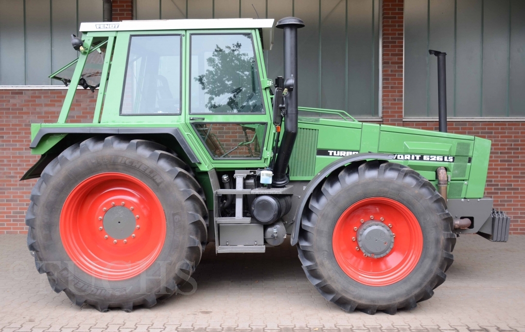 Unser Nasenbär wurde 1984 produziert. Die Erstzulassung erfolgte 1985 in Italien. Im Jahr 2012 wurde die Restaurierung in Deutschland abgeschlossen. Zur umfangreichen Restaurierung liegt eine Fotodokumentation und diverse Unterlagen vor. Mit der geringen Produktionsmenge von 61 Fahrzeuge zählt der Fendt Favorit 626 LS schon seit Jahren zu den gesuchten Traktoren weltweit. Ein Großteil der damaligen Produktion wurde nach Saudi Arabien exportiert. Die anspruchsvolle, komplizierte Konstruktion einschließlich der Transaxle Bauweise hat zu dieser Sonderstellung der Oldtimer Traktoren geführt. Der Motor wurde vor der Vorderachse angeordnet und in einem stabilen Plattenrahmen aufgehängt. Noch heute überzeugt der Fendt mit seiner komfortablen Bedienung und Kraftentfaltung. Unser Nasenbär war seit seiner Restaurierung immer wieder im angemessenen Einsatz, damit mögliche Standschäden verhindert wurden. Bitte stimmen Sie einen Besichtigungstermin mit uns ab, da der Nasenbär auf Grund seiner Größe ausgelagert wurde. Immerhin hat das Fahrzeug 42 Zoll am Hinterrad, ein Gewicht von rund 10 Tonnen, 3.10 m Höhe, 5.66m Länge und eine Gesamtbreite von 2.44 m bei einer Höchstgeschwindigkeit von 40 km/h