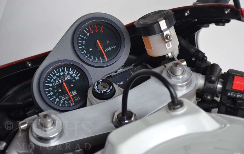Immerhin ist die Maschine mittlerweile 32 Jahre alt. Die geringe Laufleistung und der ausgezeichnete Zustand waren für uns ausschlaggebend, dass wir diese GSX-R angekauft haben. Die Historie und die geringe Laufleistung sowie den technischen Zustand können wir dokumentieren.