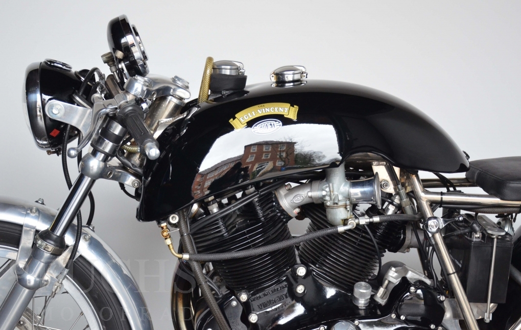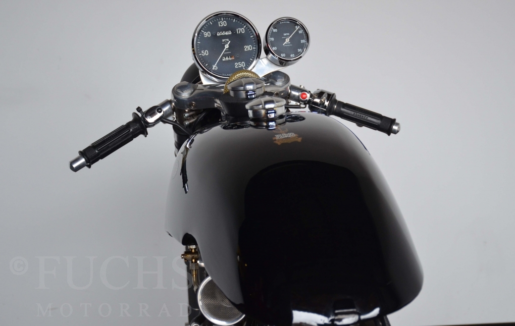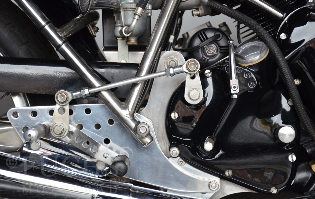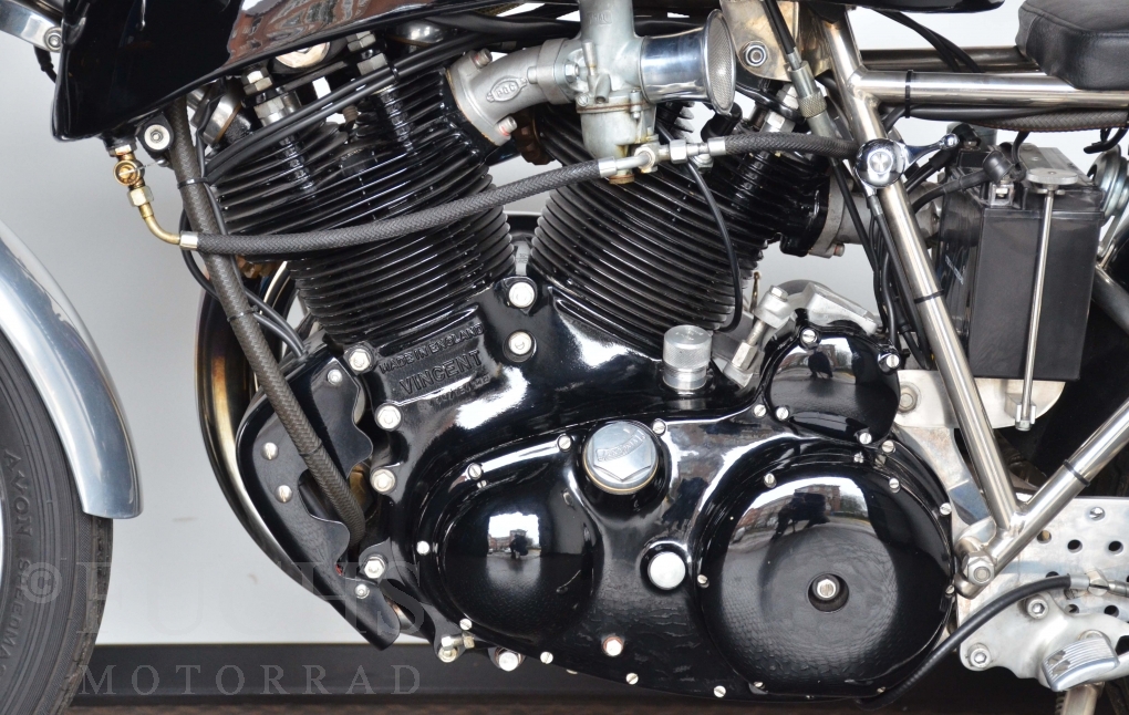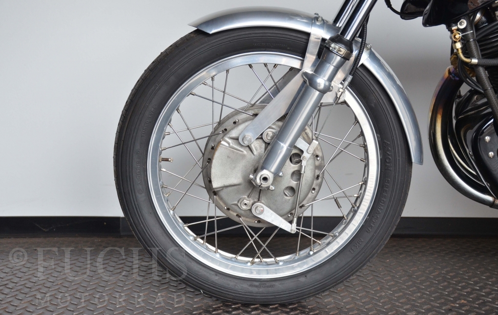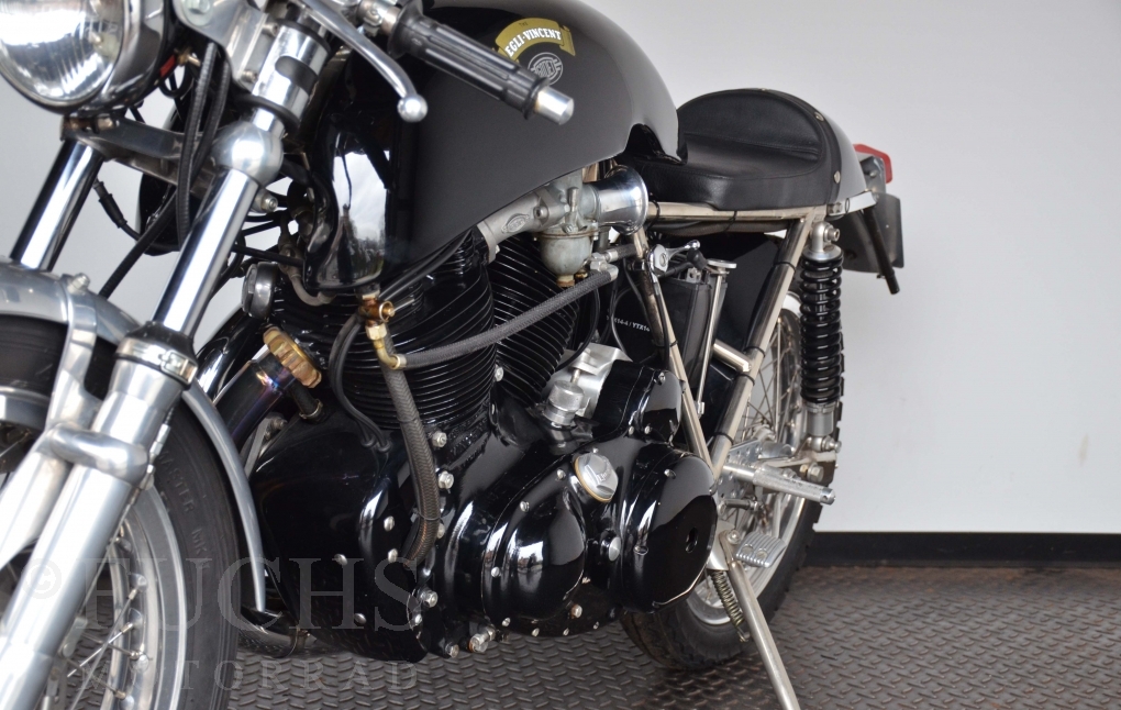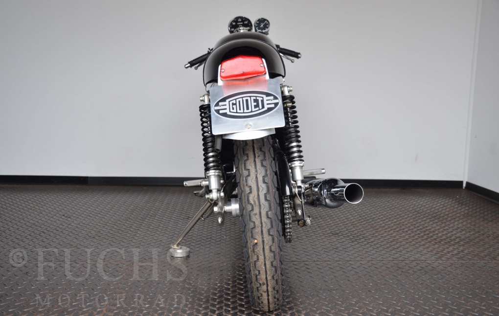 Ursprünglich hat Patrick Godet diese bildschöne Maschine für sich mit einem Vincent Black Shadow Motor gebaut. Durch seine anspruchsvolle Arbeit konnte Patrick Godet sich einen Betrieb mit einer international beachteten Reputation aufbauen. Leider ist Patrick Godet im Jahr 2018 verstorben. Francois Chevalier der als Eigentümer, der Rennstrecke Paul Ricard bekannt wurde, hat ihm die Maschine im Jahr 2001 abkaufen können. Es liegen deshalb französische Fahrzeugpapiere vor. Aber eine Zulassung in Deutschland ist jederzeit möglich. Die Godet ist optisch und auch technisch in einem sehr guten Zustand.