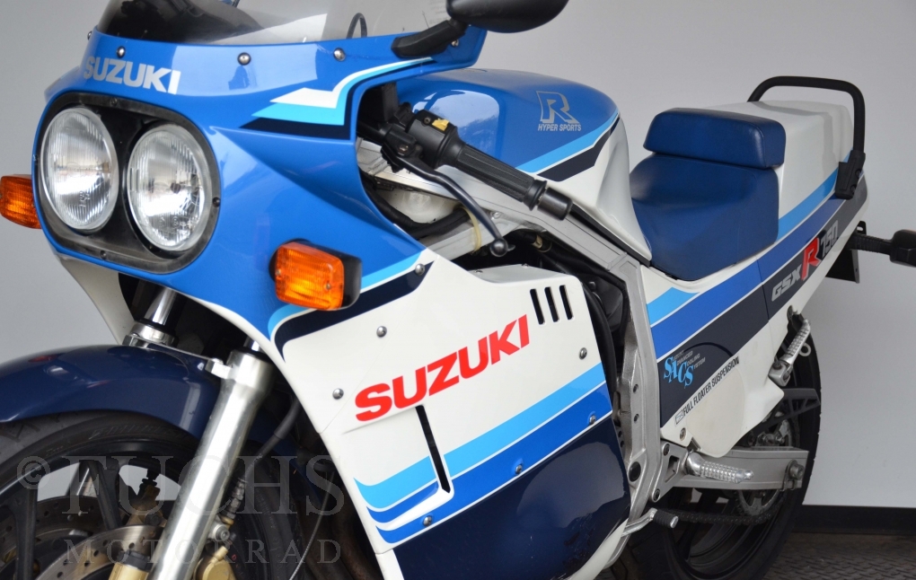 Die Suzuki GSX-R 750 können wir in einem sehr schönen originalen Zustand präsentiert. Die unrestaurierte Suzuki aus der ersten GSX-R Serie hat nur wenige Gebrauchsspuren.