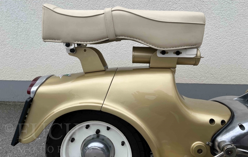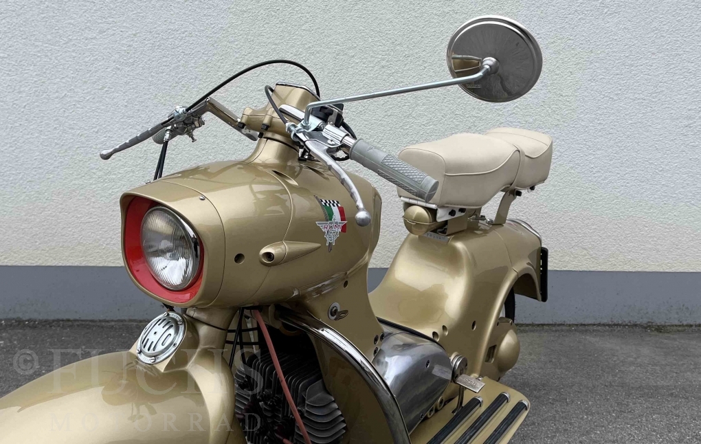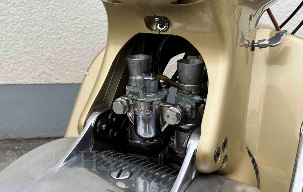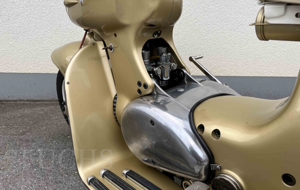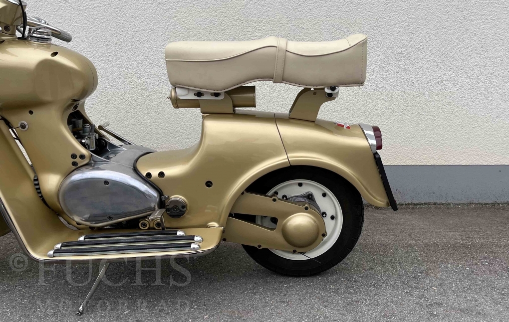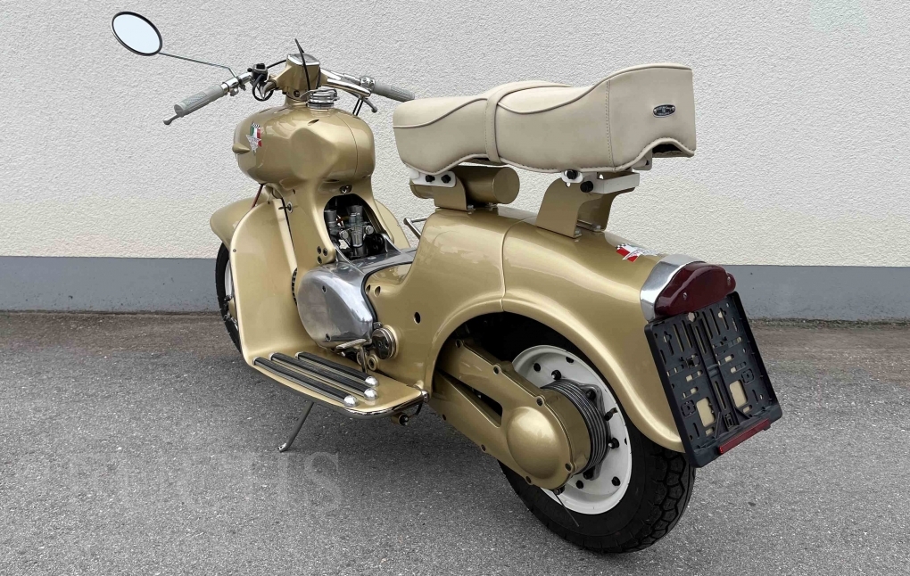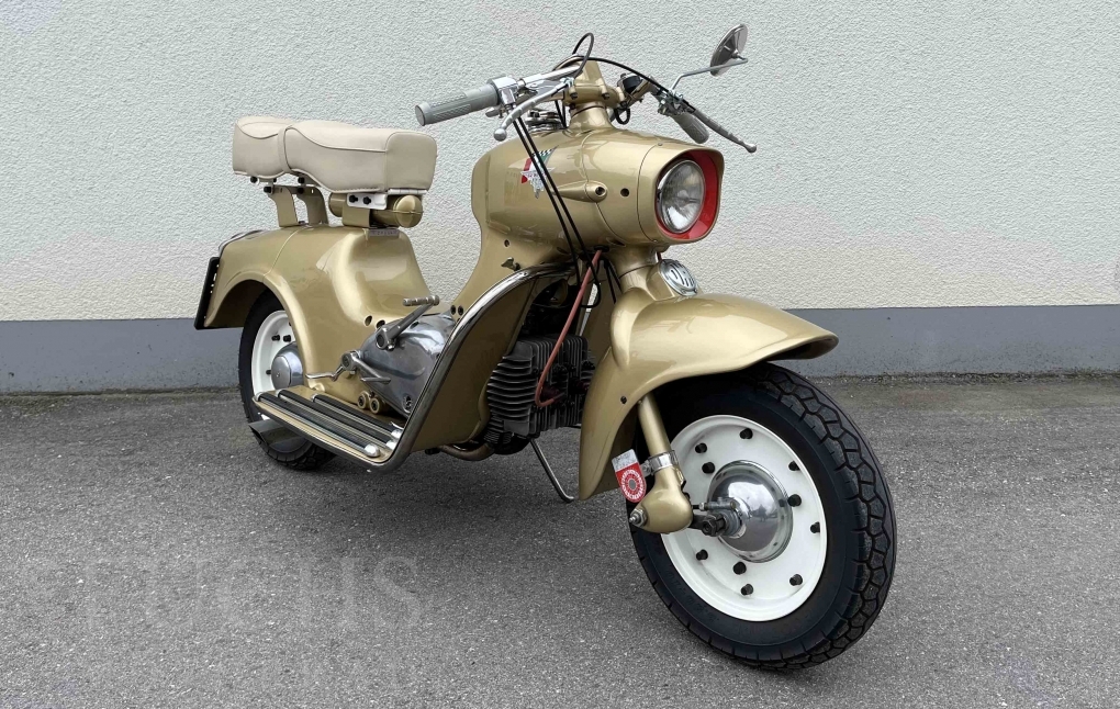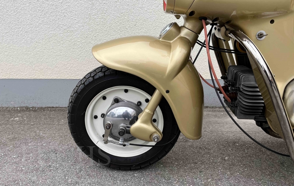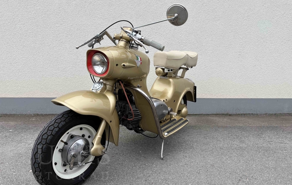 Nachdem Rumi mehrere Erfolge in Frankreich beim 24 Stunden Rennen erreicht hat, wurde mit dem Sondermodell Bol D or in die Märkte gebracht. In erster Linie wurden die wenigen Exemplare nach England und Frankreich exportiert. Es bot sich die goldene Farbe an, denn in Frankreich wurde auch ein Goldpokal gewonnen. Mit einer Höchstgeschwindigkeit von rund 130 km/h einer der schnellsten Roller seiner Zeit. Unser Exemplar ist mit den typischen Details wie einem Z-Lenker und 140 km/h Tacho ausgestattet. Wesentlicher sind selbstverständlich sind die zwei Vergaser, die den höher verdichteten Motor mit ausreichend Kraftstoff versorgen, damit die Ameise richtig vorwärts geht.