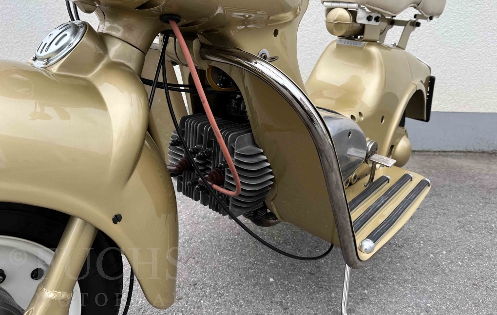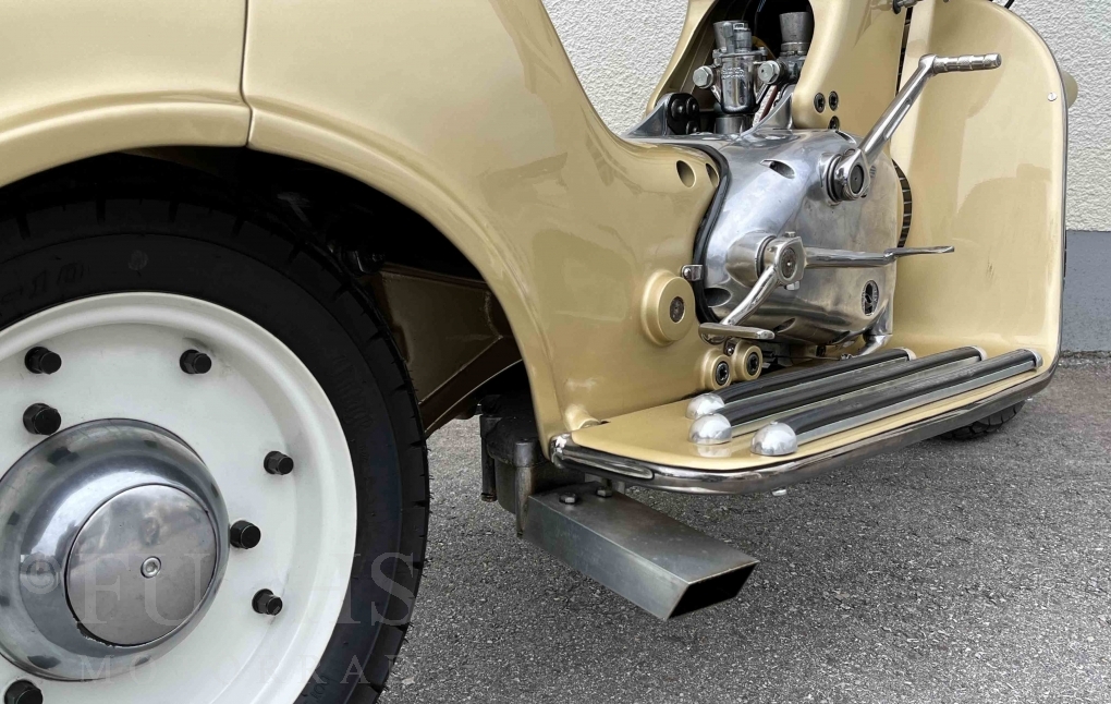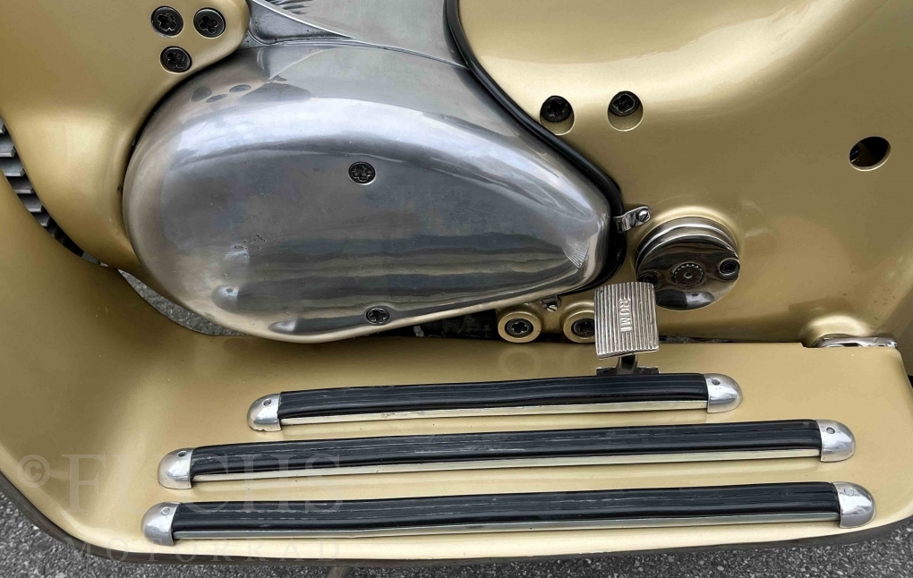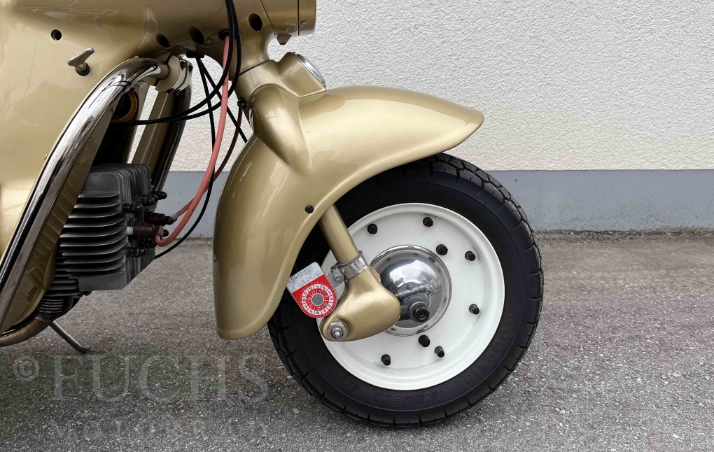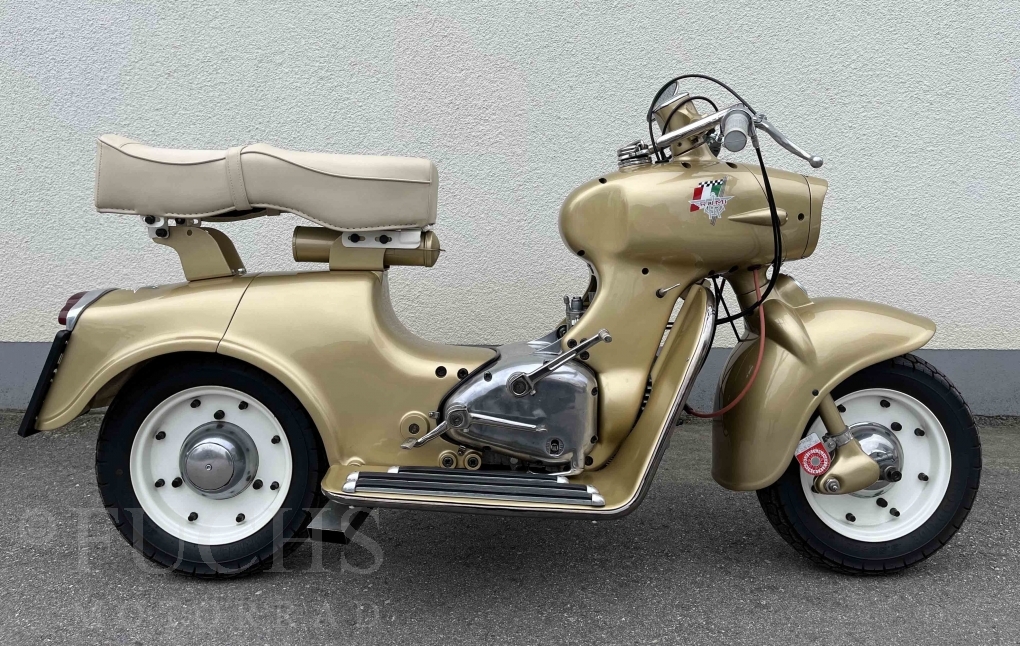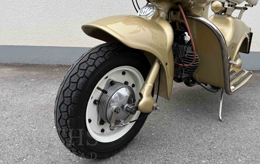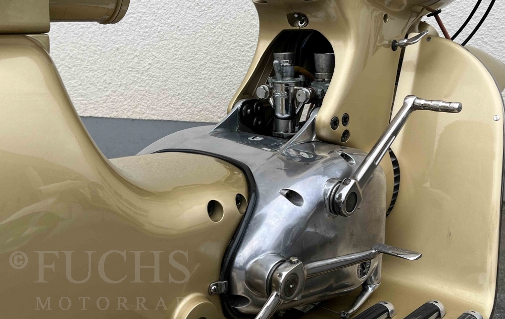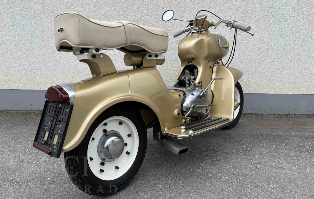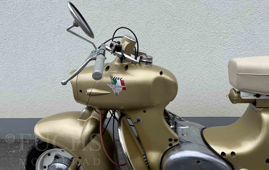 Nachdem Rumi mehrere Erfolge in Frankreich beim 24 Stunden Rennen erreicht hat, wurde mit dem Sondermodell Bol D or in die Märkte gebracht. In erster Linie wurden die wenigen Exemplare nach England und Frankreich exportiert. Es bot sich die goldene Farbe an, denn in Frankreich wurde auch ein Goldpokal gewonnen. Mit einer Höchstgeschwindigkeit von rund 130 km/h einer der schnellsten Roller seiner Zeit. Unser Exemplar ist mit den typischen Details wie einem Z-Lenker und 140 km/h Tacho ausgestattet. Wesentlicher sind selbstverständlich sind die zwei Vergaser, die den höher verdichteten Motor mit ausreichend Kraftstoff versorgen, damit die Ameise richtig vorwärts geht.