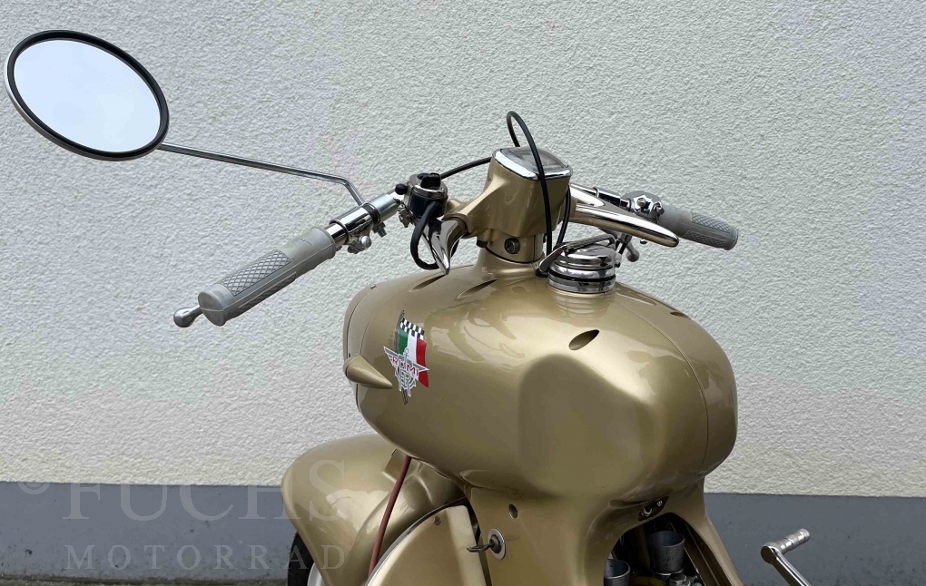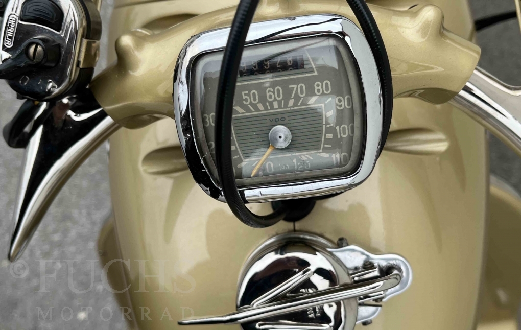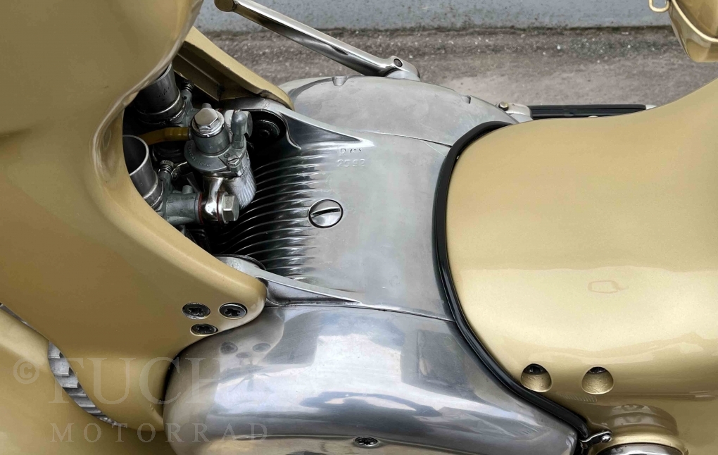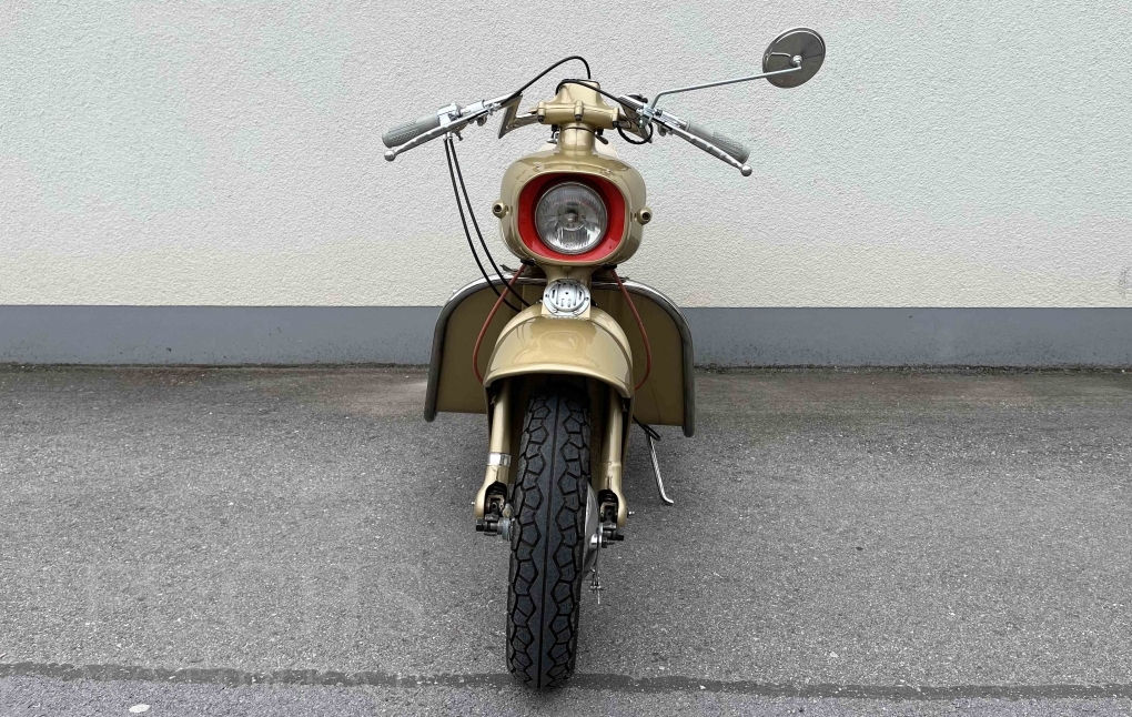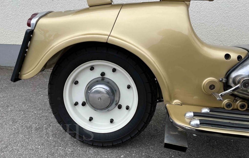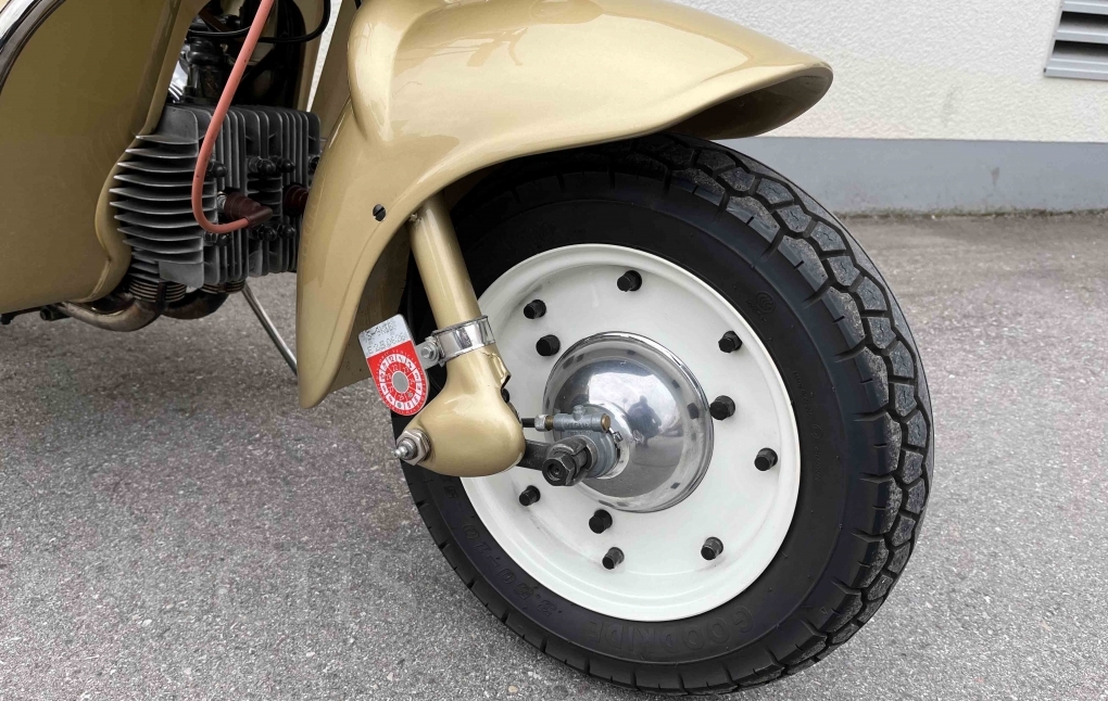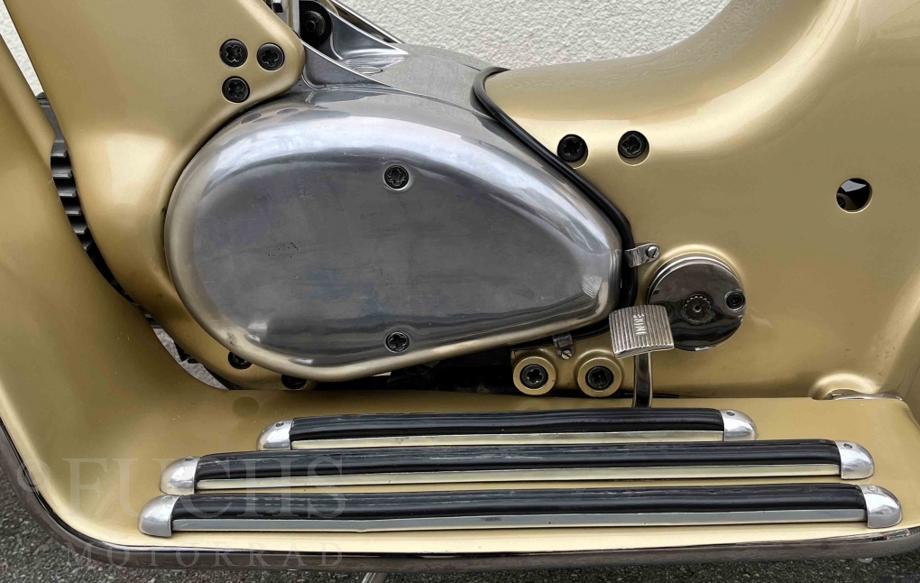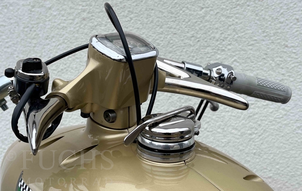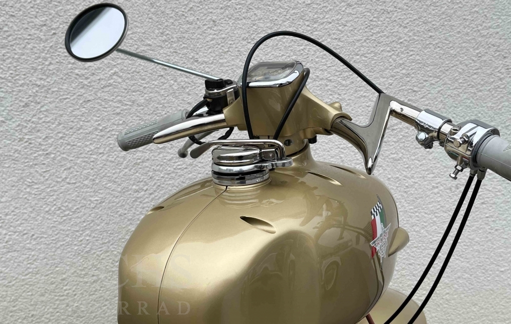 Nachdem Rumi mehrere Erfolge in Frankreich beim 24 Stunden Rennen erreicht hat, wurde mit dem Sondermodell Bol D or in die Märkte gebracht. In erster Linie wurden die wenigen Exemplare nach England und Frankreich exportiert. Es bot sich die goldene Farbe an, denn in Frankreich wurde auch ein Goldpokal gewonnen. Mit einer Höchstgeschwindigkeit von rund 130 km/h einer der schnellsten Roller seiner Zeit. Unser Exemplar ist mit den typischen Details wie einem Z-Lenker und 140 km/h Tacho ausgestattet. Wesentlicher sind selbstverständlich sind die zwei Vergaser, die den höher verdichteten Motor mit ausreichend Kraftstoff versorgen, damit die Ameise richtig vorwärts geht.