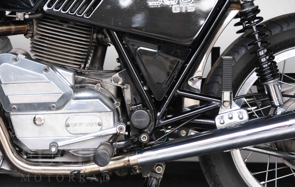 Falloon schreibt in seiner Bibel, dass nur 150 Stück gebaut wurden. Folglich ist die 900 GTS eine Rarität. Unsere 900 GTS wurde aus England im Jahr 2000 nach Deutschland geholt und hat jetzt deutsche Fahrzeugpapiere. Die Nummernkreise für die Fahrgestellnummer und Motornummer entsprechen dem Modelljahr 1978. Aus unserer Sicht kann von matching numbers gesprochen werden. In den vergangenen Jahren wurde die GTS von einem versierten Mechaniker betreut, der sich viele Jahrzehnte mit Ducati Motoren beschäftigt und auch für den klassischen Rennsport arbeitet. Seine Arbeit hat sich ausgezahlt, denn die 900 GTS läuft einwandfrei.