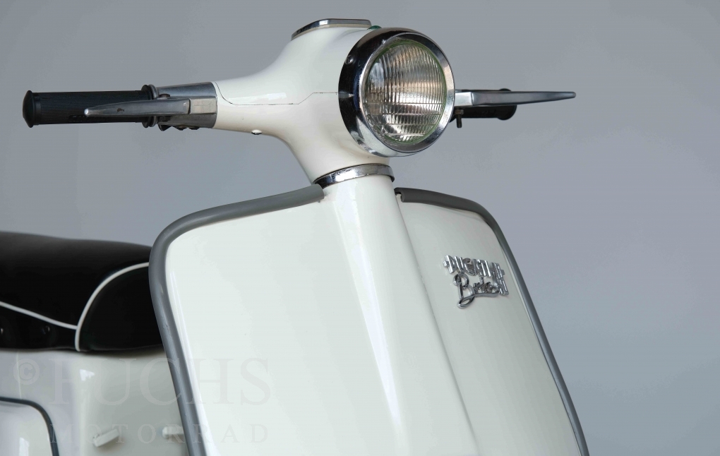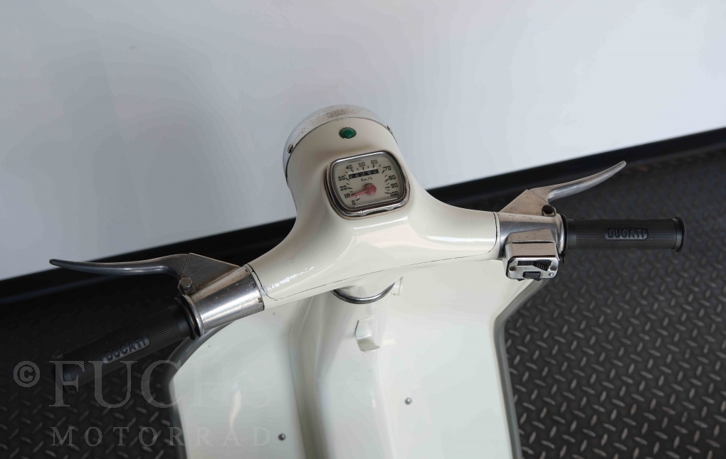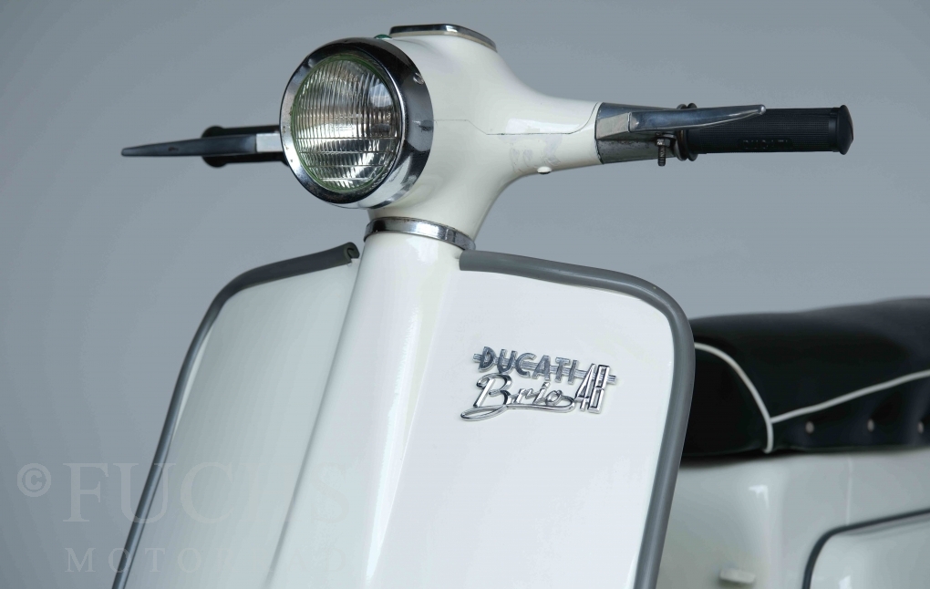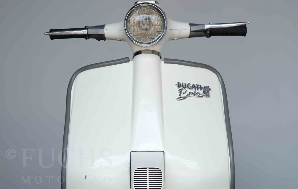 Der Brio 48 war Ducatis zweiter Versuch, im wachsenden Markt für Motorroller Fuß zu fassen. Entwickelt wurde er vom renommierten italienischen Architekten und Designer Gio Ponti, der für seine elegante Formensprache bekannt war. Präsentiert wurde der Roller erstmals auf dem Mailänder Salon im Jahr 1963. Unser angebotenes Exemplar präsentiert sich sowohl optisch als auch technisch in einem guten Zustand.