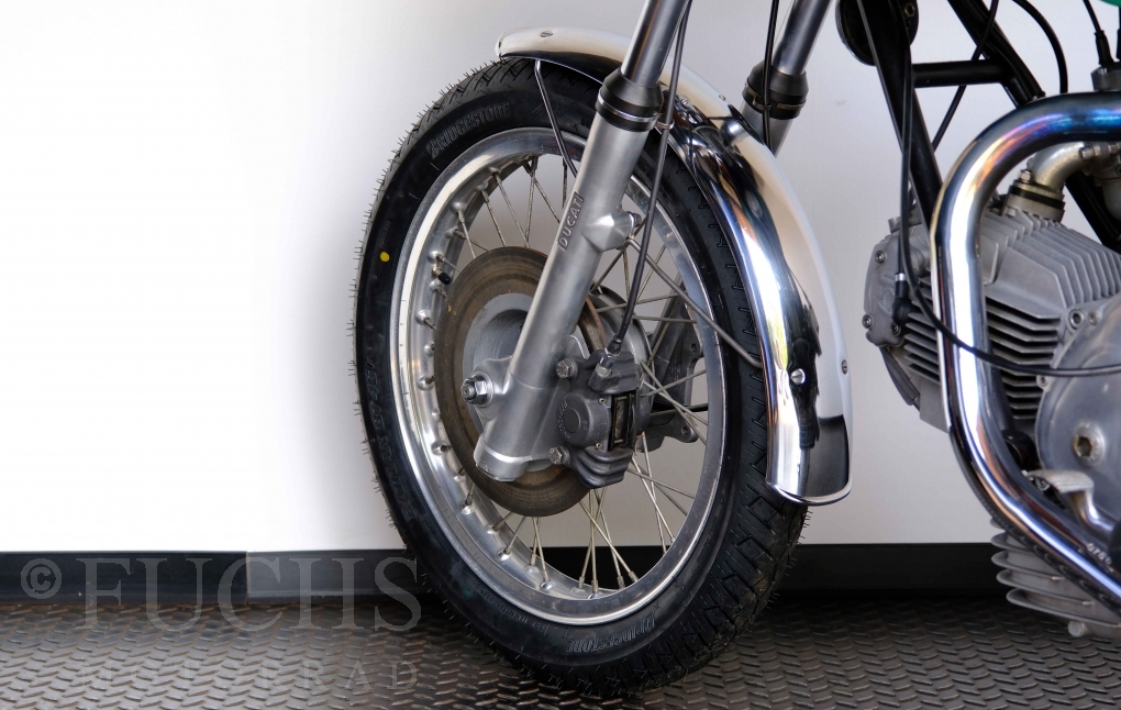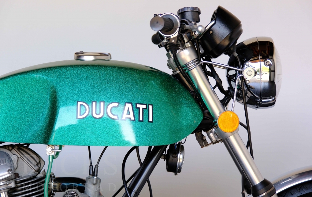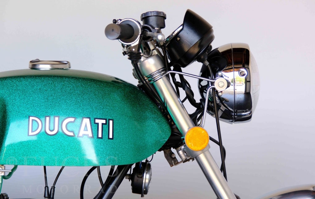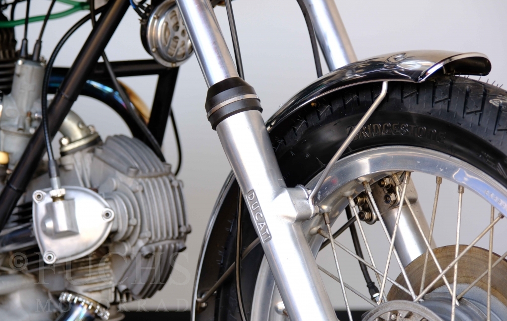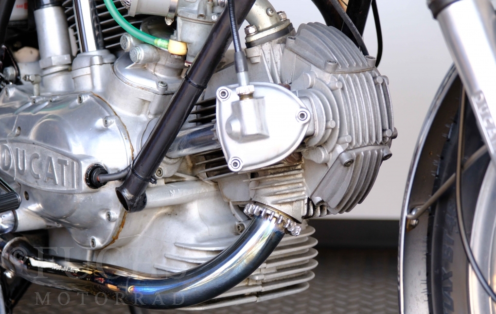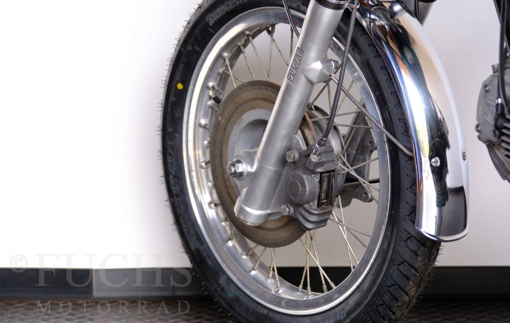 Im Rahmen einer behutsamen Teilrestaurierung wurde besonderer Wert auf Originalität gelegt. Zahlreiche originale Komponenten sind erhalten geblieben, wodurch der authentische Charakter dieser frühen Ducati voll zur Geltung kommt. Die Patina und der zeitlose Charme dieses Klassikers wurden bewusst bewahrt, während technische und optische Details sorgfältig überarbeitet wurden.