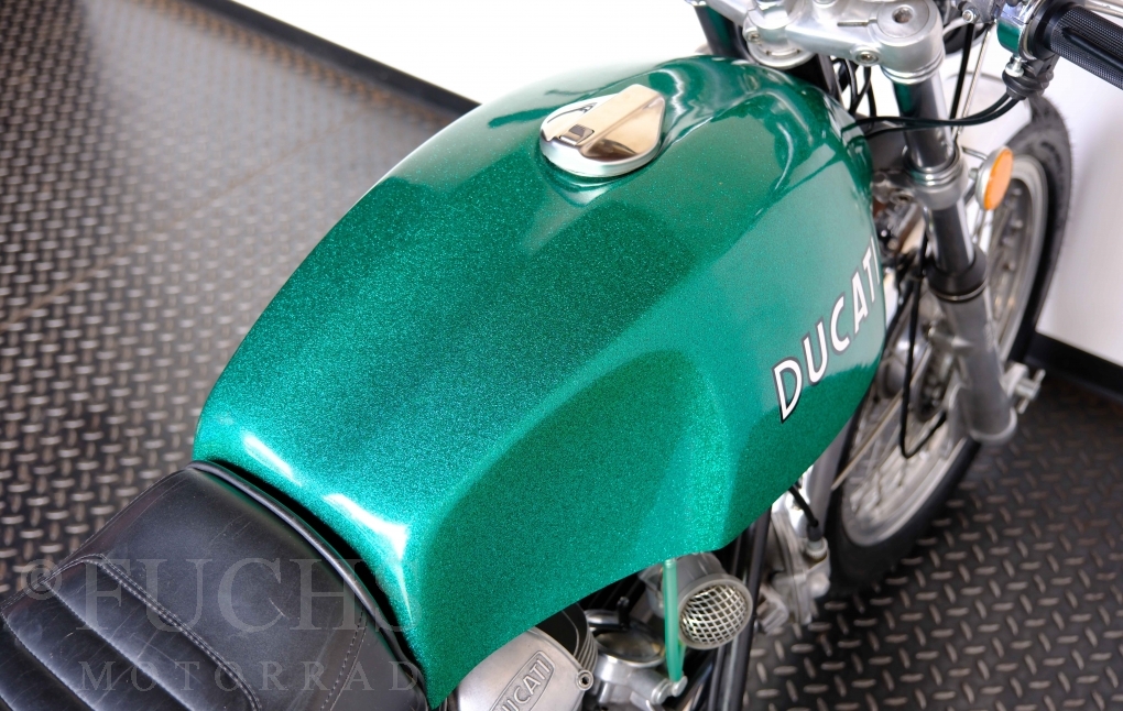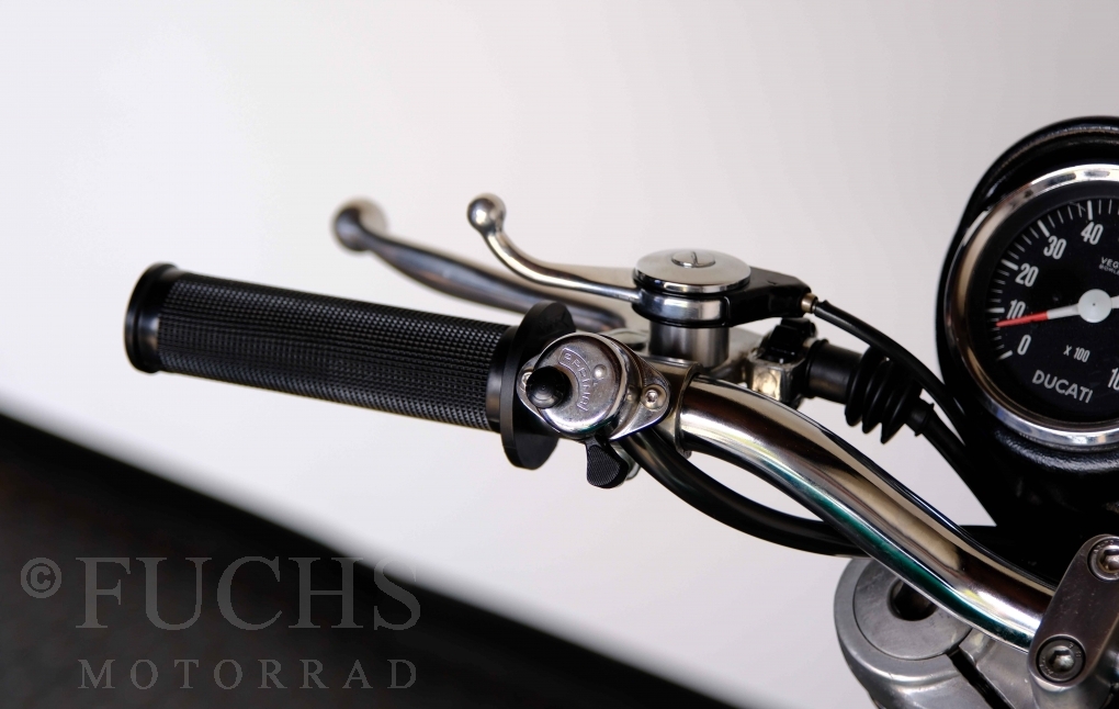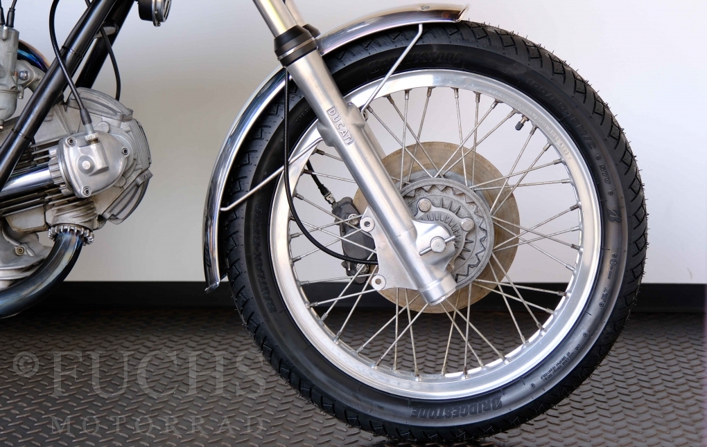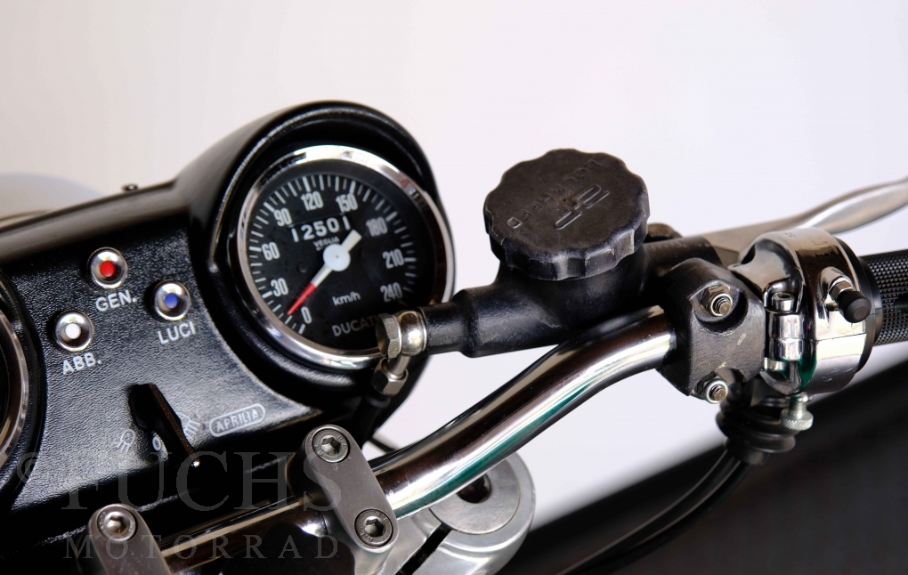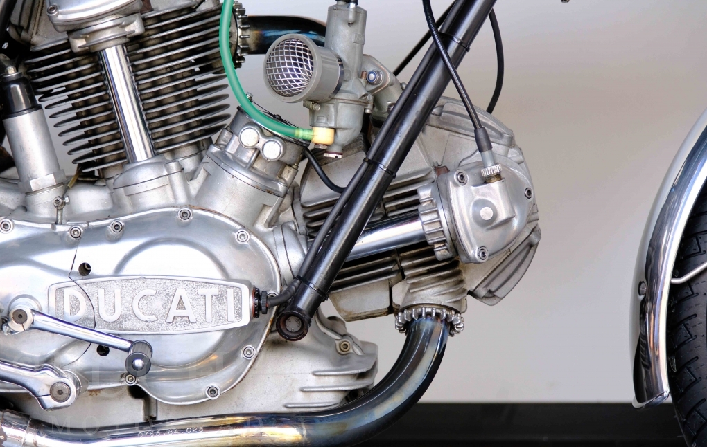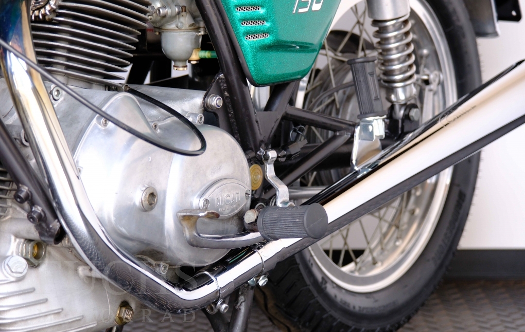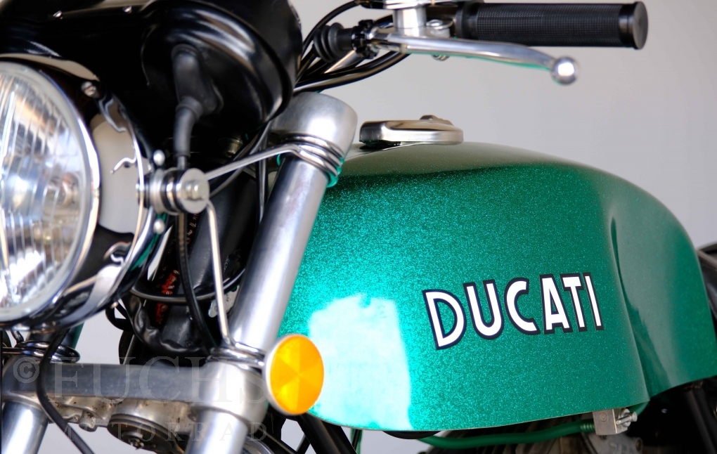Im Rahmen einer behutsamen Teilrestaurierung wurde besonderer Wert auf Originalität gelegt. Zahlreiche originale Komponenten sind erhalten geblieben, wodurch der authentische Charakter dieser frühen Ducati voll zur Geltung kommt. Die Patina und der zeitlose Charme dieses Klassikers wurden bewusst bewahrt, während technische und optische Details sorgfältig überarbeitet wurden.