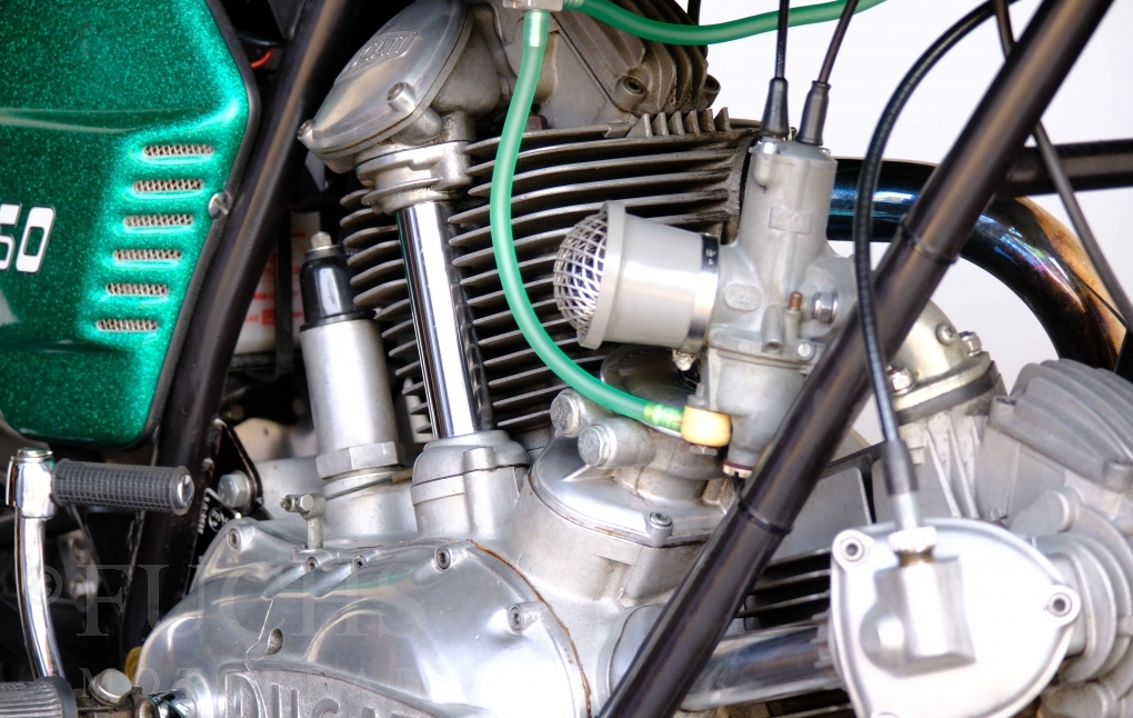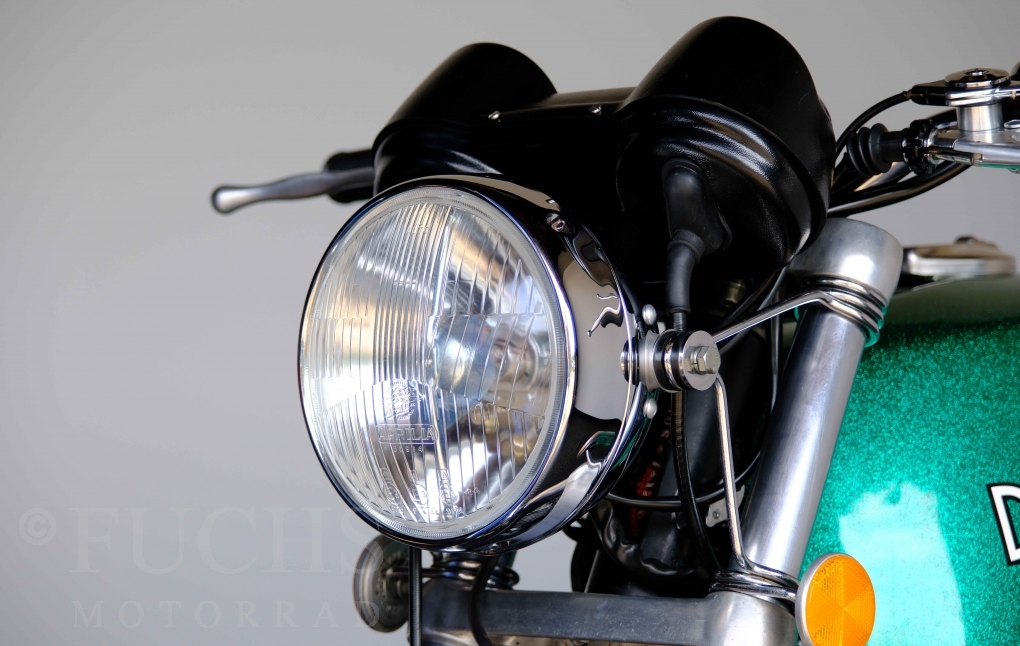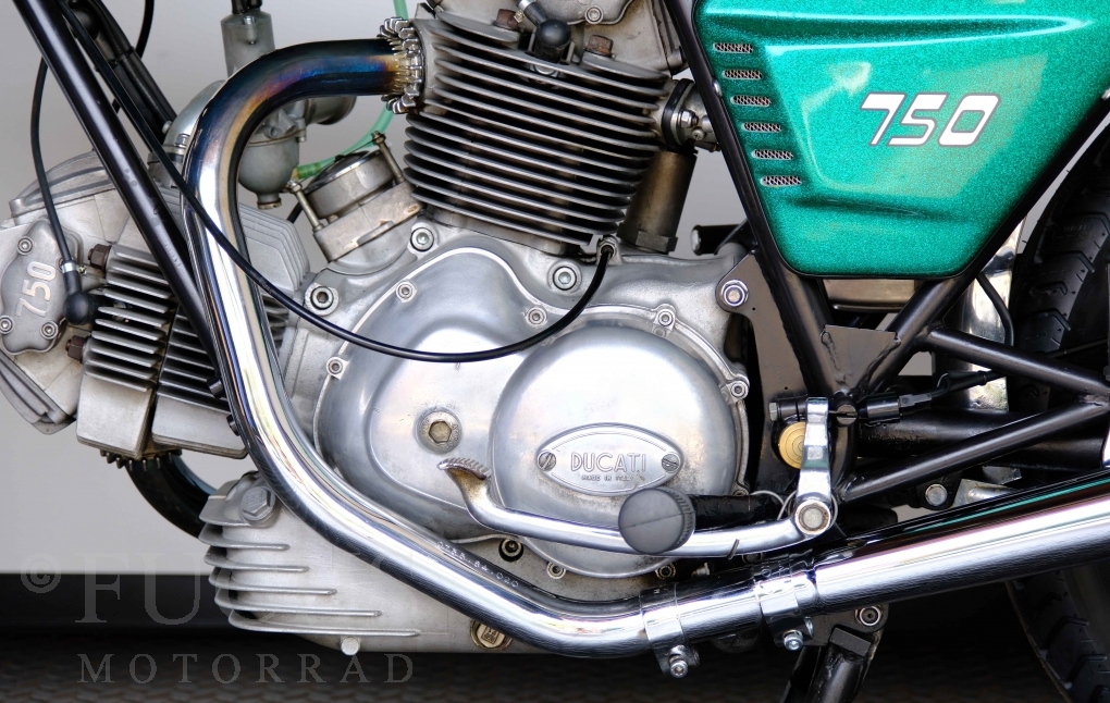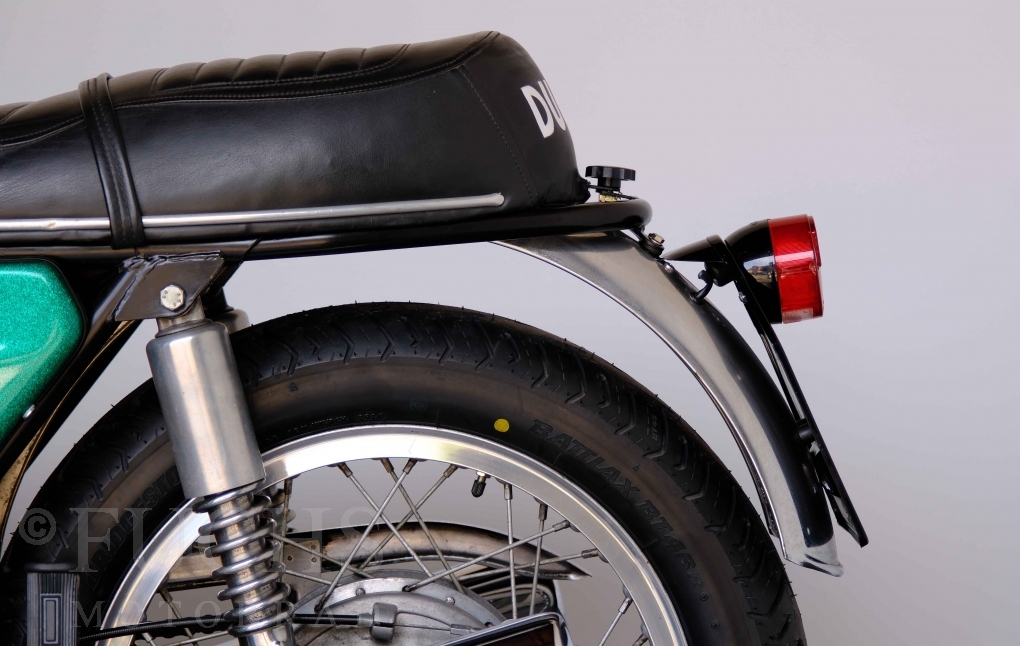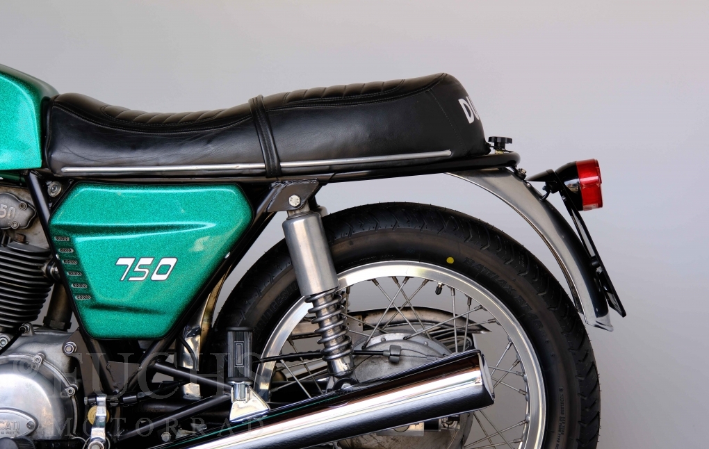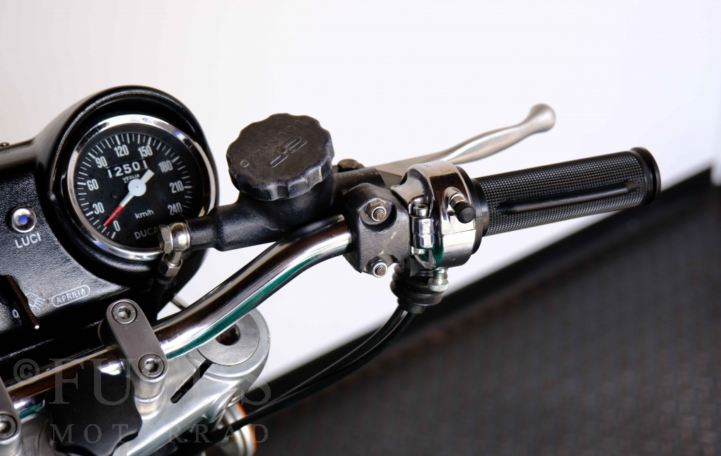 Im Rahmen einer behutsamen Teilrestaurierung wurde besonderer Wert auf Originalität gelegt. Zahlreiche originale Komponenten sind erhalten geblieben, wodurch der authentische Charakter dieser frühen Ducati voll zur Geltung kommt. Die Patina und der zeitlose Charme dieses Klassikers wurden bewusst bewahrt, während technische und optische Details sorgfältig überarbeitet wurden.