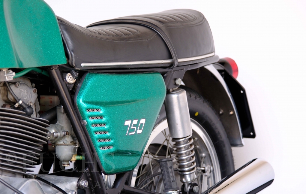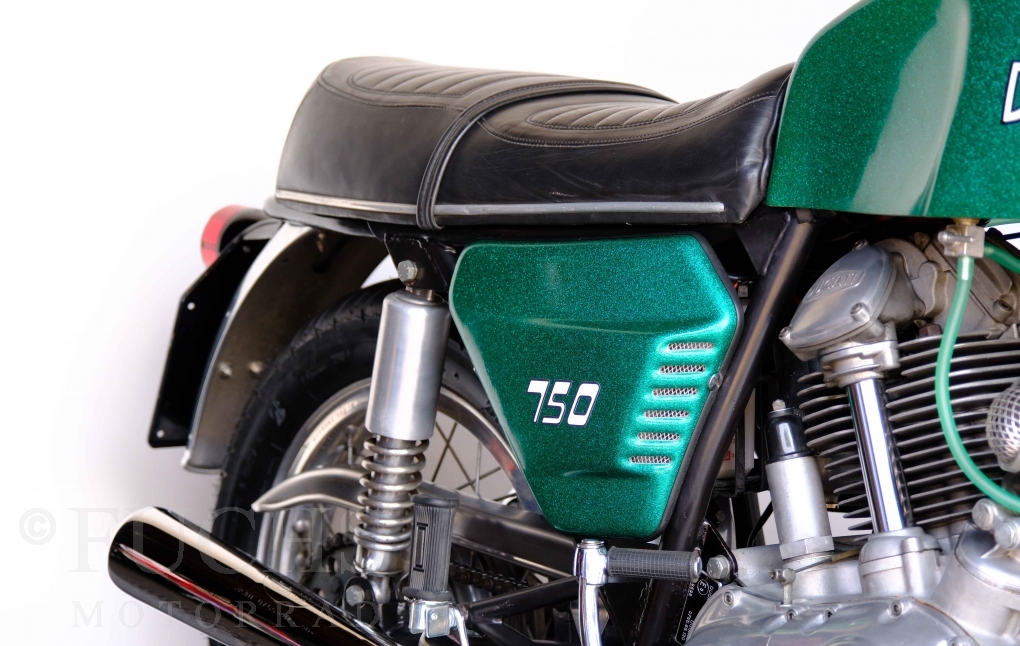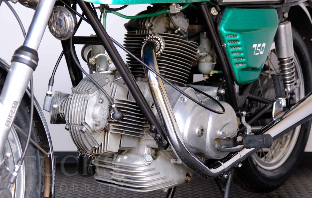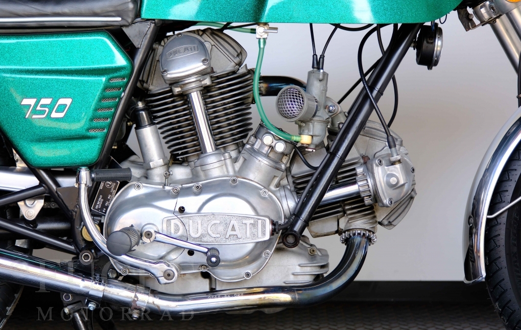 Diese Ducati stammt aus einer privaten Sammlung in Italien und befindet sich in bemerkenswert gutem Zustand. Die legendäre Königswelle läuft hervorragend und der Motor lässt sich mühelos starten – ein Beleg für die technische Qualität und die sorgfältige Pflege, die dieses Motorrad erfahren hat.