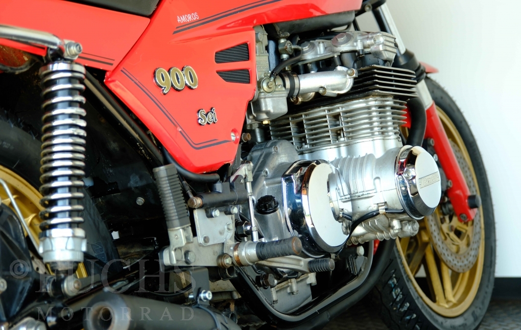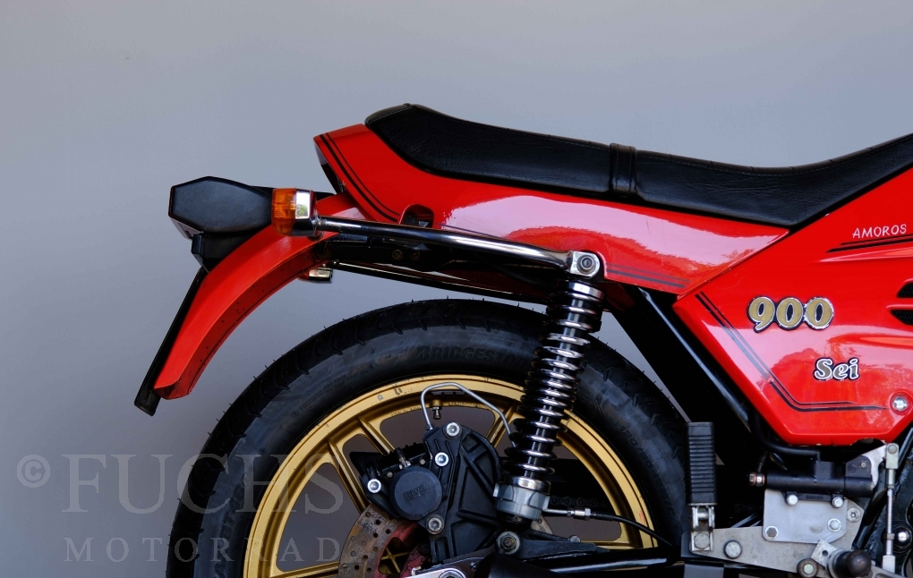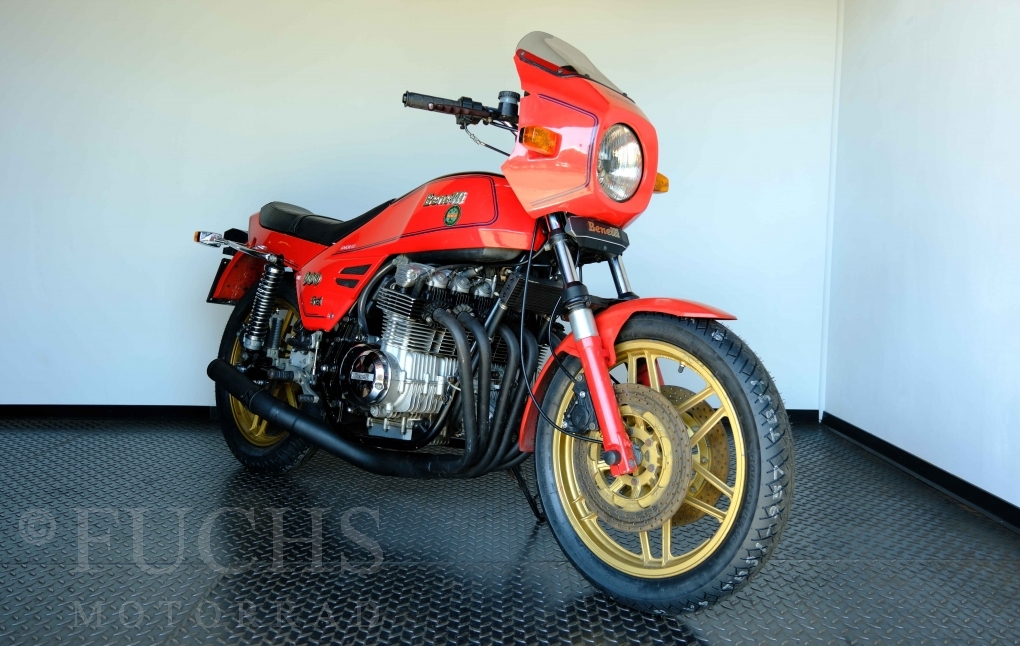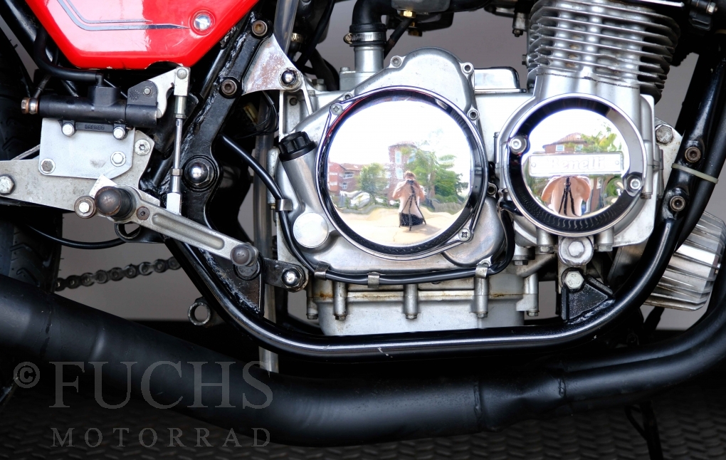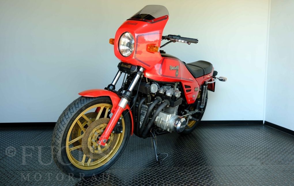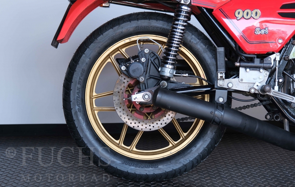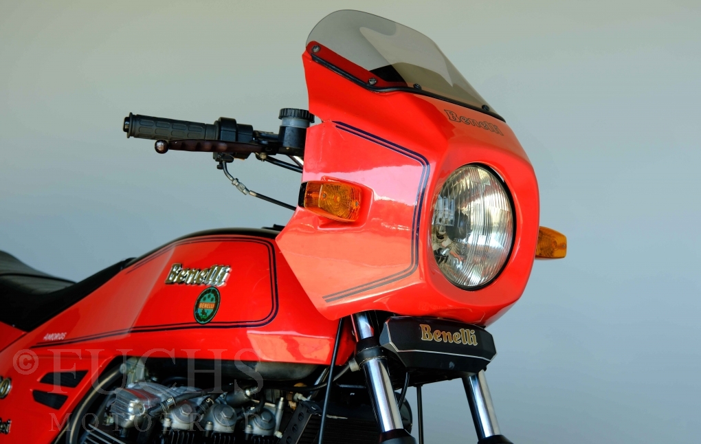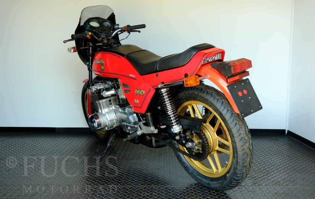 Die Benelli 900 Sei stammt aus Italien und wurde von uns teilweise restauriert. Unser erster Schritt war, dass die Kupplung überholt wurde. Dann haben wir glücklicherweise noch eine sehr gute Marvin Auspuffanlage finden können. Damit der schöne Sound auch entspannt genossen werden kann, haben wir eine moderne Zündanlage verbaut. Mit der überholten Bremsanlage, neuen Reifen, neuer Batterie steht die schöne Benelli bereit für einen Käufer, der die De Tomaso Zeit bei Benelli erfahren will und dabei sich über ein grandioses Sounderlebnis des 6-Zylinders freut.