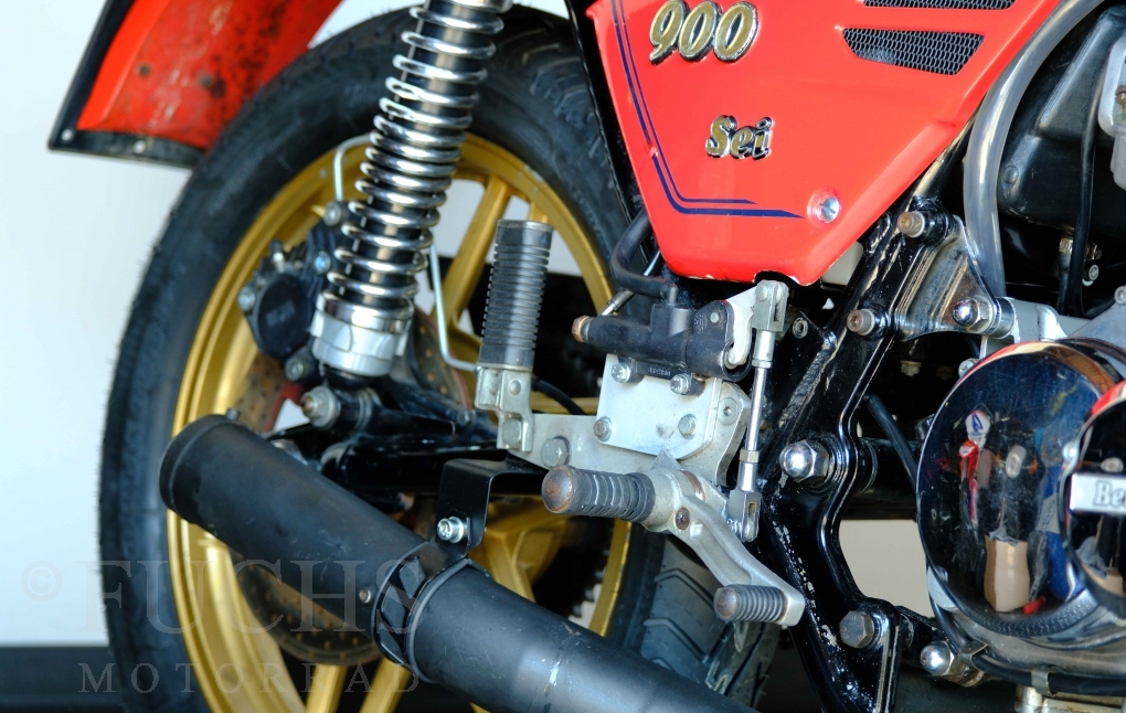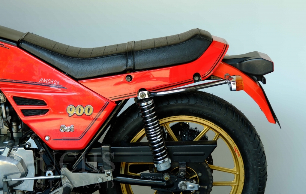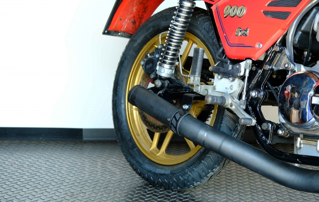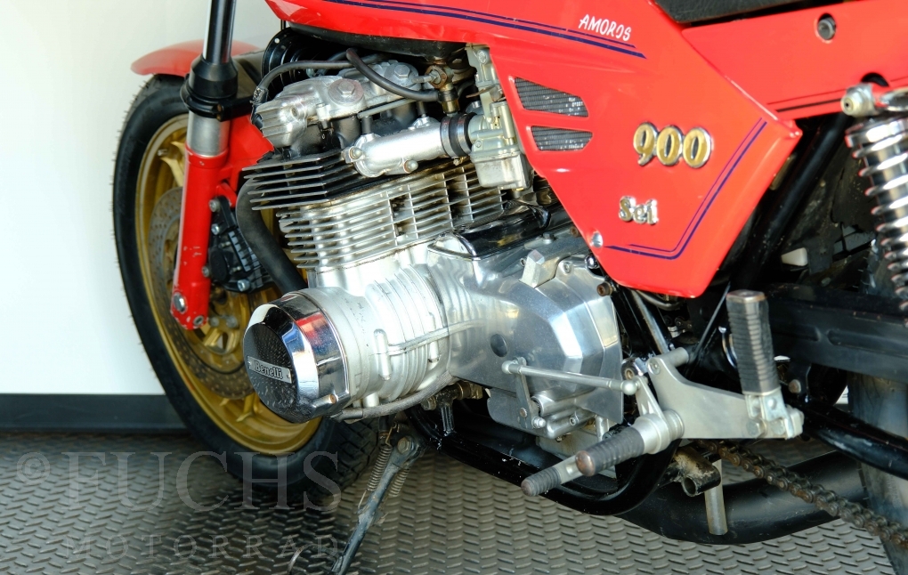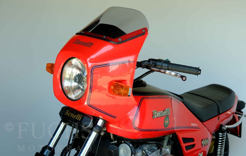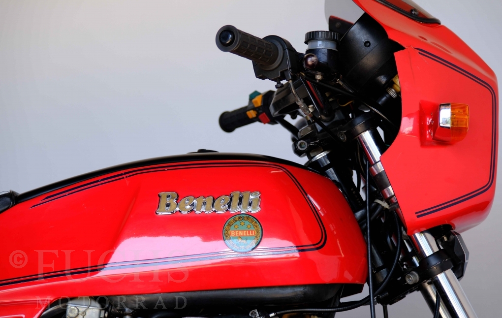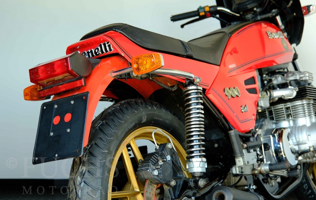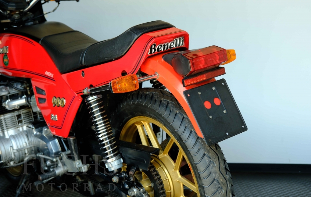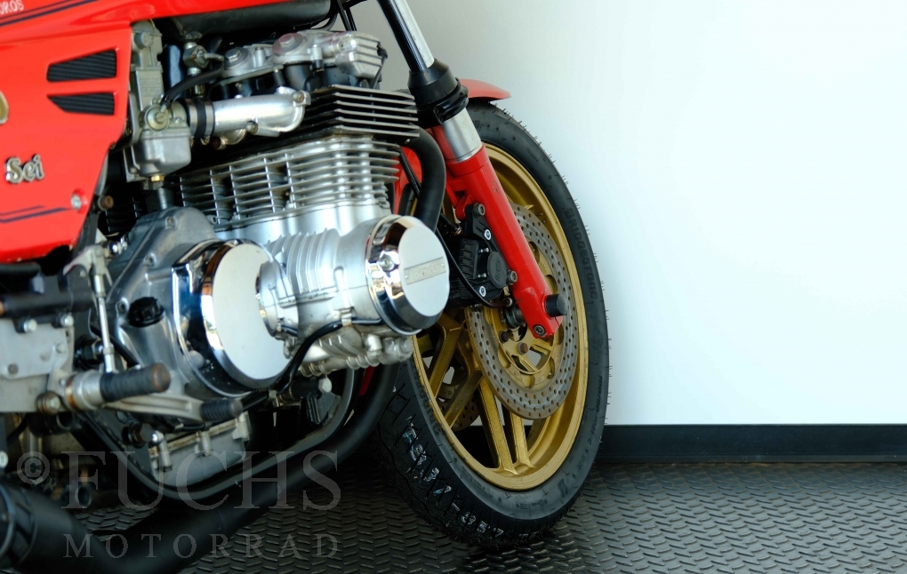 Die Benelli 900 Sei stammt aus Italien und wurde von uns teilweise restauriert. Unser erster Schritt war, dass die Kupplung überholt wurde. Dann haben wir glücklicherweise noch eine sehr gute Marvin Auspuffanlage finden können. Damit der schöne Sound auch entspannt genossen werden kann, haben wir eine moderne Zündanlage verbaut. Mit der überholten Bremsanlage, neuen Reifen, neuer Batterie steht die schöne Benelli bereit für einen Käufer, der die De Tomaso Zeit bei Benelli erfahren will und dabei sich über ein grandioses Sounderlebnis des 6-Zylinders freut.