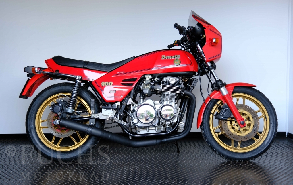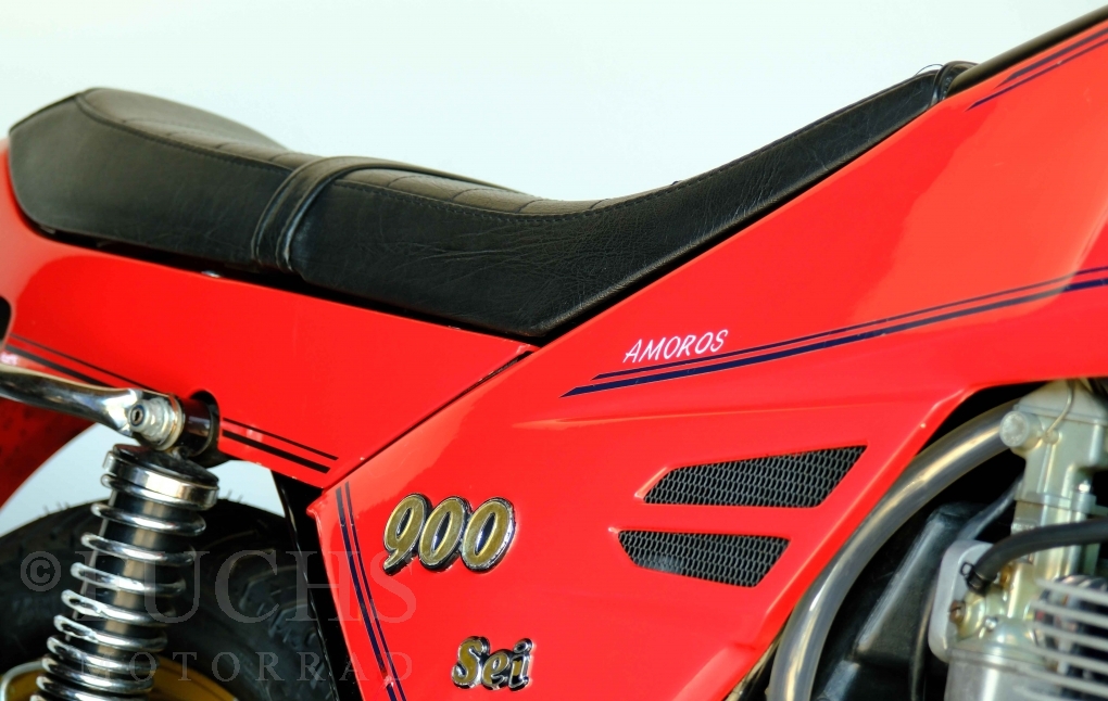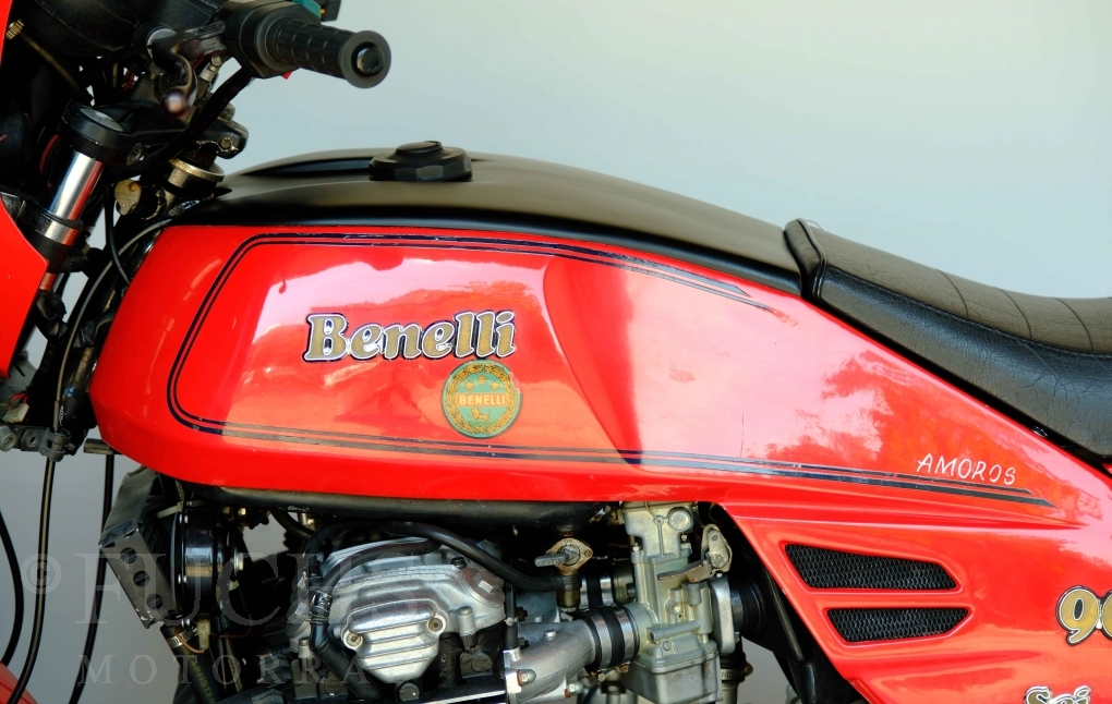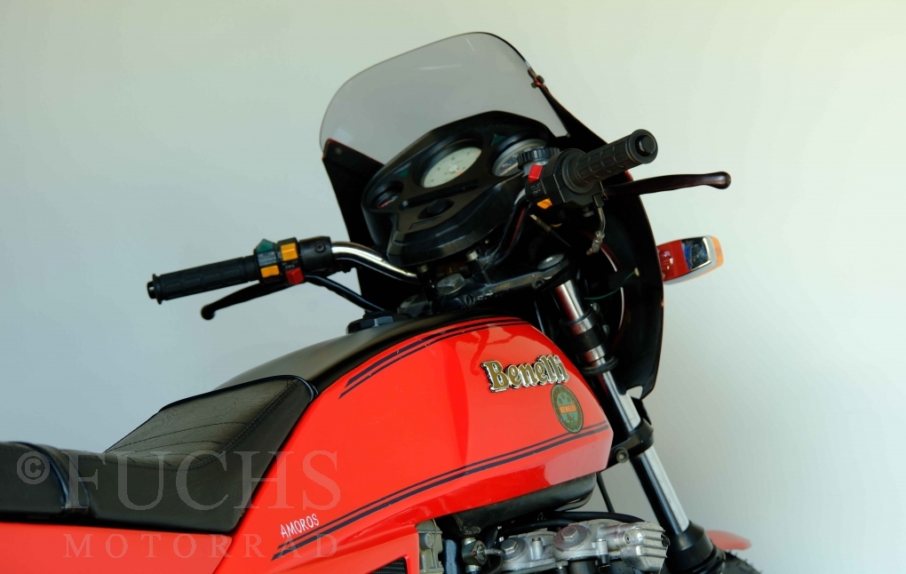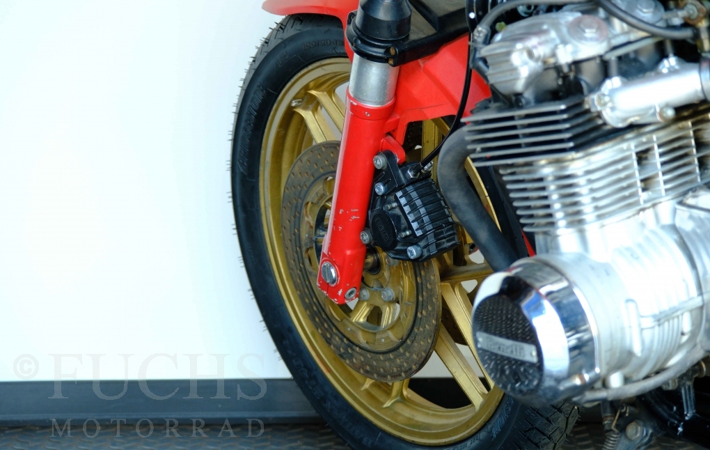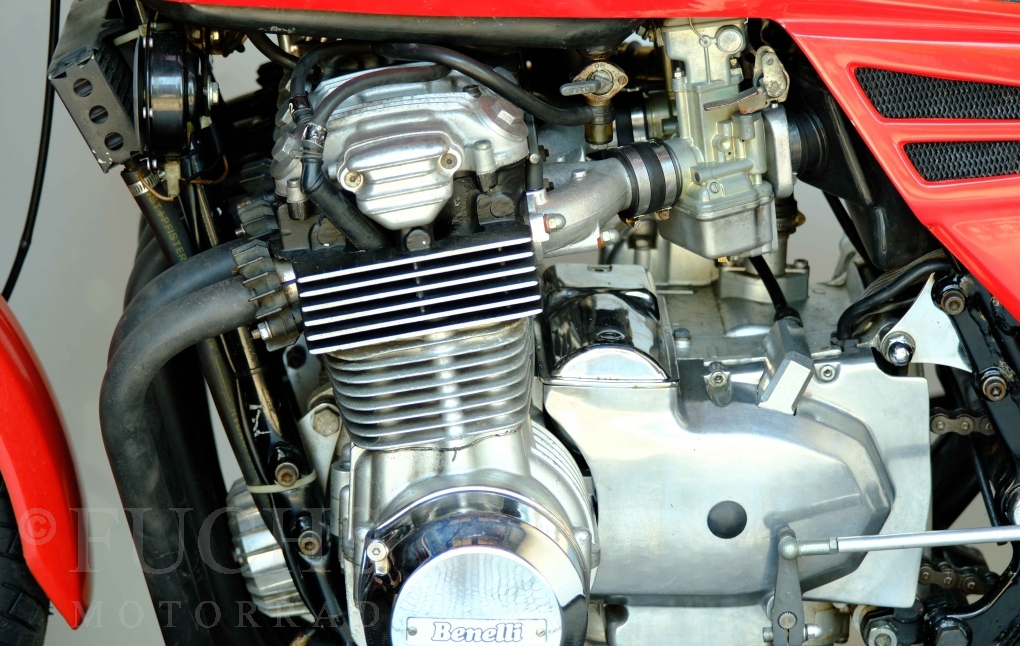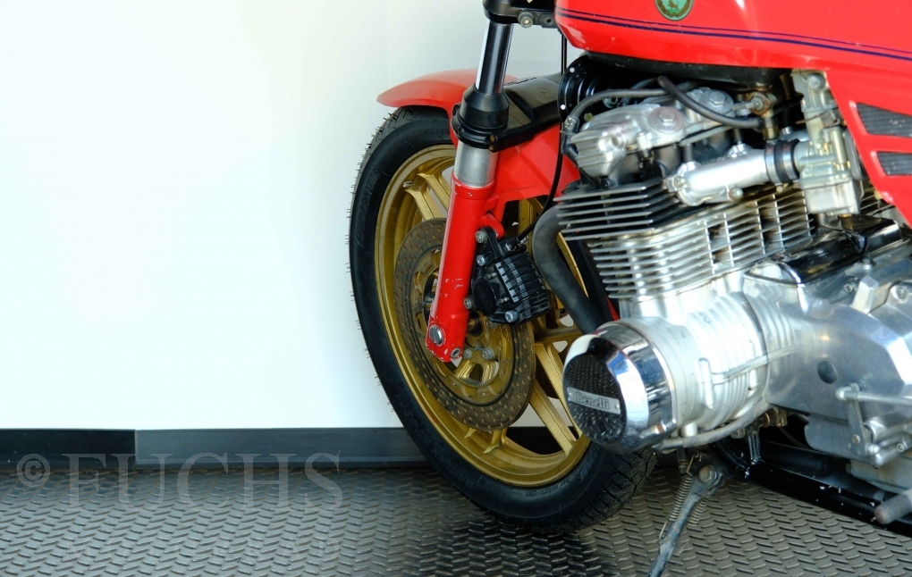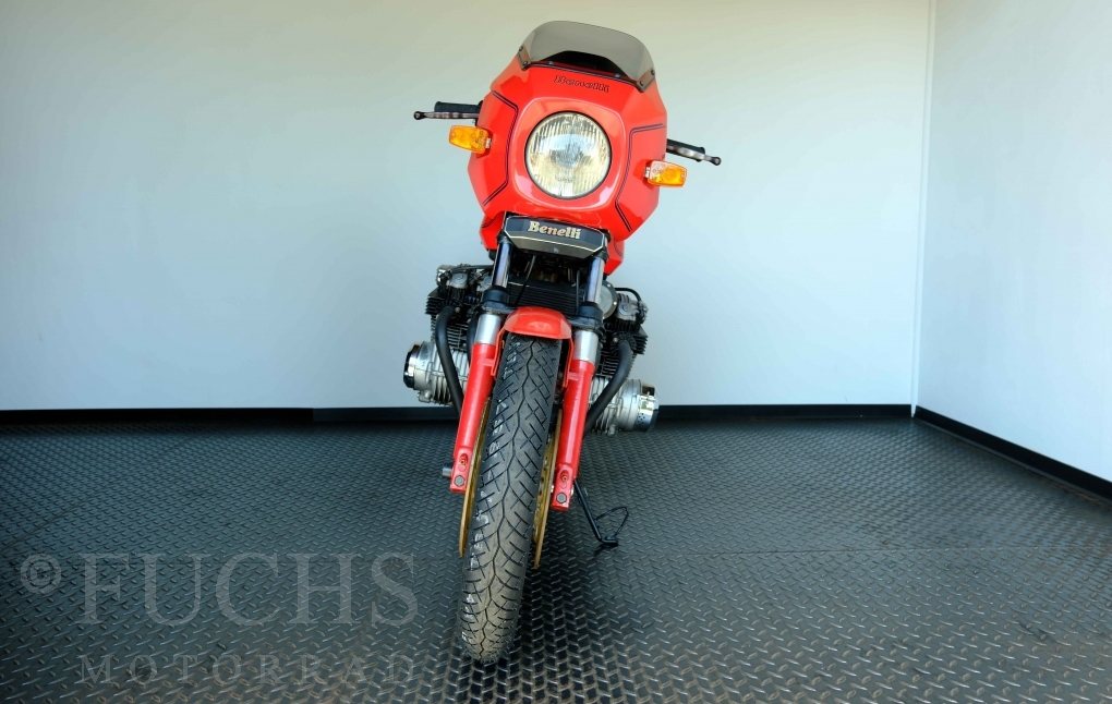 Die Benelli 900 Sei stammt aus Italien und wurde von uns teilweise restauriert. Unser erster Schritt war, dass die Kupplung überholt wurde. Dann haben wir glücklicherweise noch eine sehr gute Marvin Auspuffanlage finden können. Damit der schöne Sound auch entspannt genossen werden kann, haben wir eine moderne Zündanlage verbaut. Mit der überholten Bremsanlage, neuen Reifen, neuer Batterie steht die schöne Benelli bereit für einen Käufer, der die De Tomaso Zeit bei Benelli erfahren will und dabei sich über ein grandioses Sounderlebnis des 6-Zylinders freut.