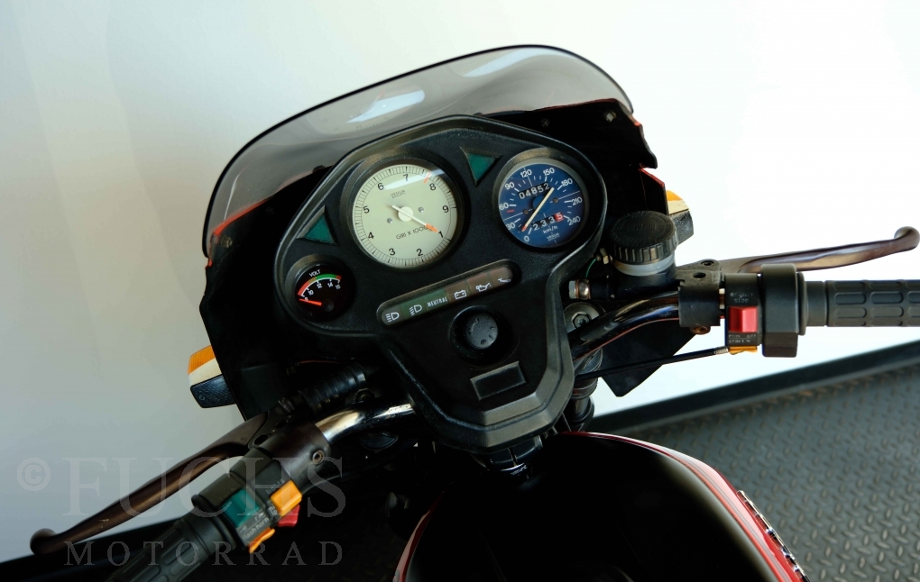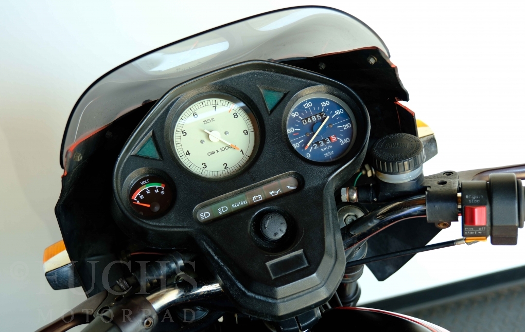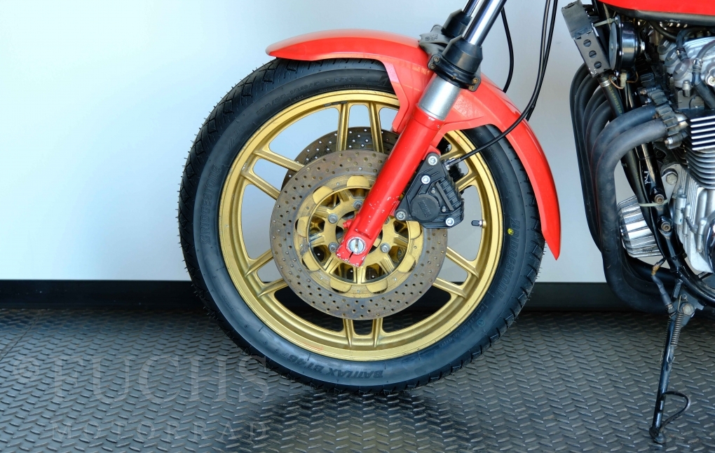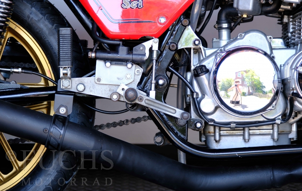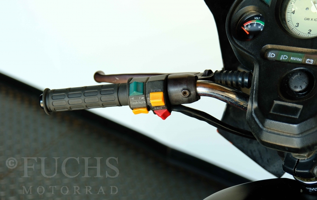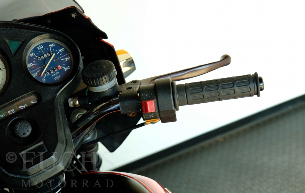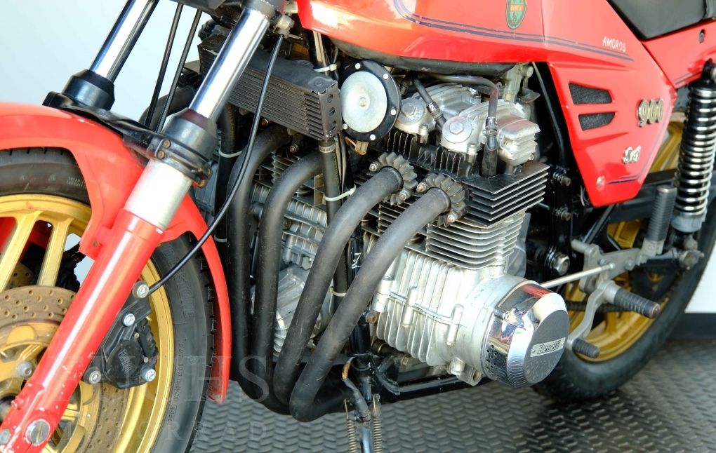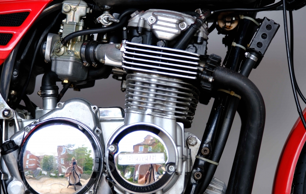 Die Benelli 900 Sei stammt aus Italien und wurde von uns teilweise restauriert. Unser erster Schritt war, dass die Kupplung überholt wurde. Dann haben wir glücklicherweise noch eine sehr gute Marvin Auspuffanlage finden können. Damit der schöne Sound auch entspannt genossen werden kann, haben wir eine moderne Zündanlage verbaut. Mit der überholten Bremsanlage, neuen Reifen, neuer Batterie steht die schöne Benelli bereit für einen Käufer, der die De Tomaso Zeit bei Benelli erfahren will und dabei sich über ein grandioses Sounderlebnis des 6-Zylinders freut.