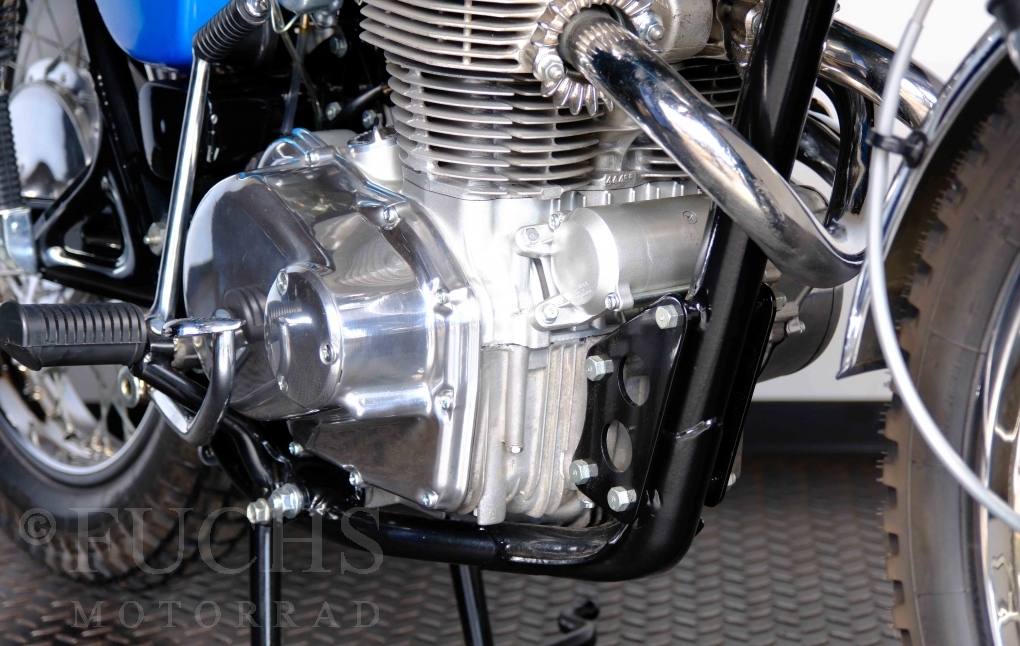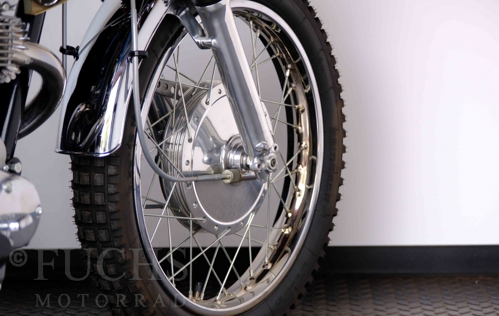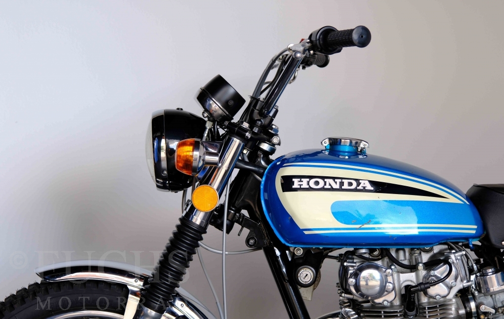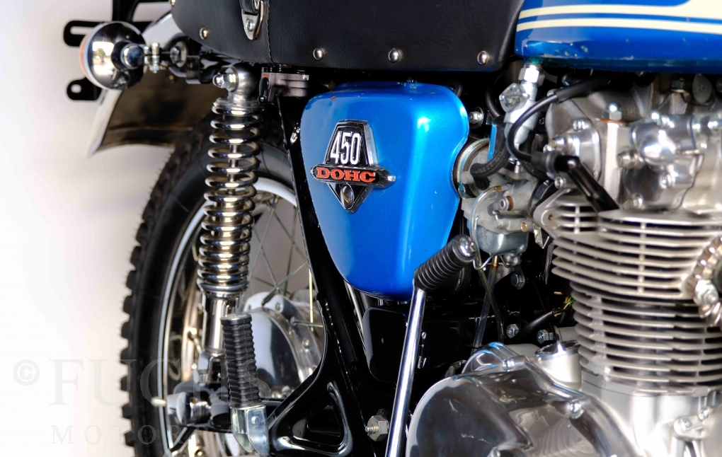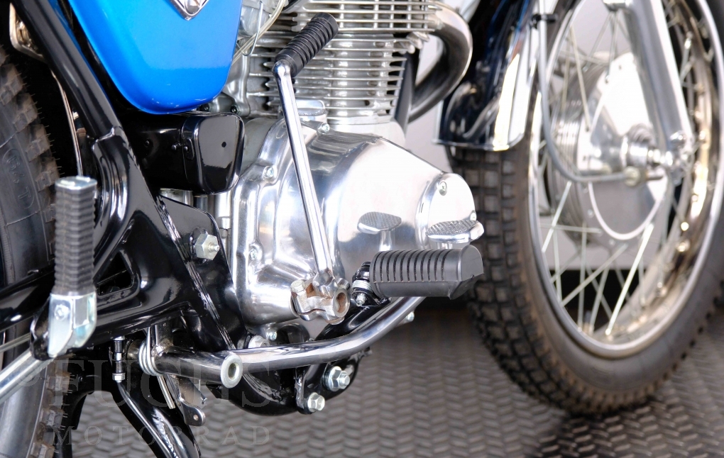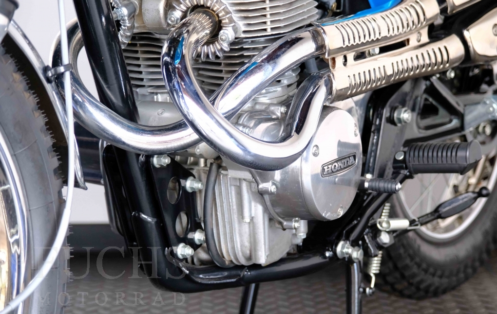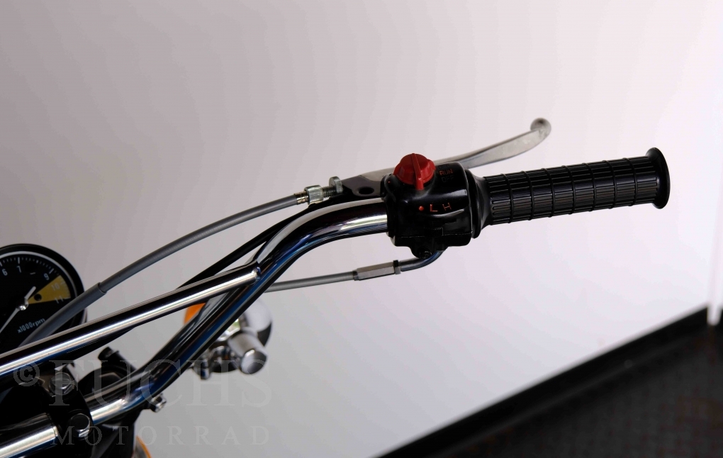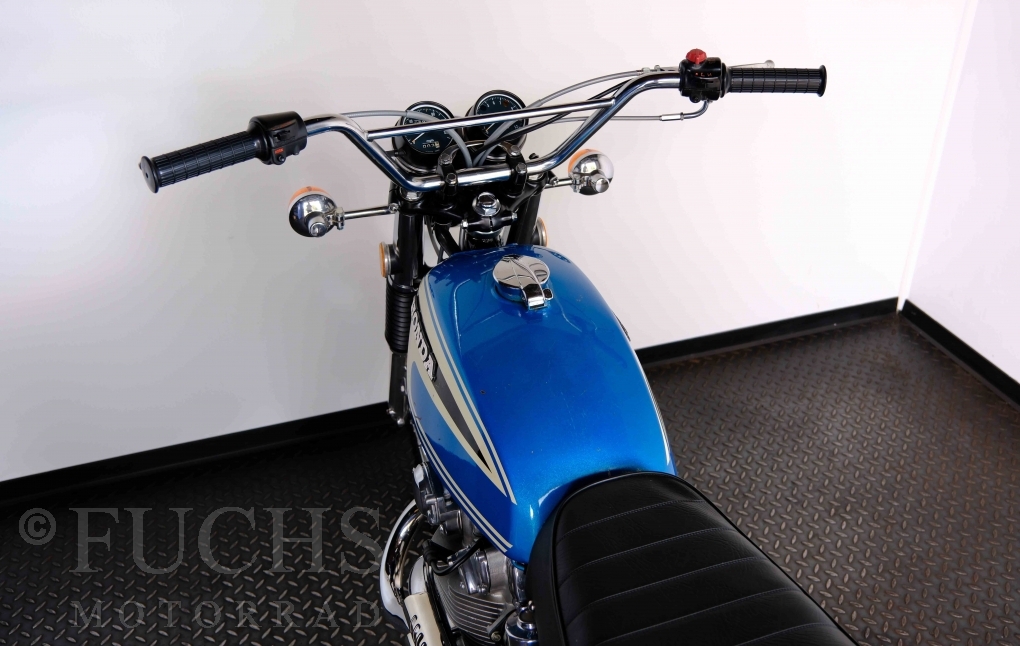 Unsere originale CL 450 stammt aus der letzten Serie K6. Die Motornummer CL450E-60024XX passt zur Rahmennummer. In erster Linie hat Honda die Scrambler Modelle im amerikanischen Markt vertrieben. In Hallen einer ehemaligen Flugzeugproduktion erfolgte damals die Montage. Unsere Cl 450 hat noch den ersten Lacksatz und ist fahrfertig. Deutsche Fahrzeugpapiere liegen vor.
