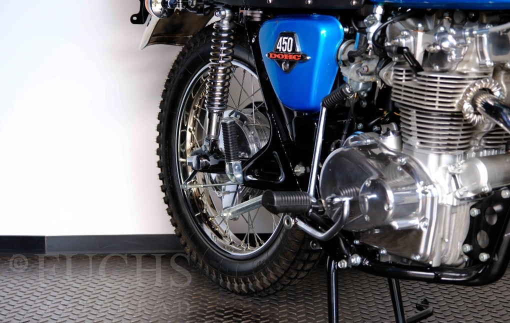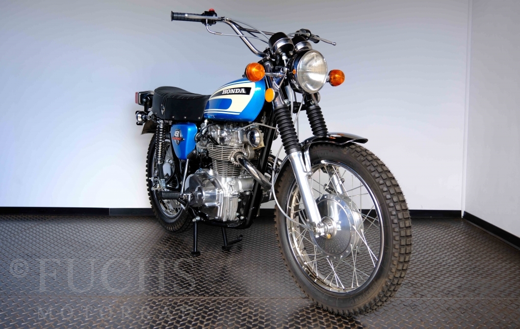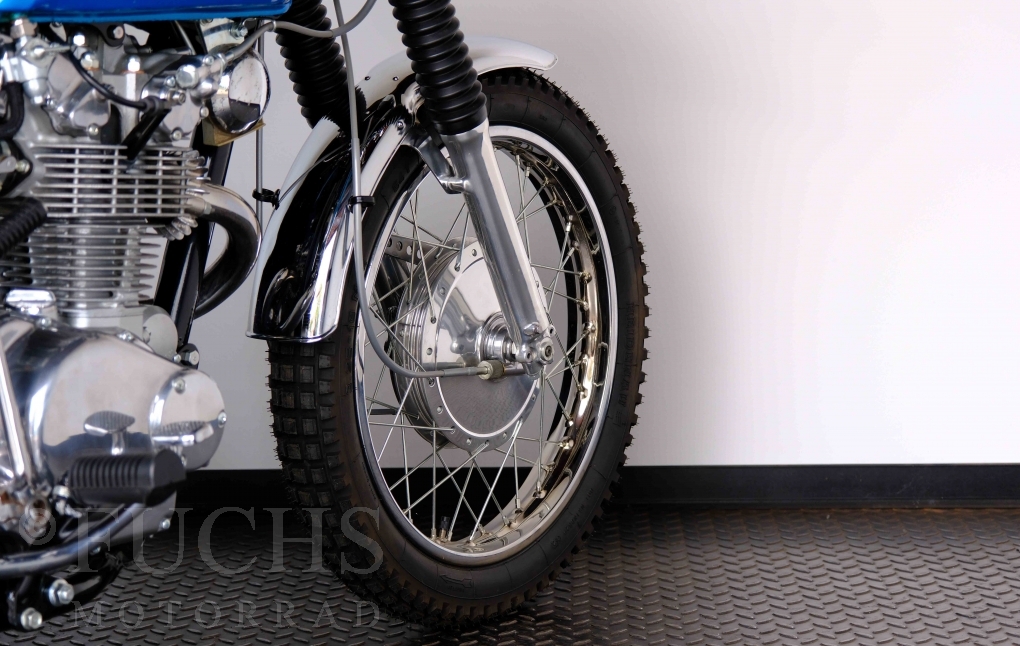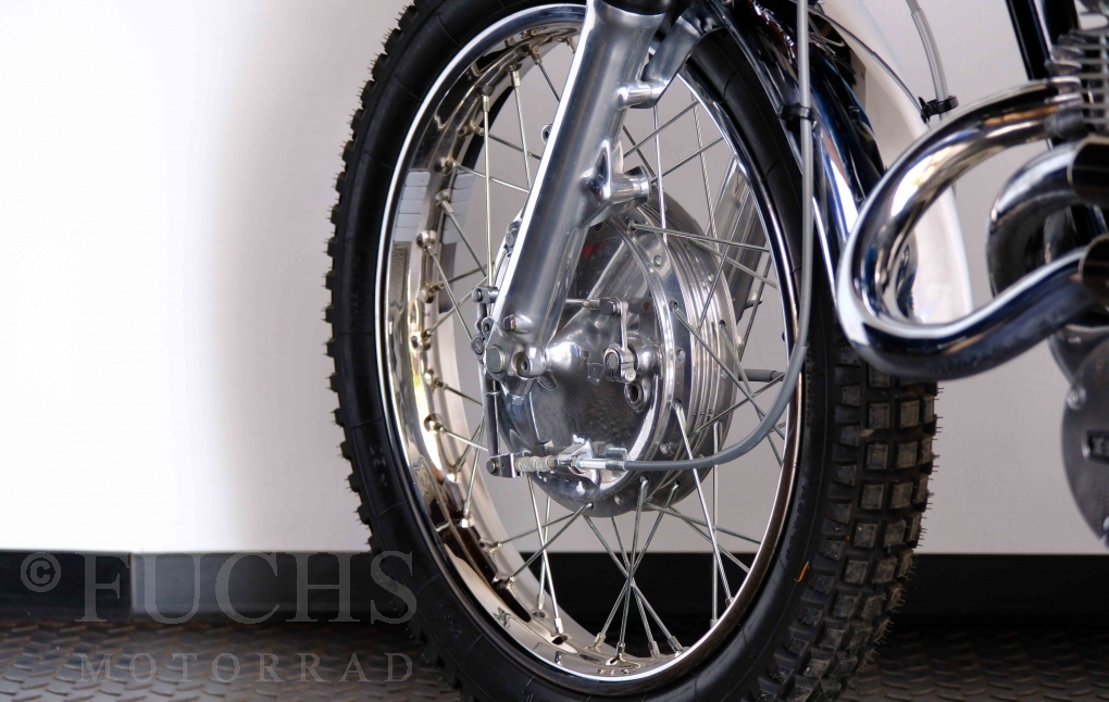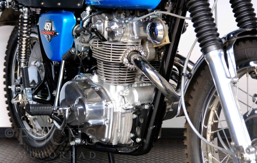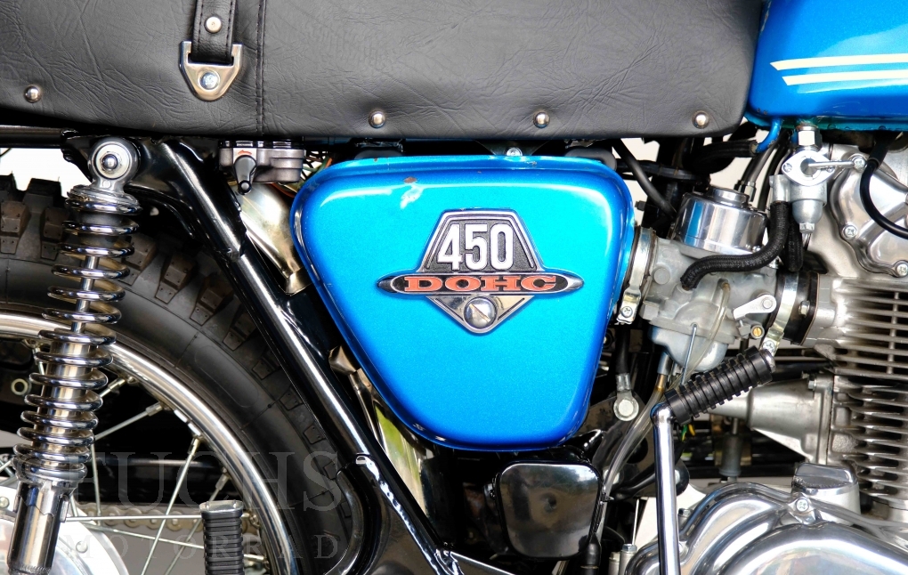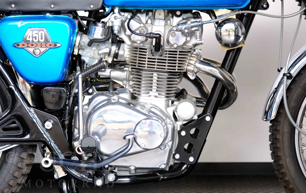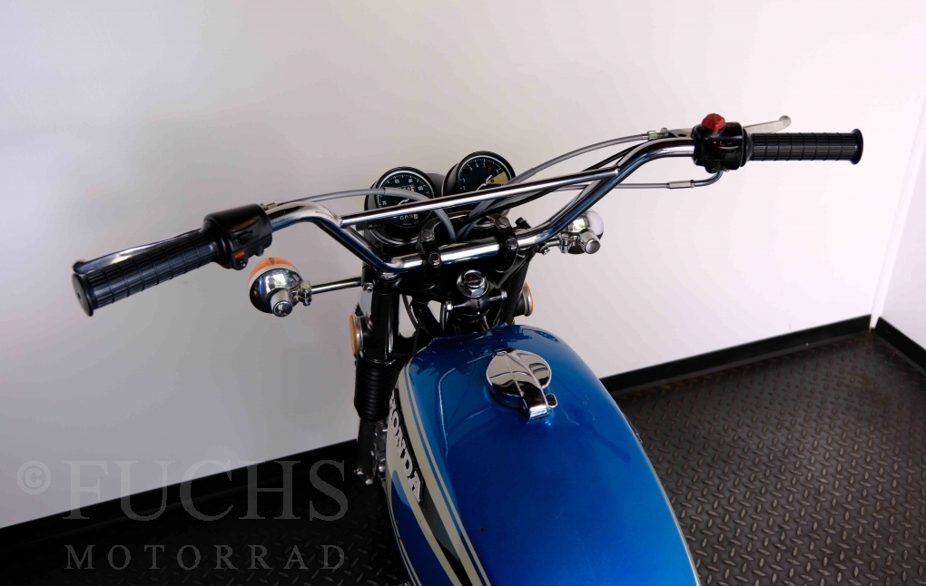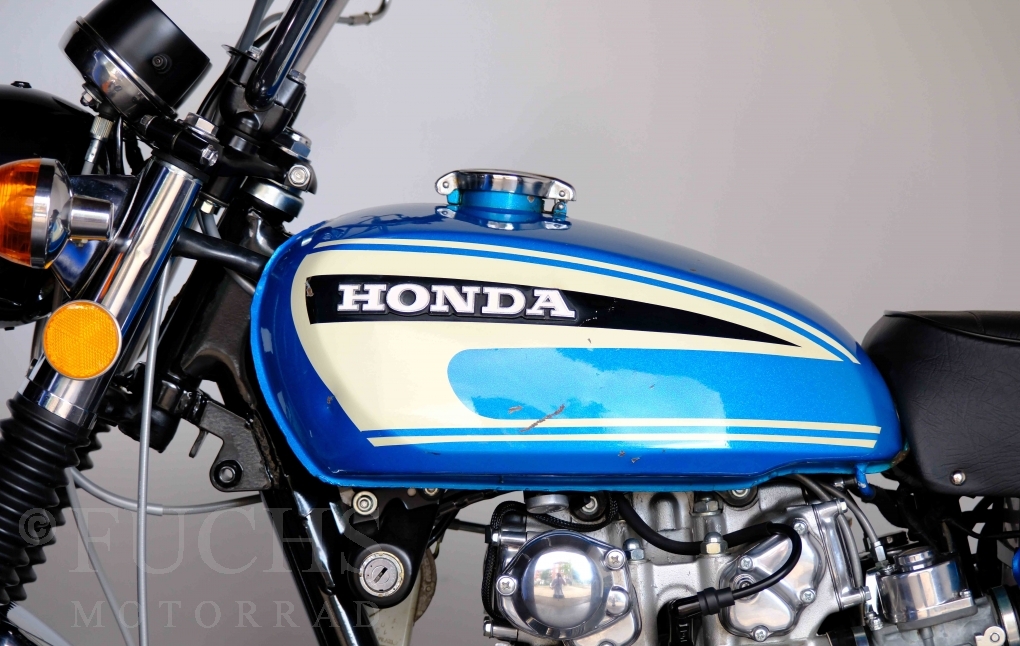 Unsere originale CL 450 stammt aus der letzten Serie K6. Die Motornummer CL450E-60024XX passt zur Rahmennummer. In erster Linie hat Honda die Scrambler Modelle im amerikanischen Markt vertrieben. In Hallen einer ehemaligen Flugzeugproduktion erfolgte damals die Montage. Unsere Cl 450 hat noch den ersten Lacksatz und ist fahrfertig. Deutsche Fahrzeugpapiere liegen vor.