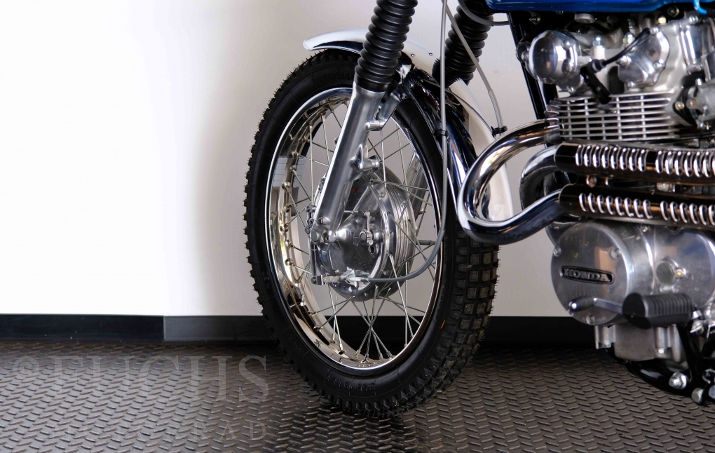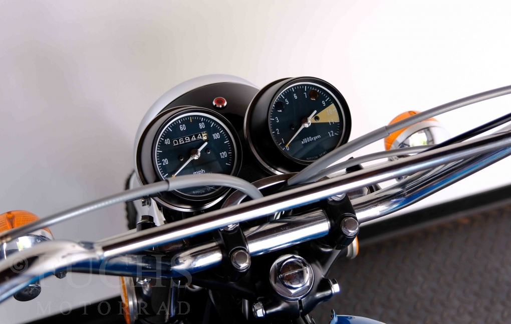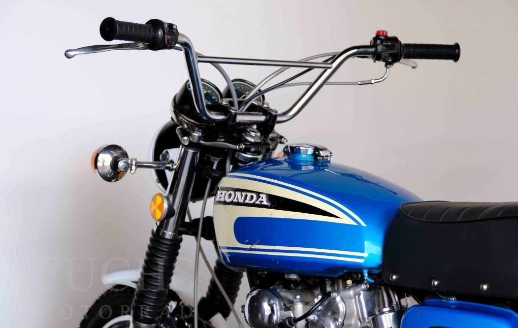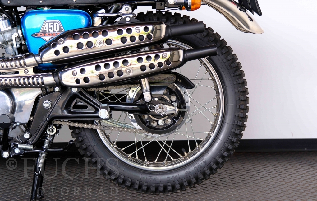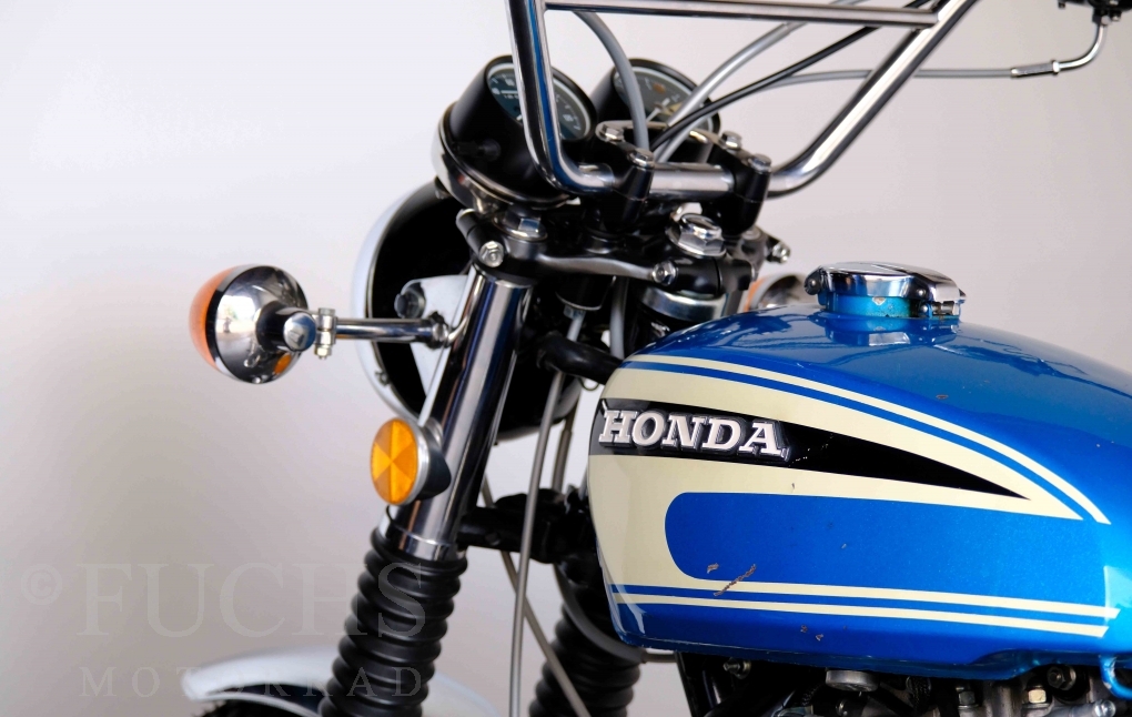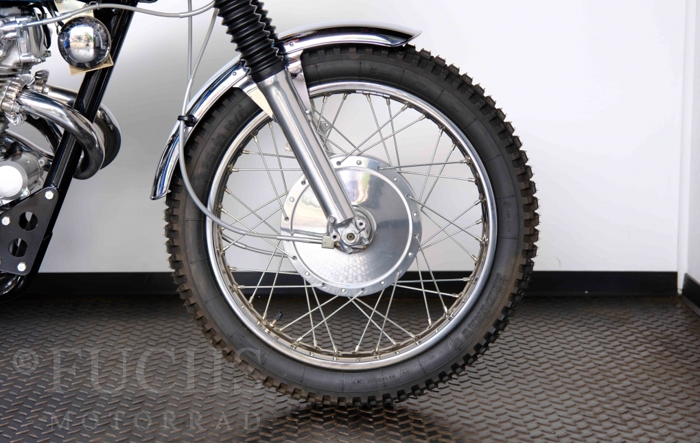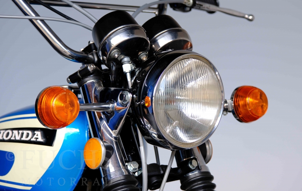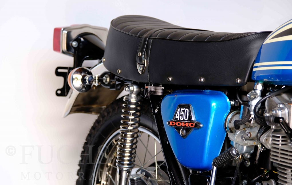 Unsere originale CL 450 stammt aus der letzten Serie K6. Die Motornummer CL450E-60024XX passt zur Rahmennummer. In erster Linie hat Honda die Scrambler Modelle im amerikanischen Markt vertrieben. In Hallen einer ehemaligen Flugzeugproduktion erfolgte damals die Montage. Unsere Cl 450 hat noch den ersten Lacksatz und ist fahrfertig. Deutsche Fahrzeugpapiere liegen vor.