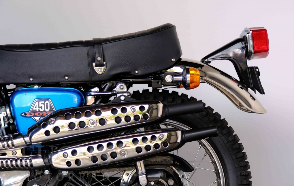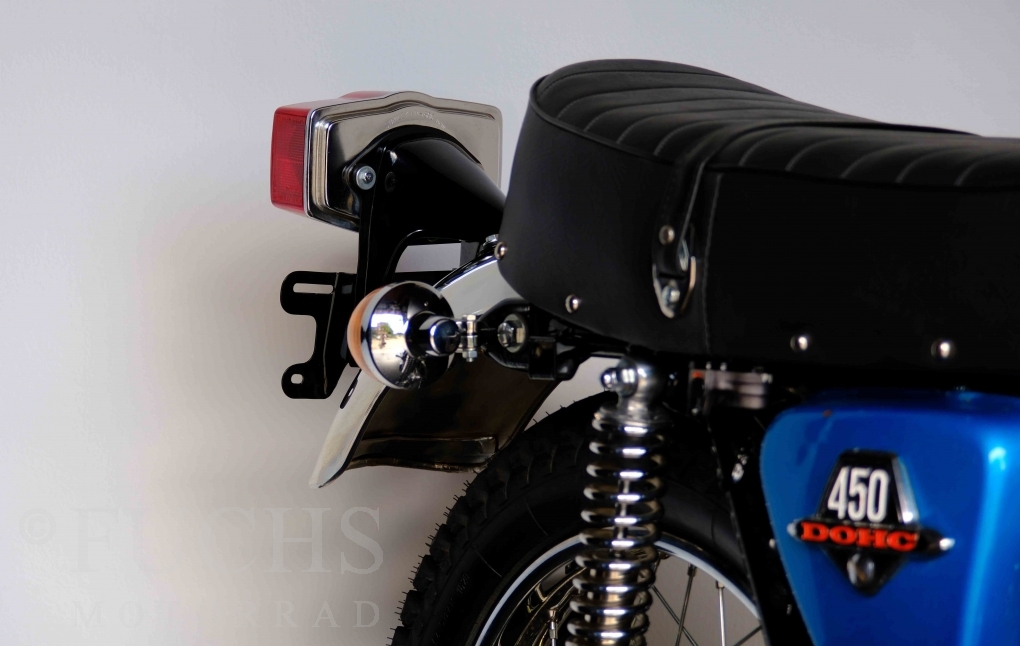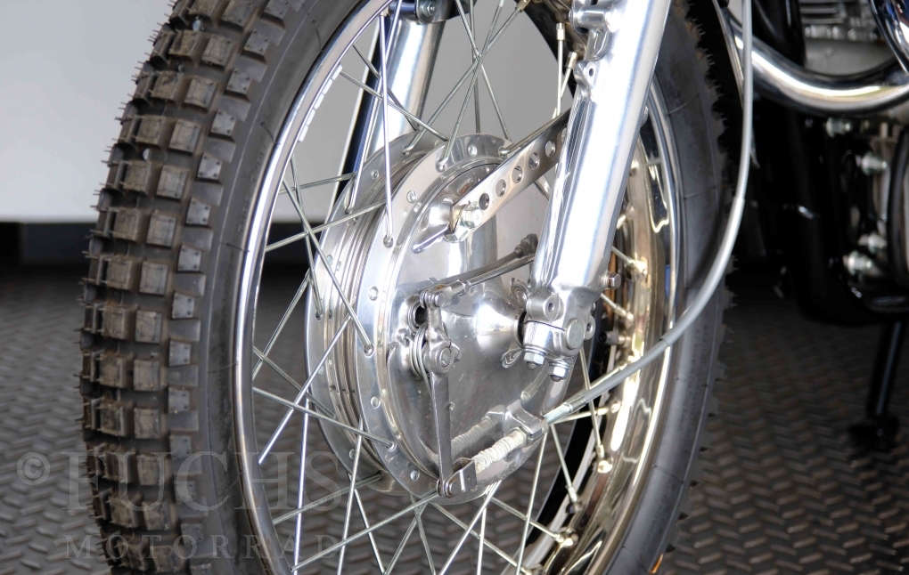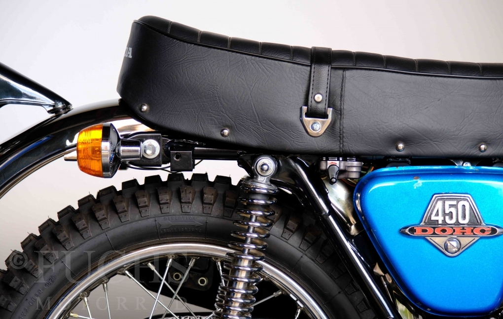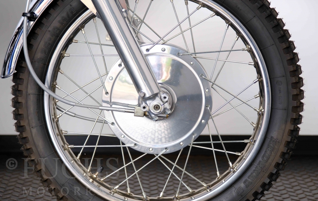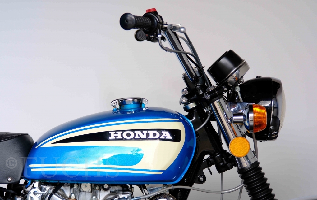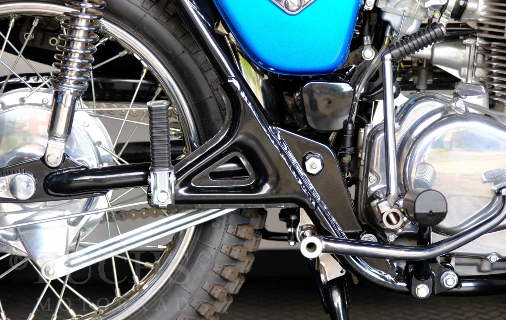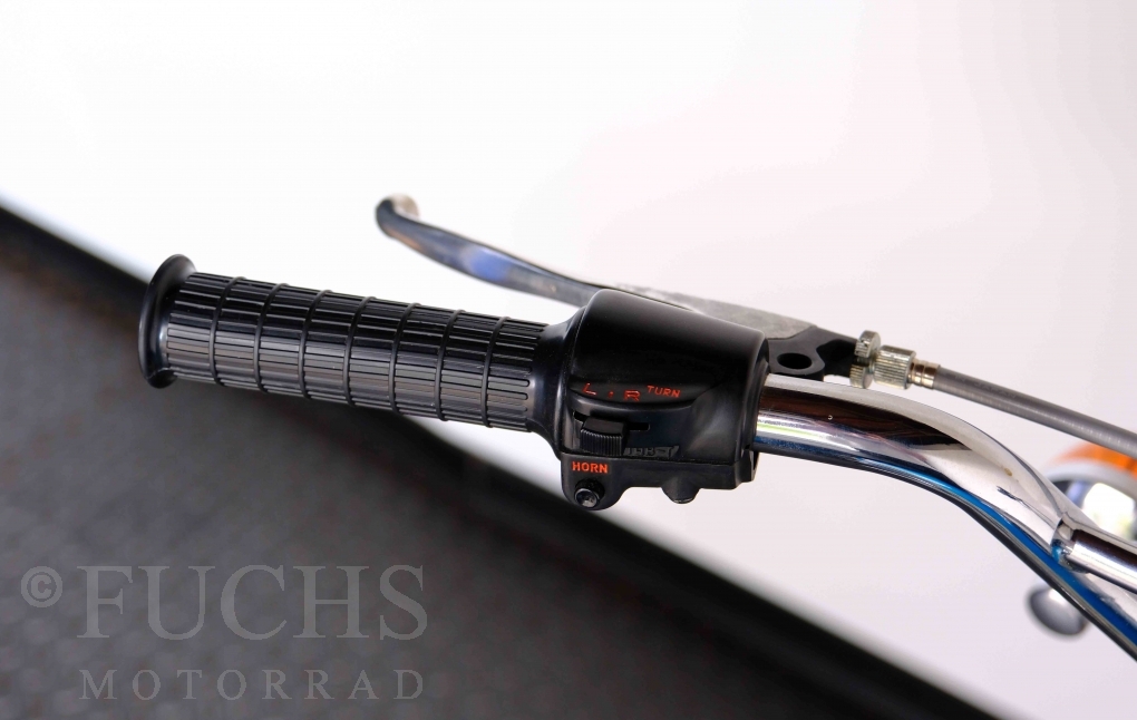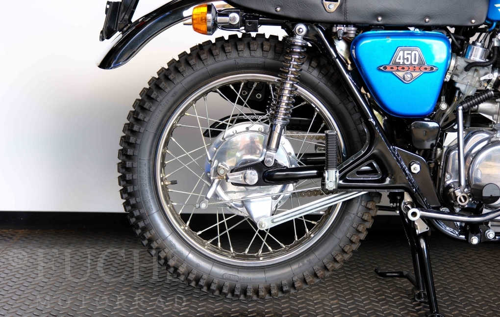 Unsere originale CL 450 stammt aus der letzten Serie K6. Die Motornummer CL450E-60024XX passt zur Rahmennummer. In erster Linie hat Honda die Scrambler Modelle im amerikanischen Markt vertrieben. In Hallen einer ehemaligen Flugzeugproduktion erfolgte damals die Montage. Unsere Cl 450 hat noch den ersten Lacksatz und ist fahrfertig. Deutsche Fahrzeugpapiere liegen vor.