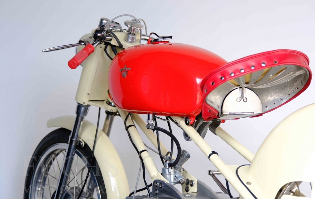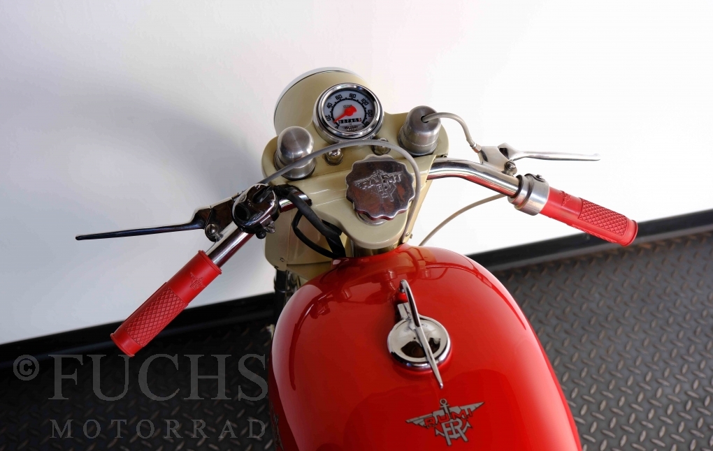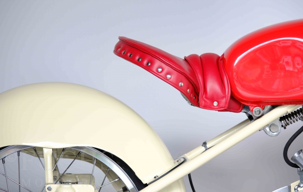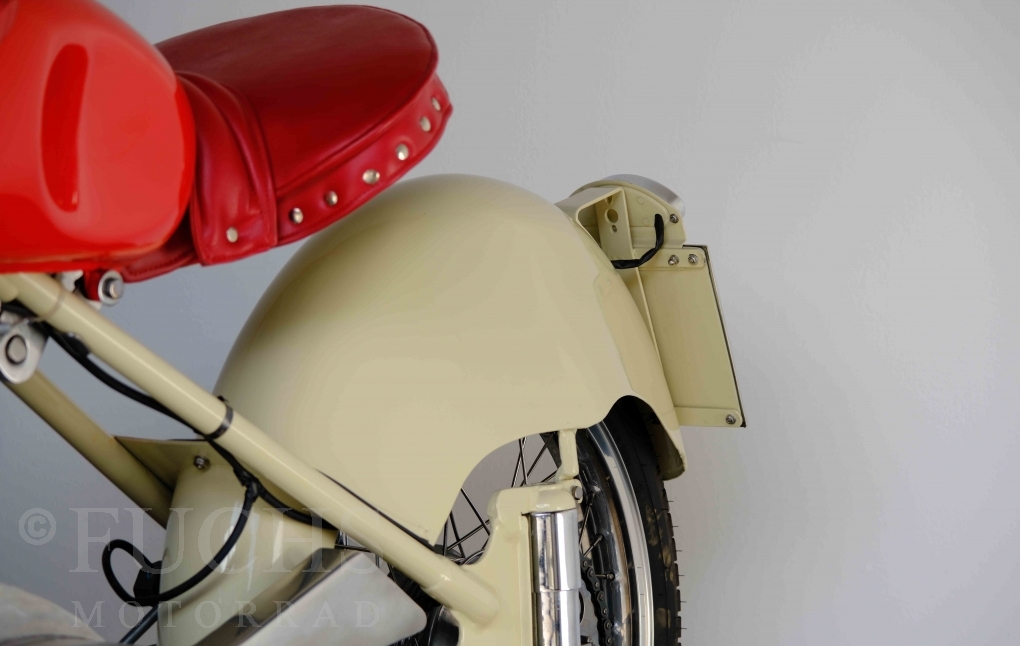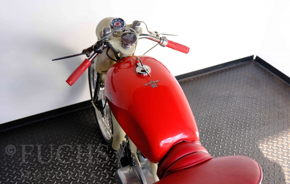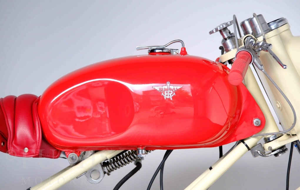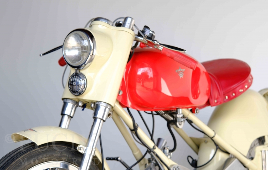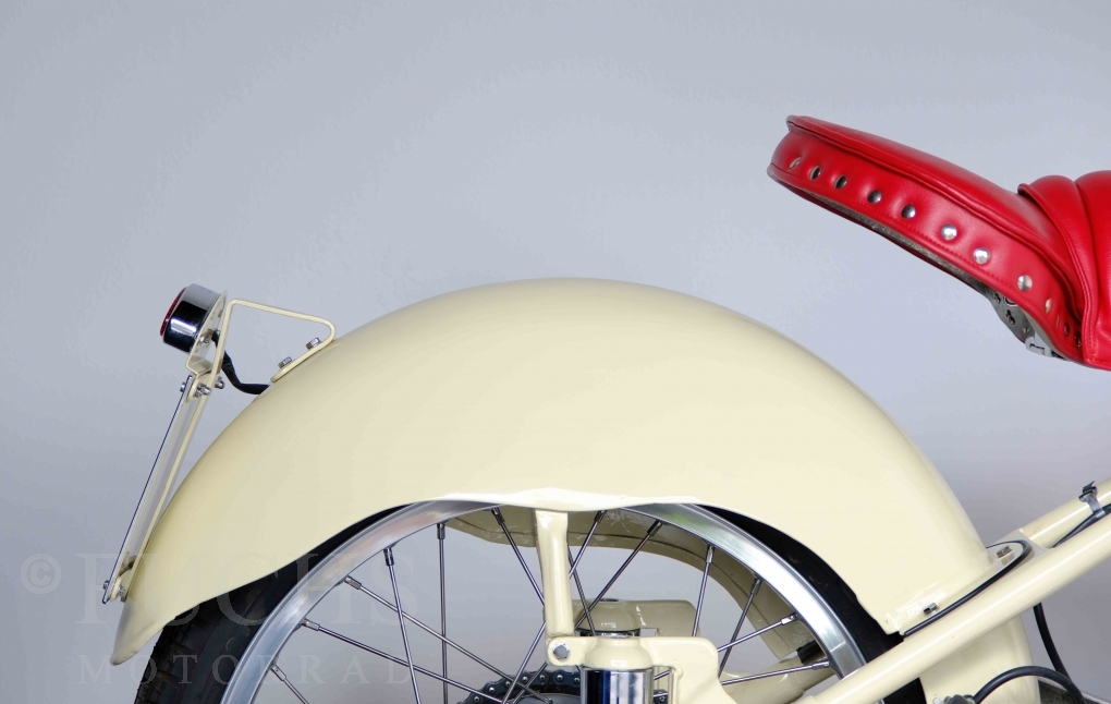 Die Turismo Modelle wurden in der Zeit von 1950-1956 gebaut. Unser Exemplar wurde restauriert und dabei wurde auf die Details geachtet. CEV Scheinwerfer, CEV Rücklicht, UA14S Vergaser, Lenker mit den integrierten Armaturen, Rumi Griffgummis, Kleeblattschrauben, Hochschulterfelgen mit 36 Speichen und einiges mehr machen unsere Turismo zu einem originalgetreuen Exemplar.