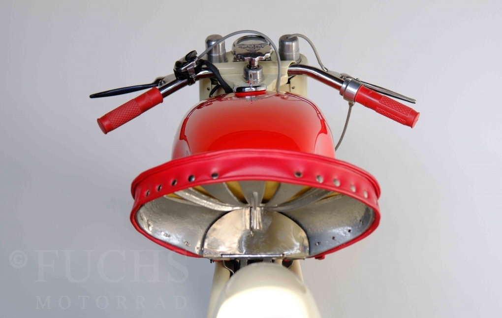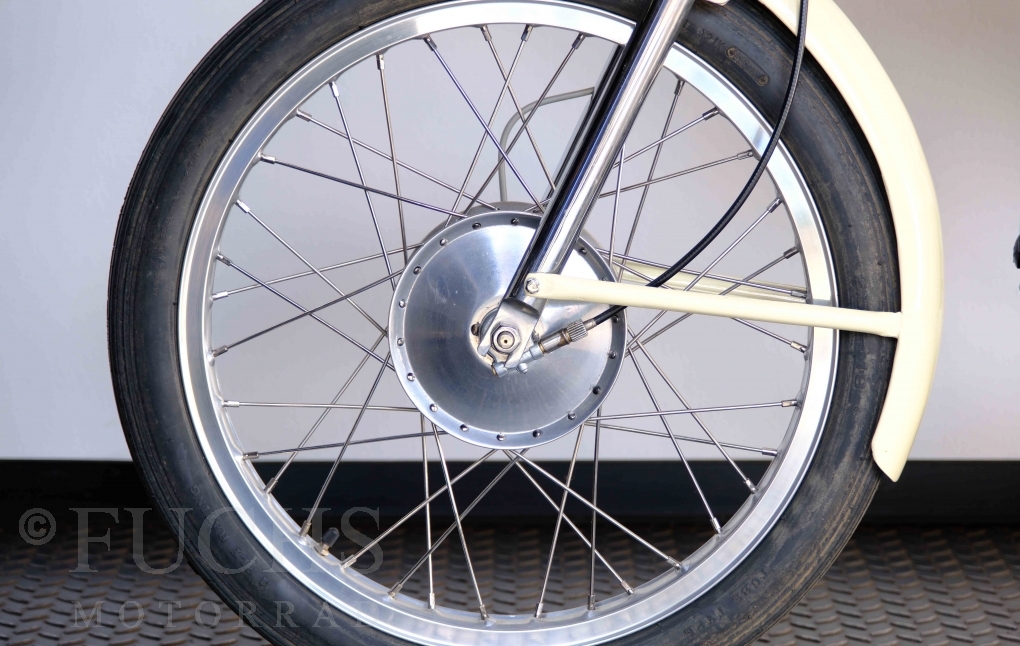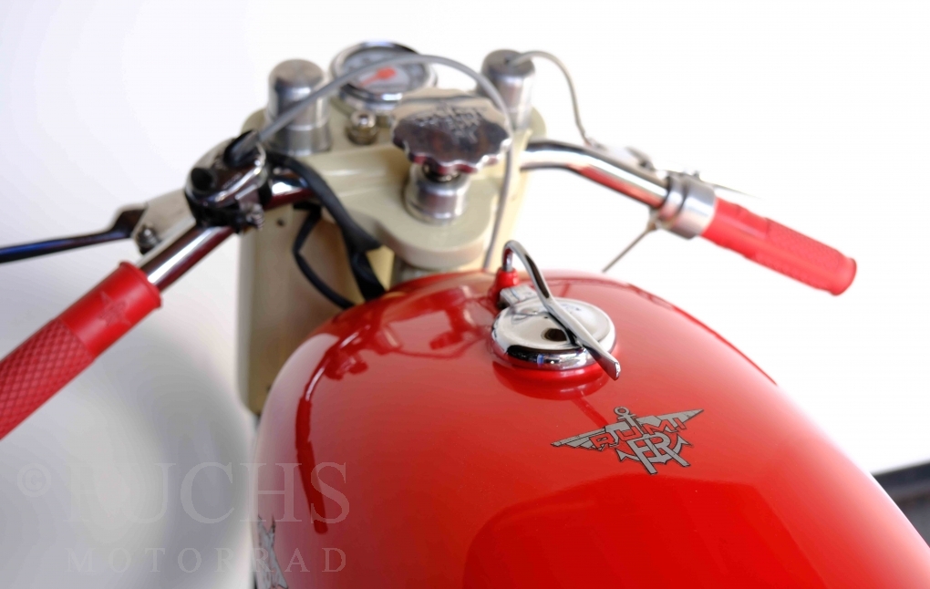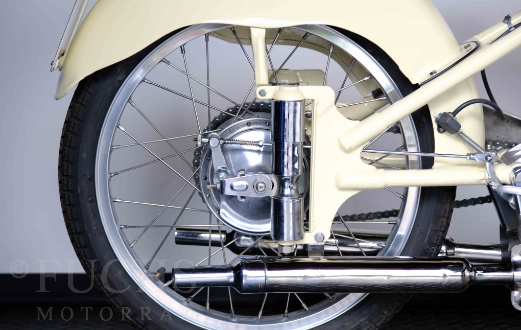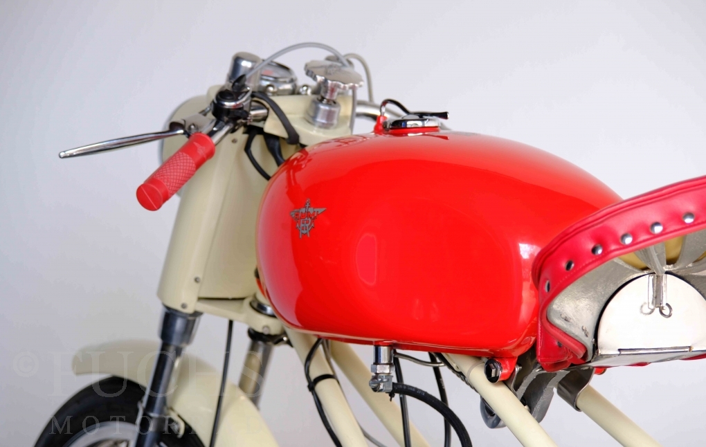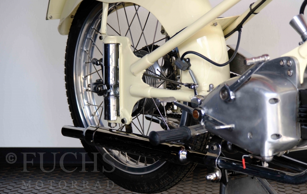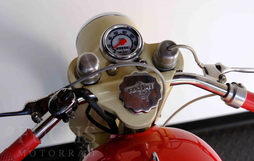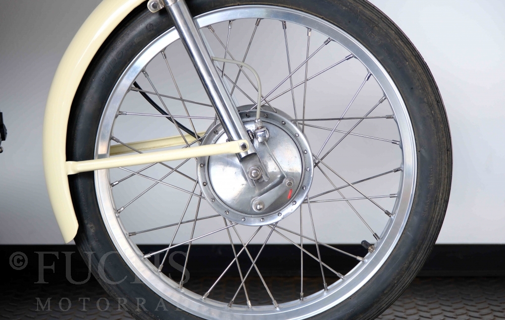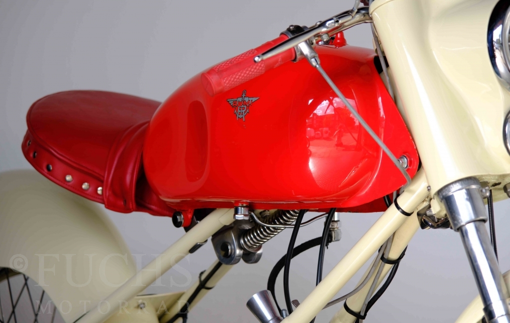 Die Turismo Modelle wurden in der Zeit von 1950-1956 gebaut. Unser Exemplar wurde restauriert und dabei wurde auf die Details geachtet. CEV Scheinwerfer, CEV Rücklicht, UA14S Vergaser, Lenker mit den integrierten Armaturen, Rumi Griffgummis, Kleeblattschrauben, Hochschulterfelgen mit 36 Speichen und einiges mehr machen unsere Turismo zu einem originalgetreuen Exemplar.