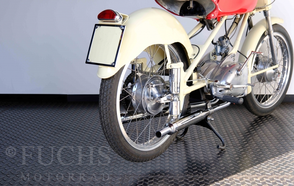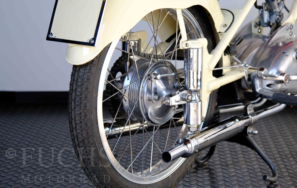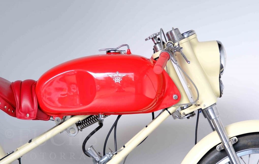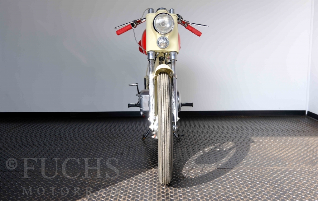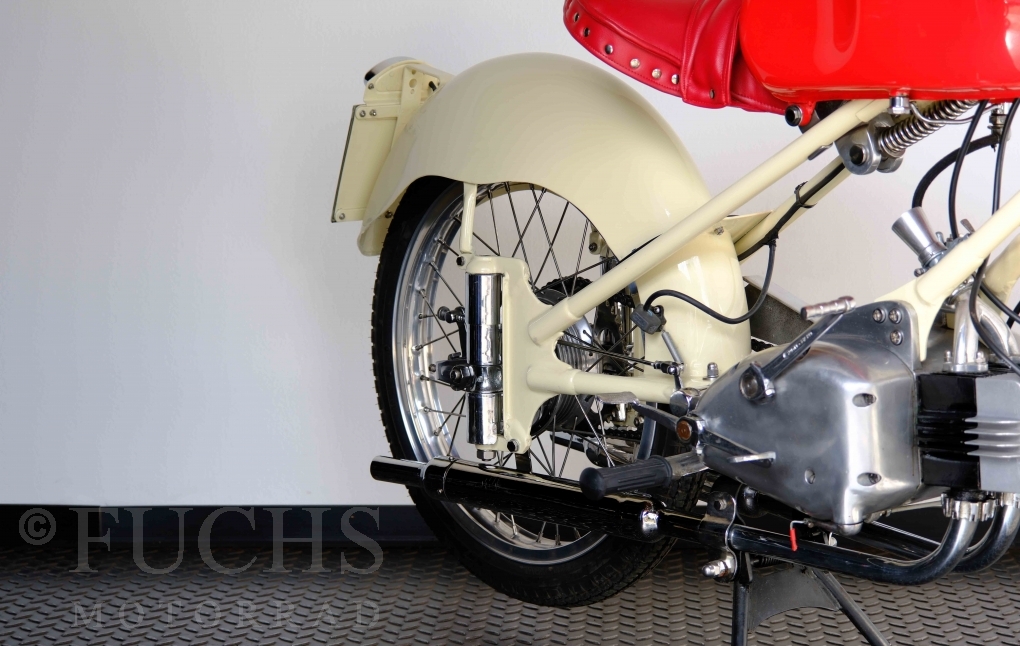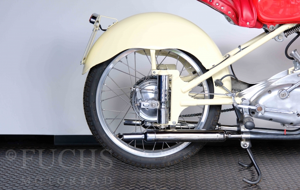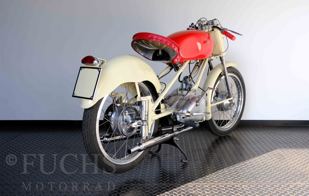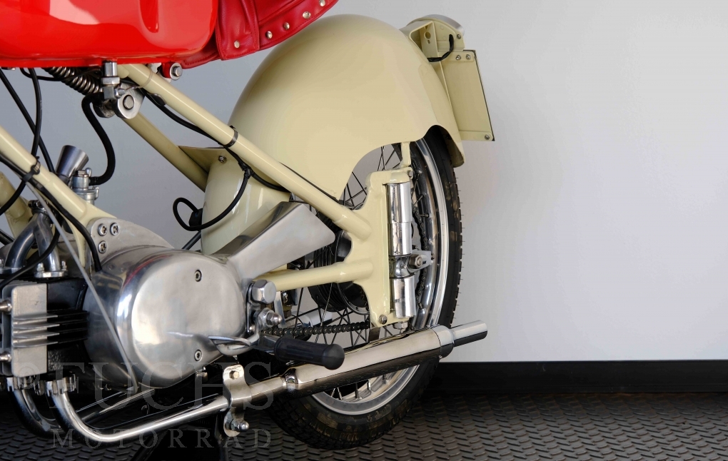 Die Turismo Modelle wurden in der Zeit von 1950-1956 gebaut. Unser Exemplar wurde restauriert und dabei wurde auf die Details geachtet. CEV Scheinwerfer, CEV Rücklicht, UA14S Vergaser, Lenker mit den integrierten Armaturen, Rumi Griffgummis, Kleeblattschrauben, Hochschulterfelgen mit 36 Speichen und einiges mehr machen unsere Turismo zu einem originalgetreuen Exemplar.