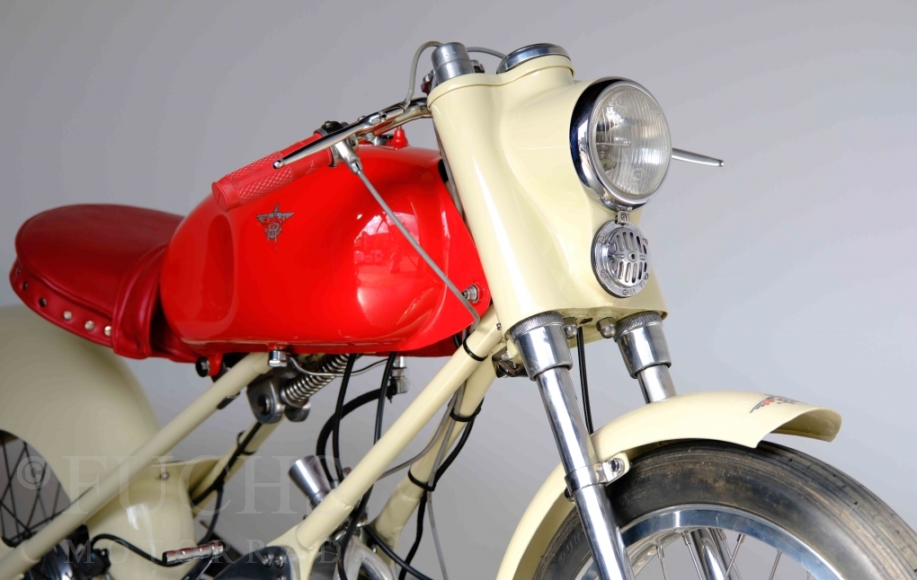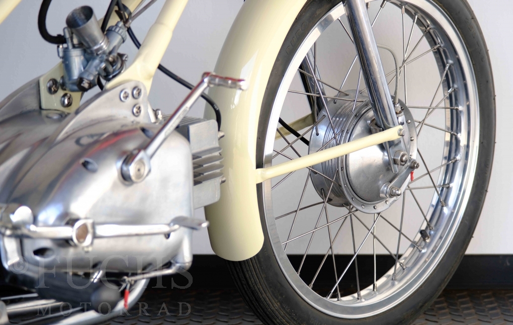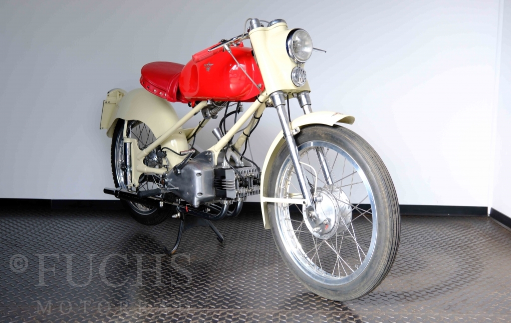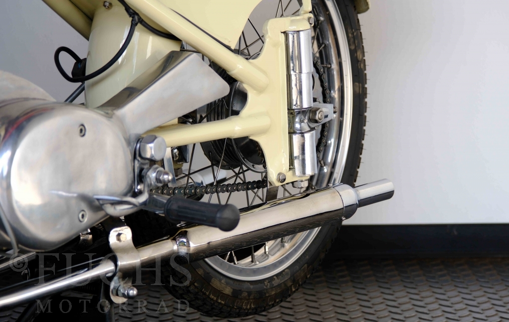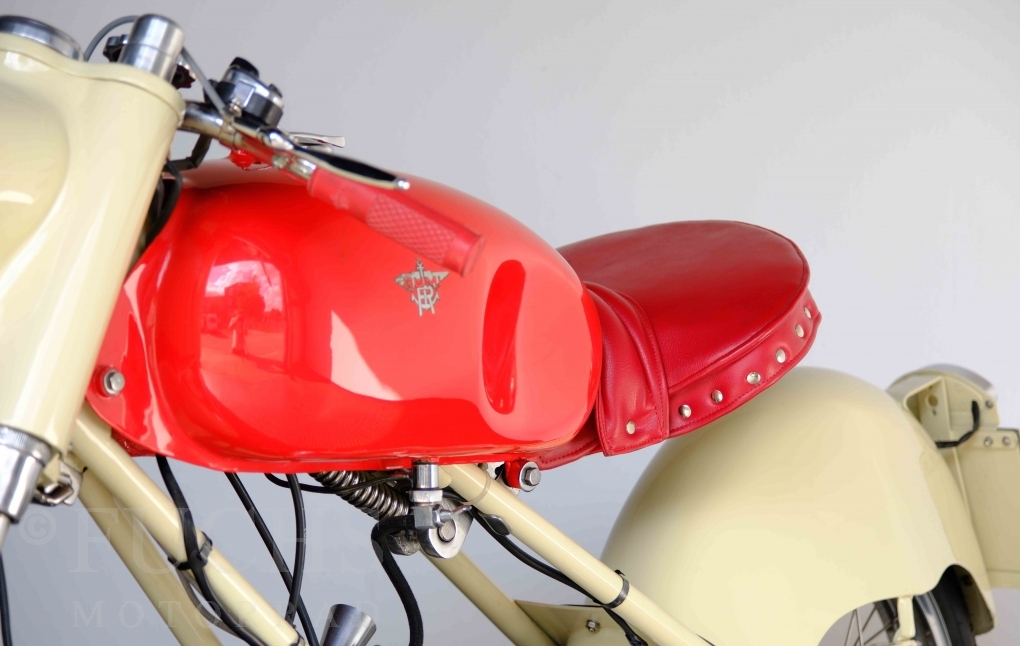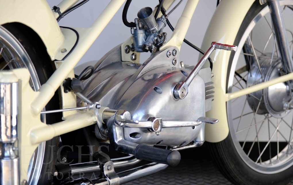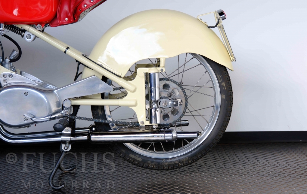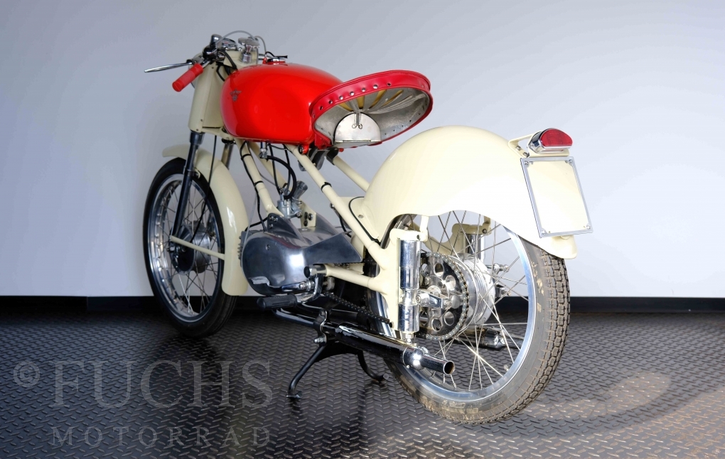 Die Turismo Modelle wurden in der Zeit von 1950-1956 gebaut. Unser Exemplar wurde restauriert und dabei wurde auf die Details geachtet. CEV Scheinwerfer, CEV Rücklicht, UA14S Vergaser, Lenker mit den integrierten Armaturen, Rumi Griffgummis, Kleeblattschrauben, Hochschulterfelgen mit 36 Speichen und einiges mehr machen unsere Turismo zu einem originalgetreuen Exemplar.