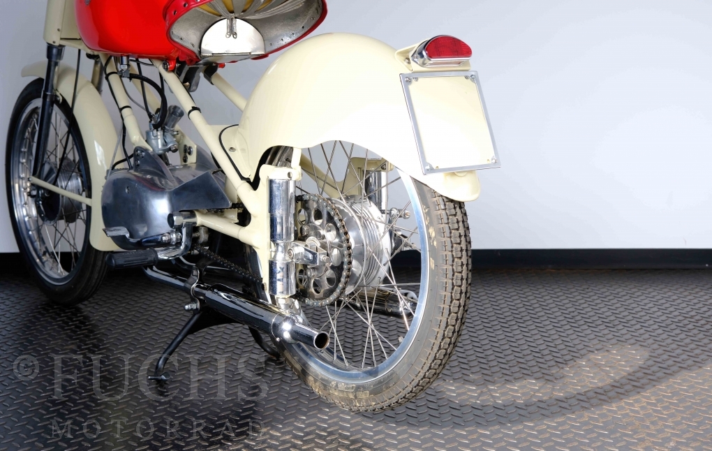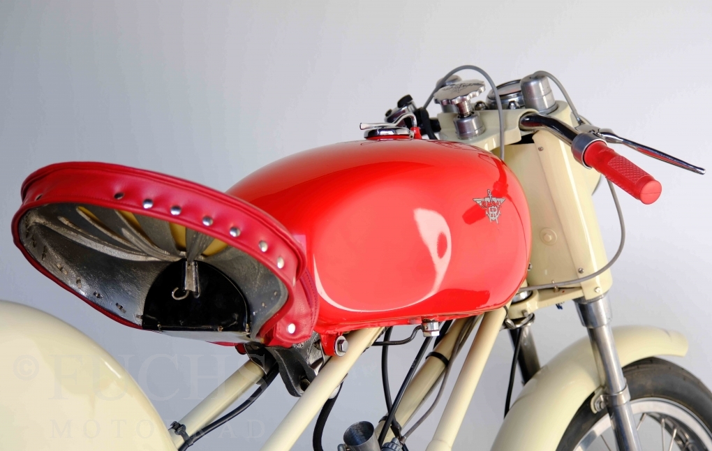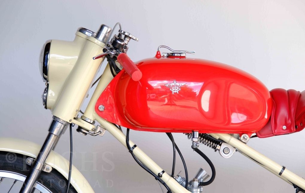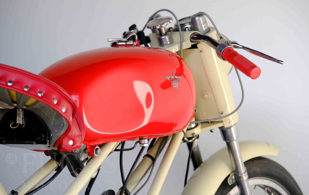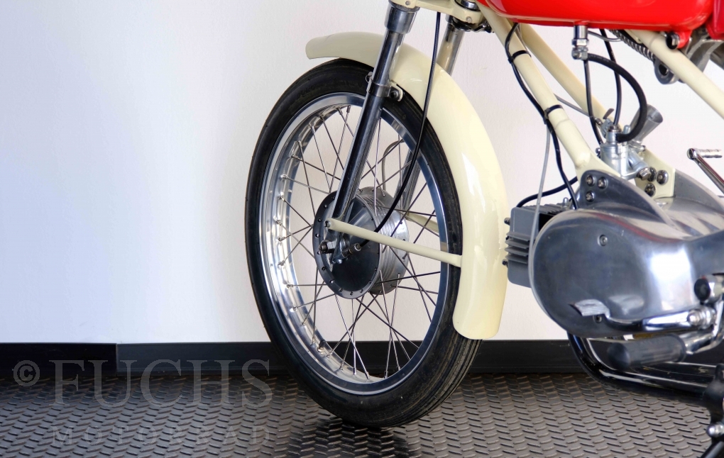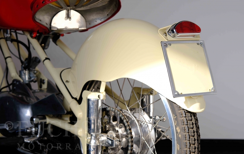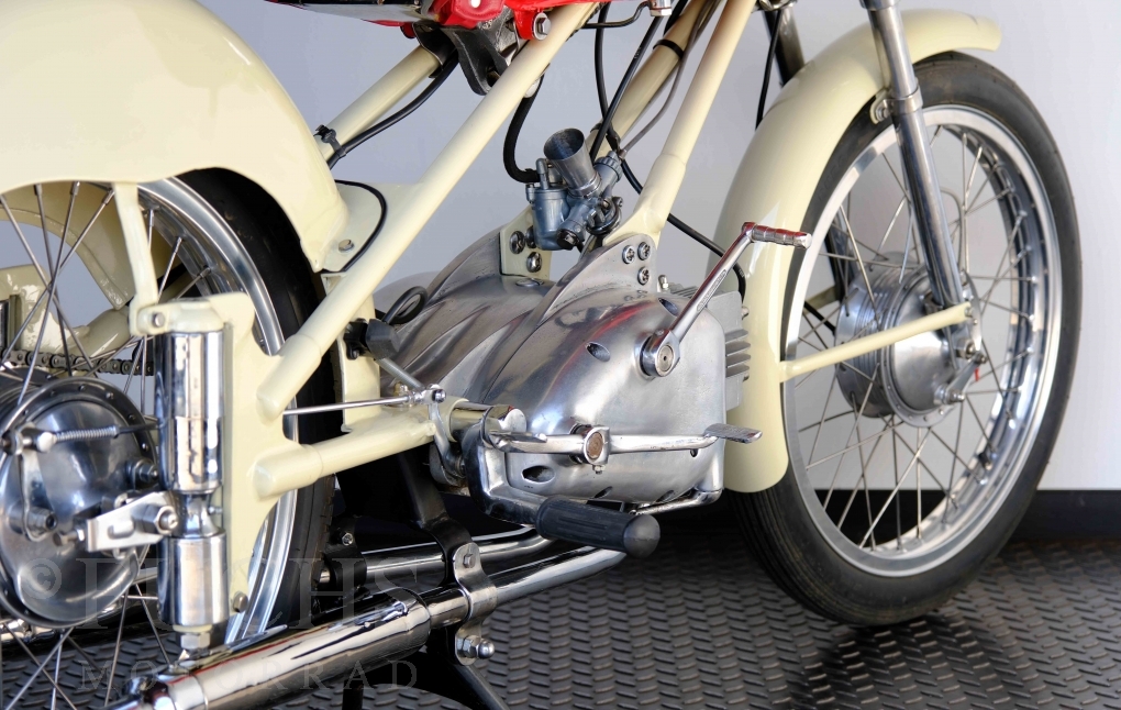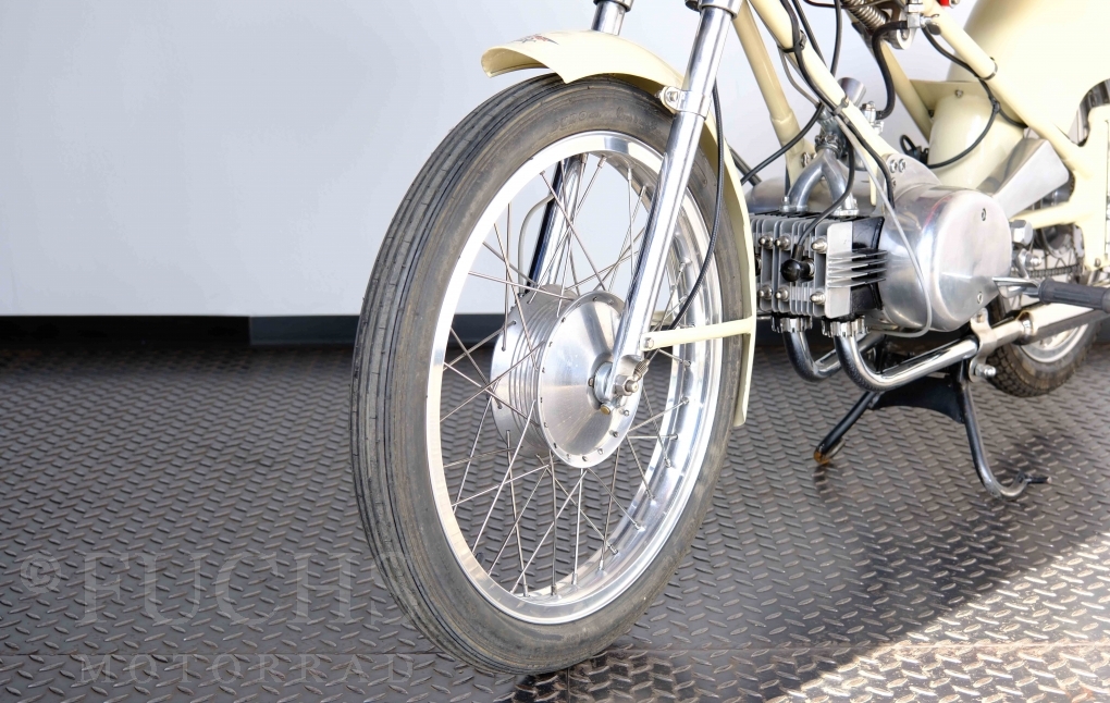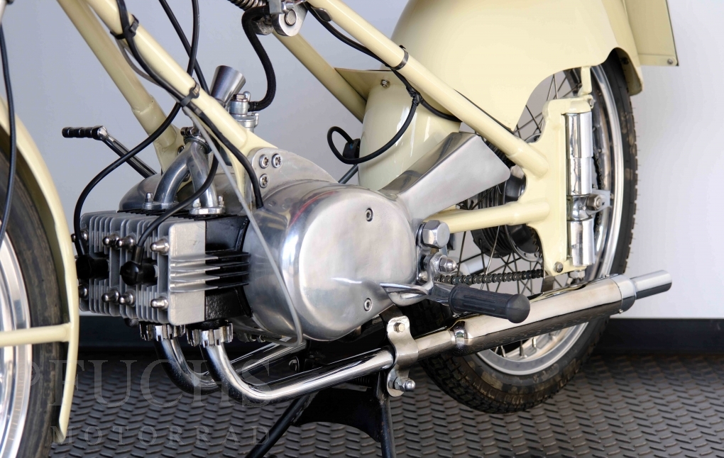 Die Turismo Modelle wurden in der Zeit von 1950-1956 gebaut. Unser Exemplar wurde restauriert und dabei wurde auf die Details geachtet. CEV Scheinwerfer, CEV Rücklicht, UA14S Vergaser, Lenker mit den integrierten Armaturen, Rumi Griffgummis, Kleeblattschrauben, Hochschulterfelgen mit 36 Speichen und einiges mehr machen unsere Turismo zu einem originalgetreuen Exemplar.