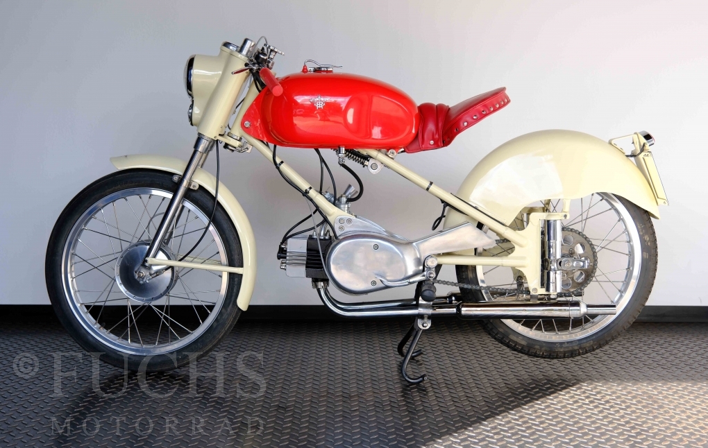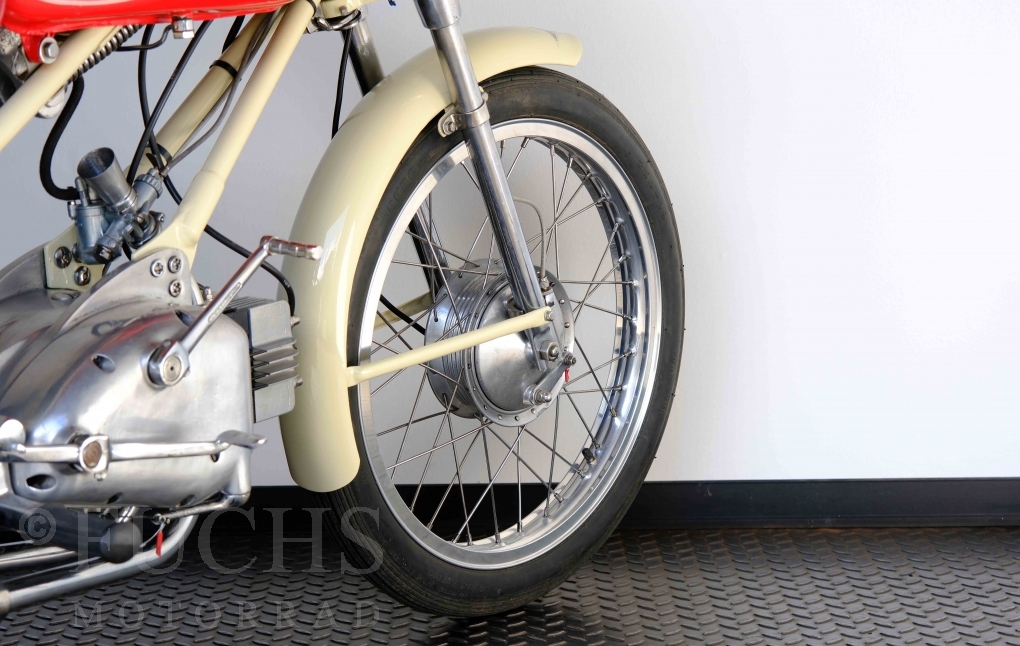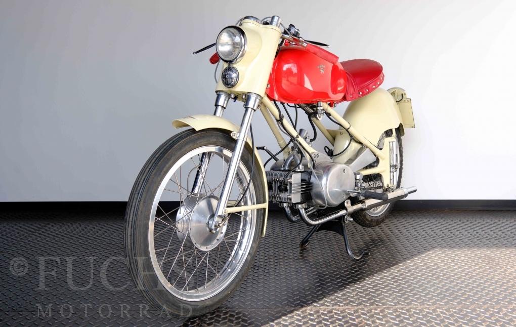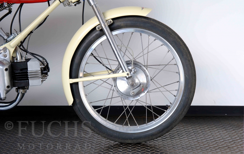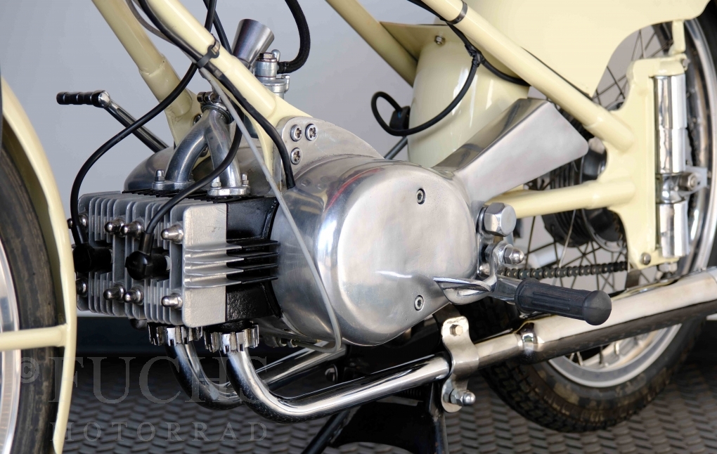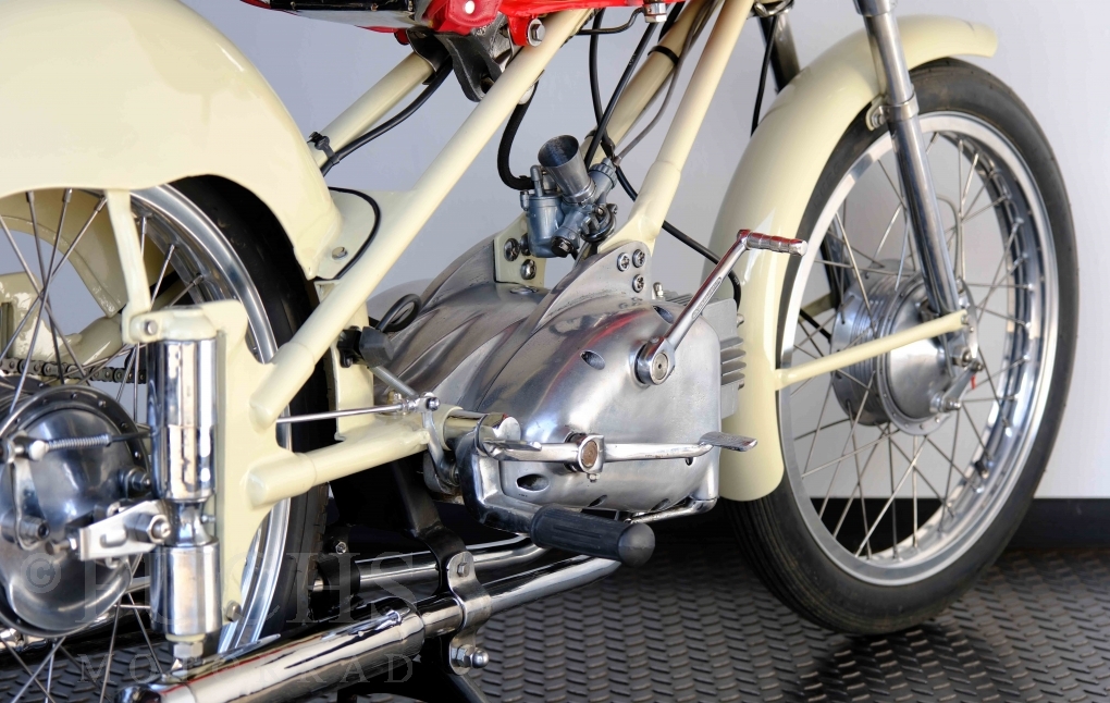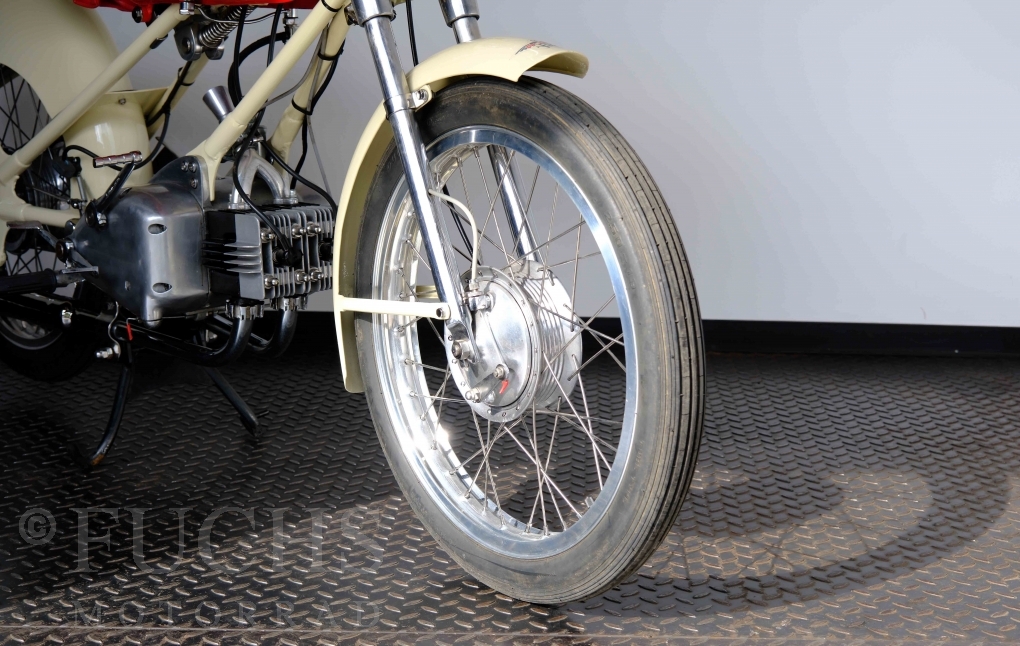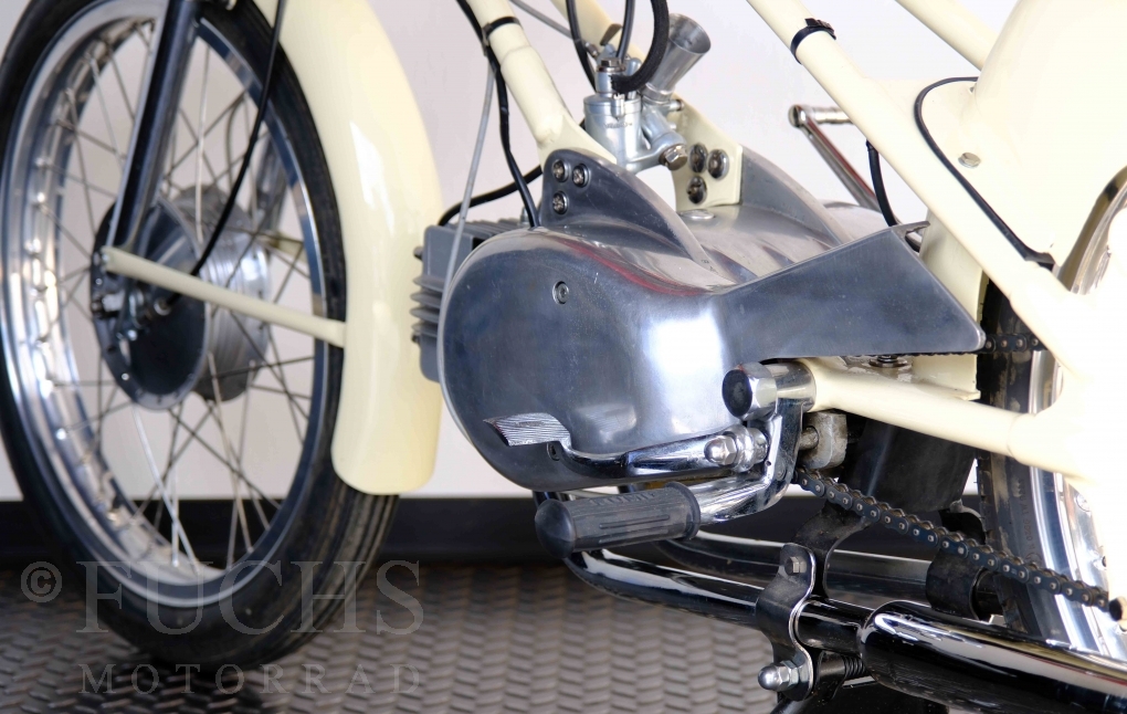 Die Turismo Modelle wurden in der Zeit von 1950-1956 gebaut. Unser Exemplar wurde restauriert und dabei wurde auf die Details geachtet. CEV Scheinwerfer, CEV Rücklicht, UA14S Vergaser, Lenker mit den integrierten Armaturen, Rumi Griffgummis, Kleeblattschrauben, Hochschulterfelgen mit 36 Speichen und einiges mehr machen unsere Turismo zu einem originalgetreuen Exemplar.