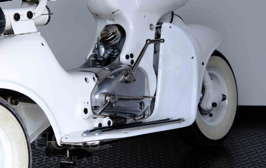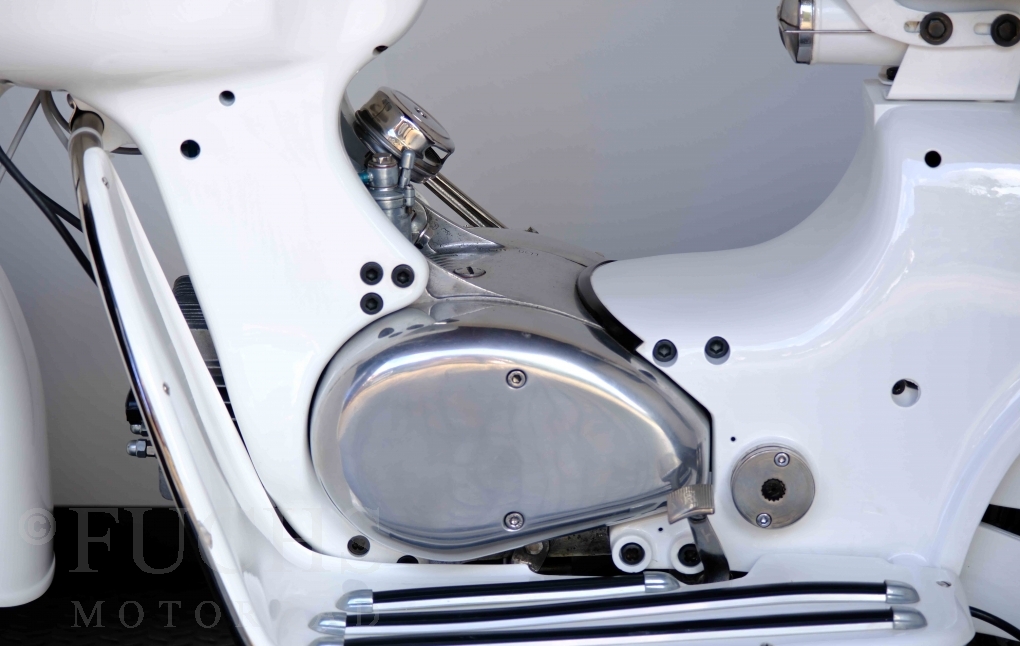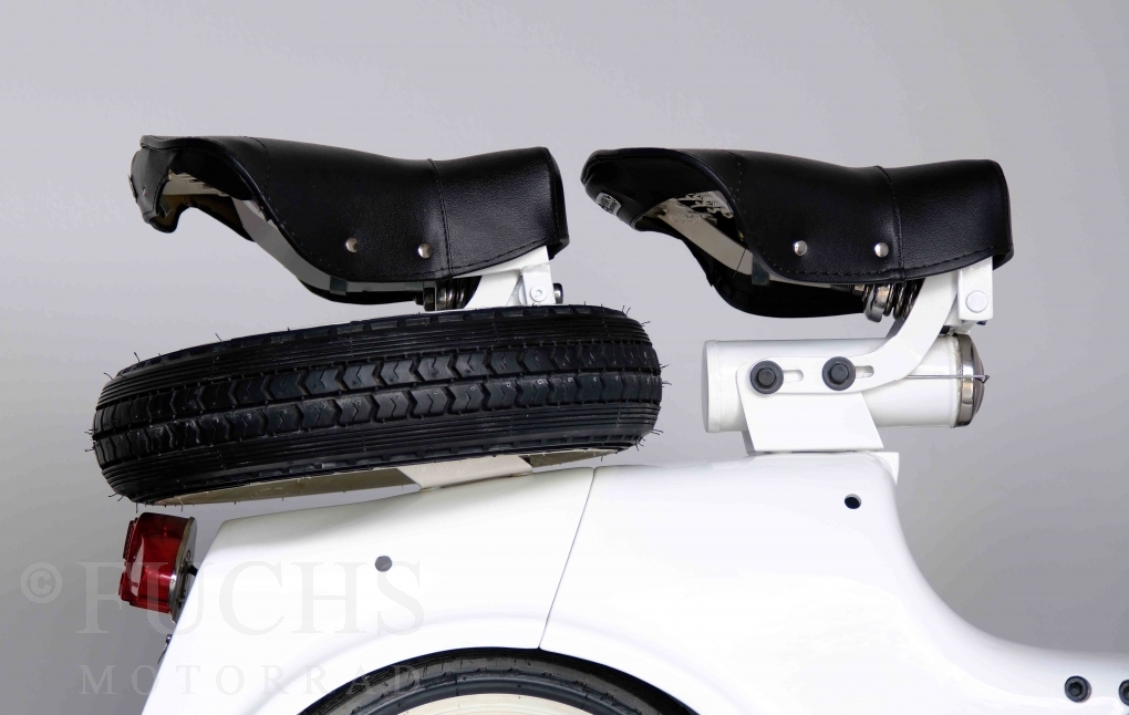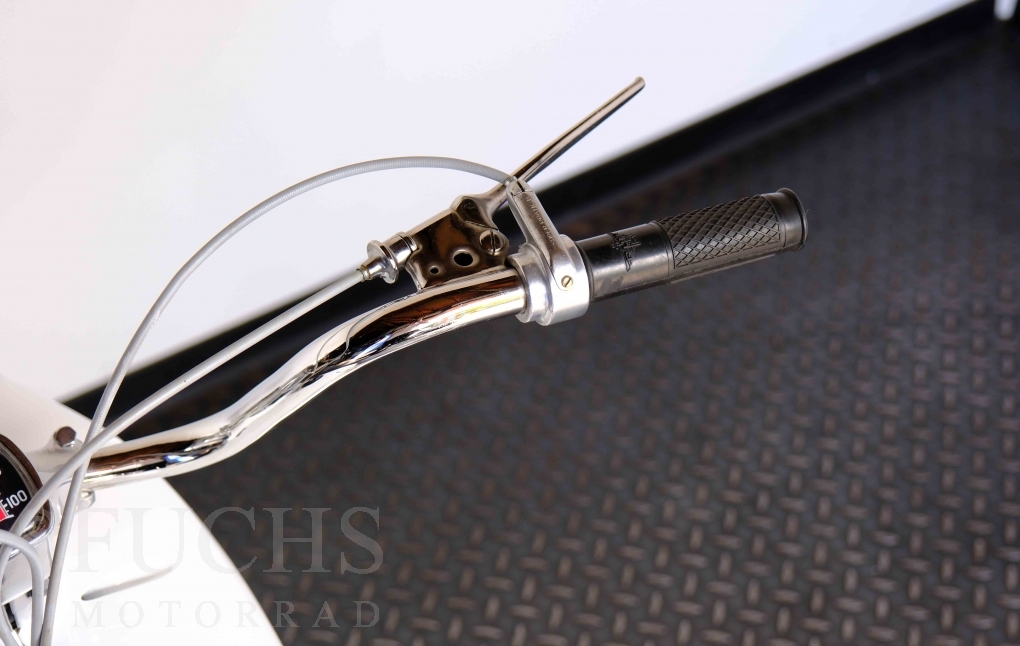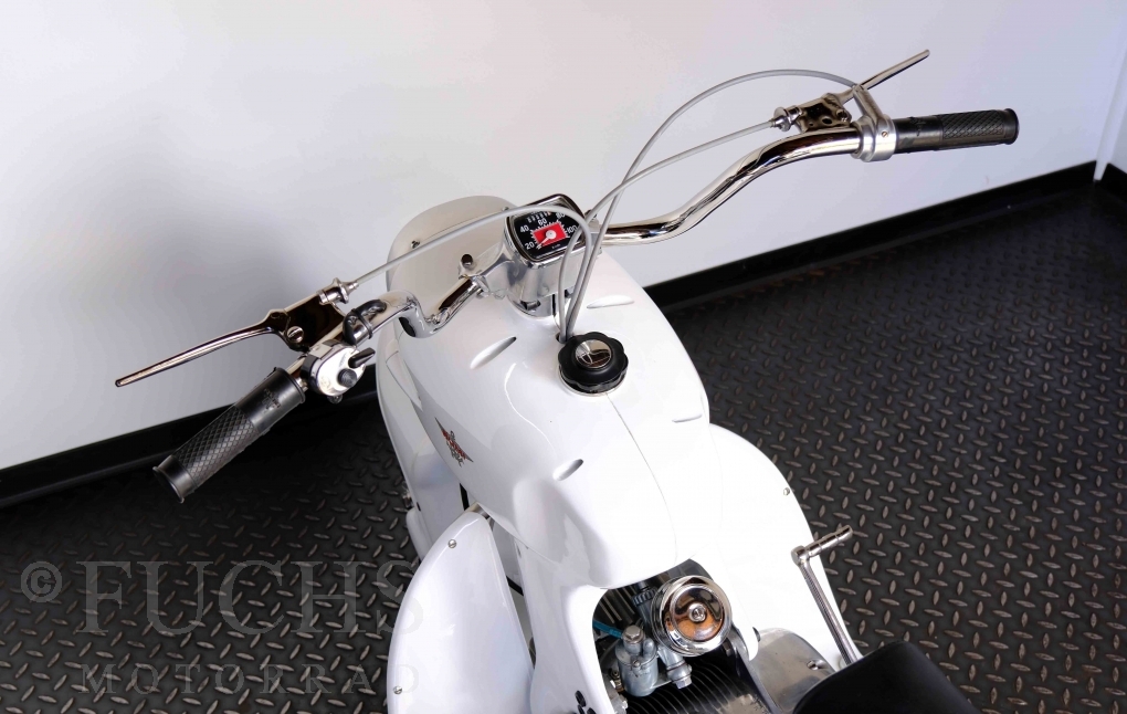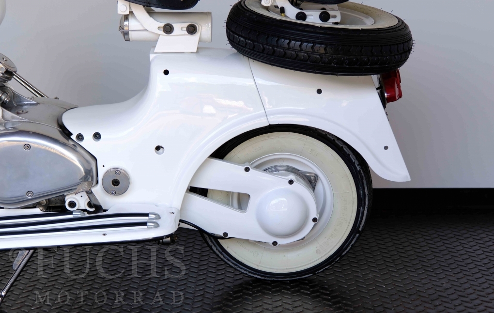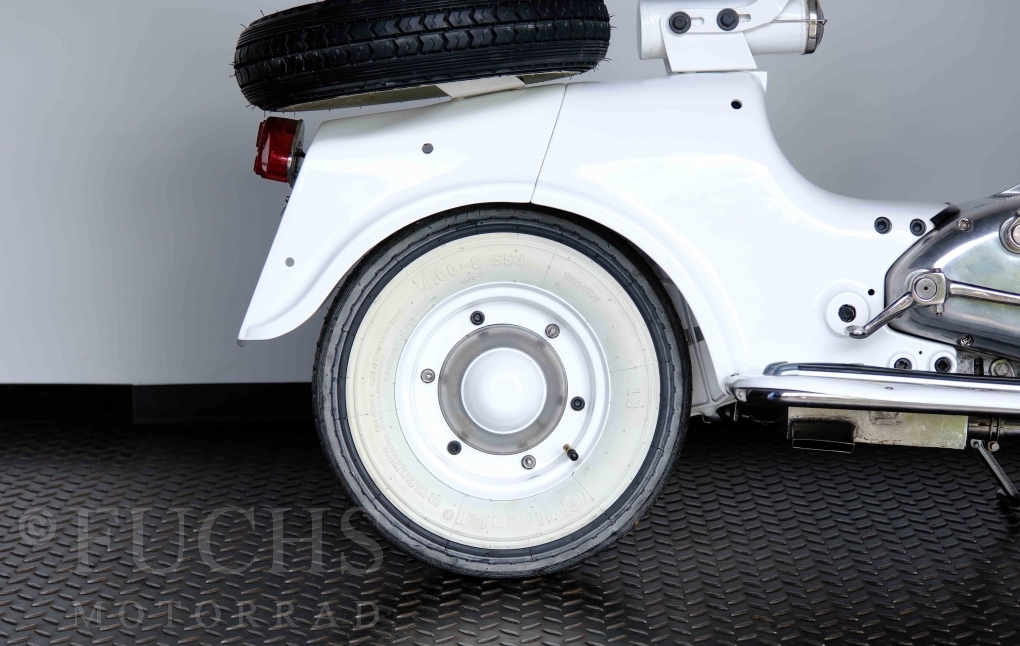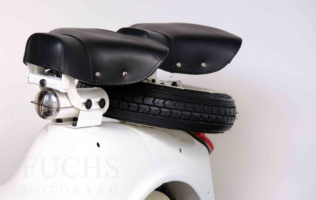 Der Formichino Roller wurde von Donnino Rumi entwickelt. Ziel der Entwicklung war die Marktdominanz Lambretta und Vespa zu stören. Die speziellen Metallformen wurde in einer Rumi Tochtergesellschaft in Bergamo produziert. Unser Formichino ist in einem schönen Zustand. CEV Scheinwerfer, CEV Rücklicht, zweiteilige 8 Zoll Felgen, Veglia 0-100 km/h Tachometer, Lenker mit verbundenen Armaturen machen die Rumi zu einem gut restaurierten Oldtimer. Selbstverständlich sind auch die Kleeblattschrauben verbaut.