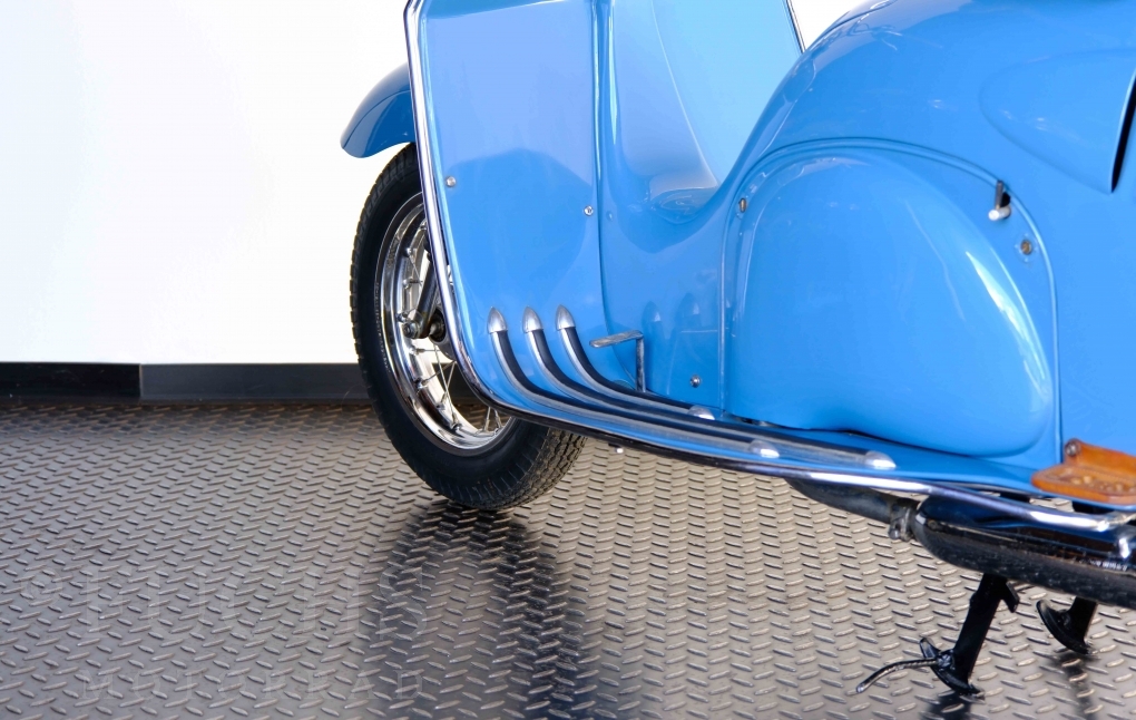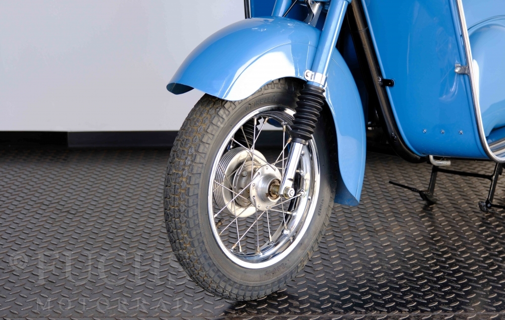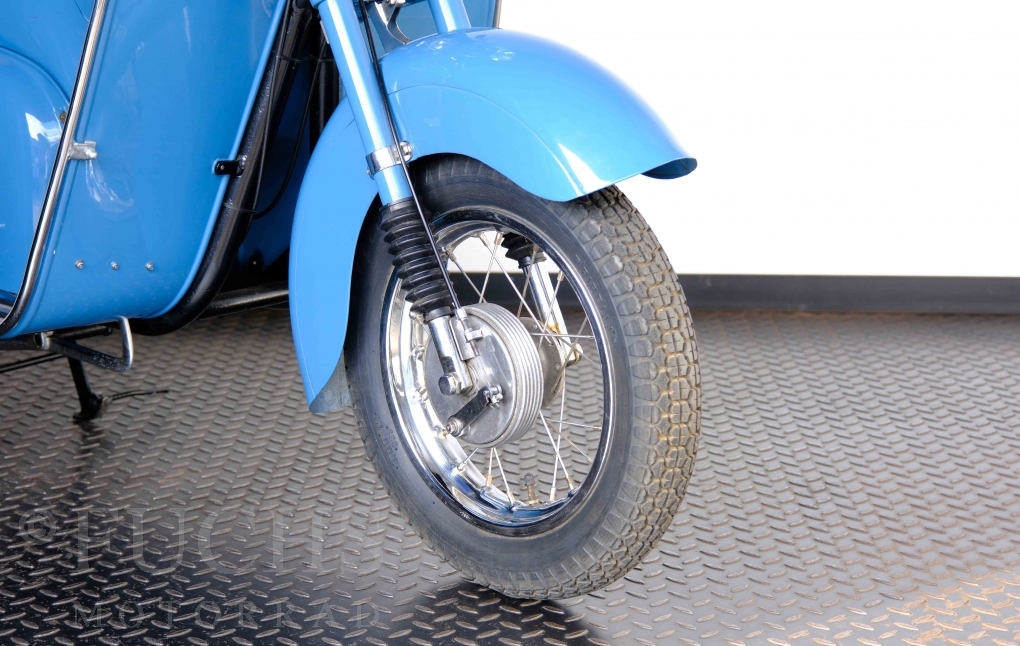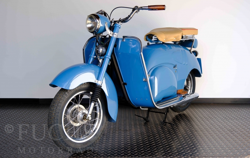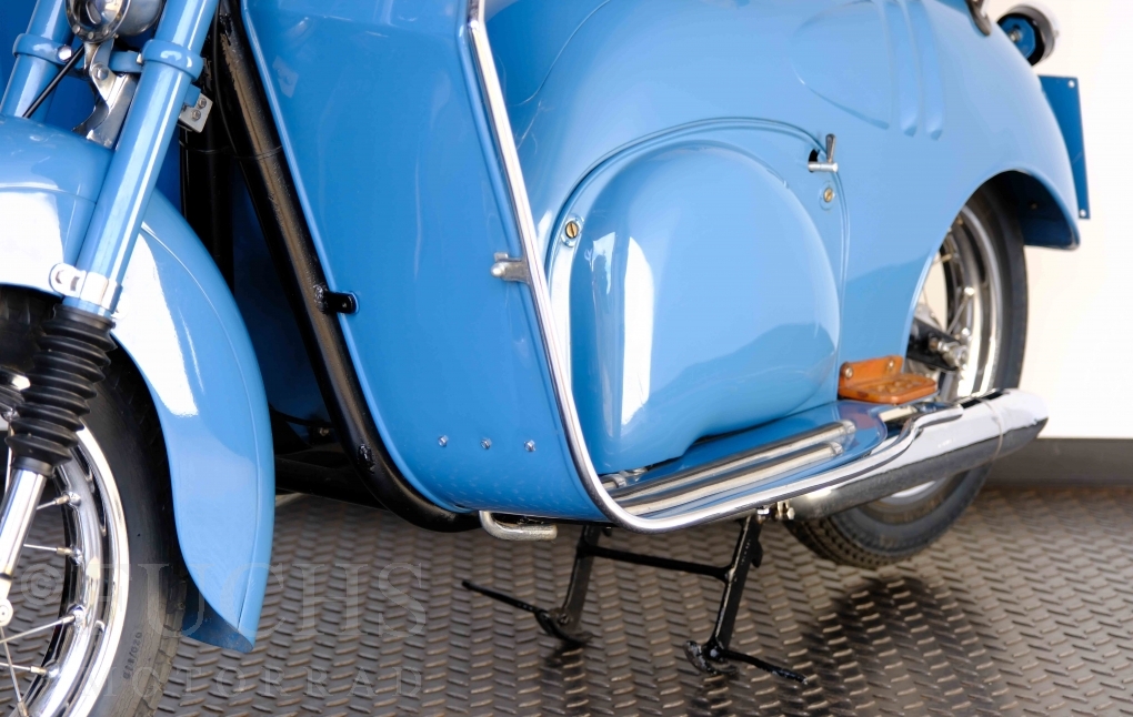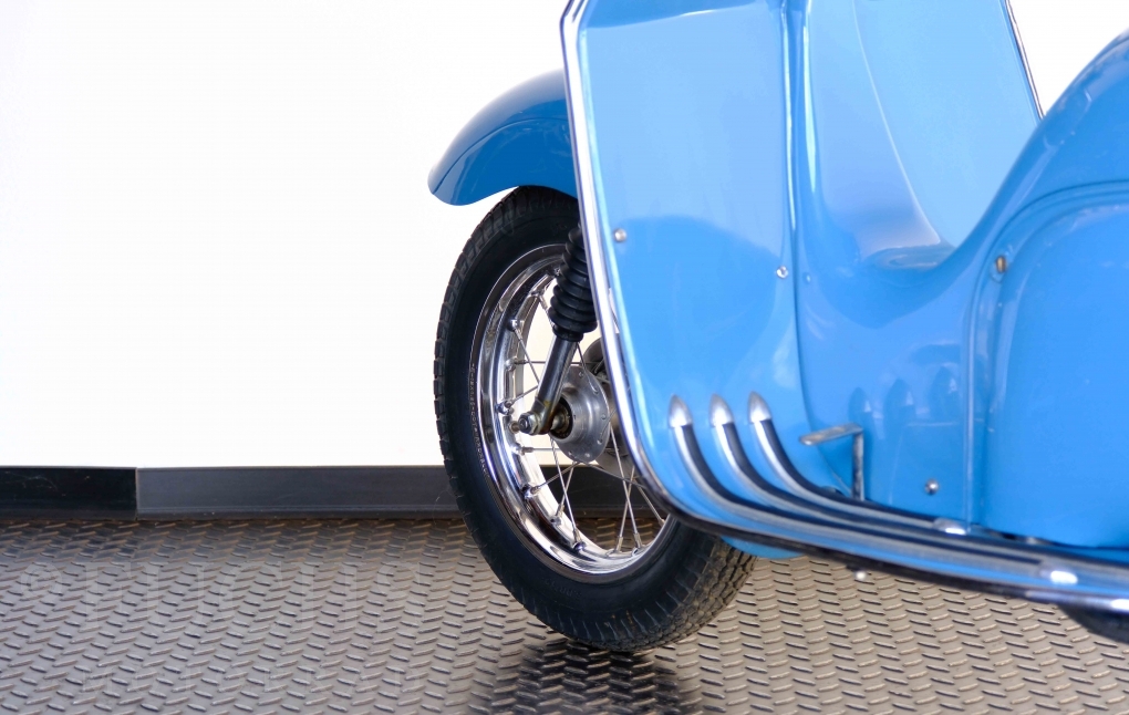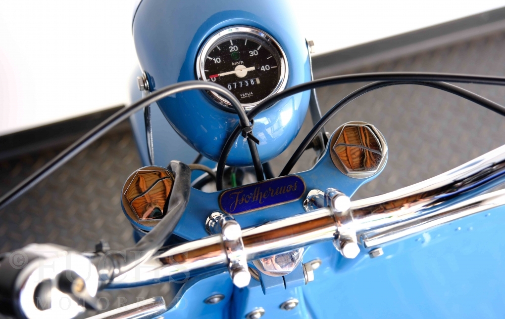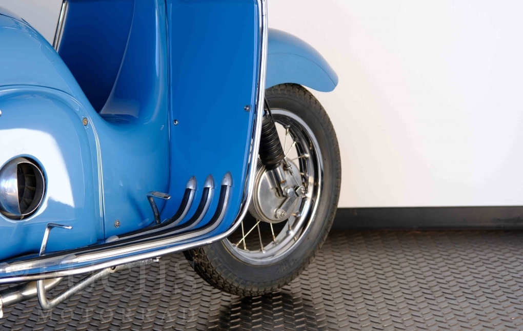 Isothermos produzierte zunächst in Bresso thermische Anlagen. Nur geringe Erfolge verzeichnete das erste Modell 1949 der Motorroller Furetto mit 65 ccm. 1950 kam der Motorroller ISO 125 in den Markt, der erfolgreicher war. Der von uns angebotene Roller wurde zwischen 1953 und 1955 hergestellt. Mit einer Teleskopgabel, Fußschaltung, 3-Gang Getriebe und Hinterradschwinge wurden guten Fahrleistungen erreicht. Der Isoscooter 125 ist in einem sehr schönen Zustand, da vor einigen Jahren eine Restaurierung durchgeführt wurde. Der Firmeneigentümer hat sich 1960 auf den Bau von Sportwagen konzentriert, so dass die Produktion von Motorrollern eingestellt wurde. 1961 wurde zwar der Öffentlichkeit noch das Motorrad ISO 500 präsentiert, dass aber vom Motorradmarkt nicht angenommen wurde.
