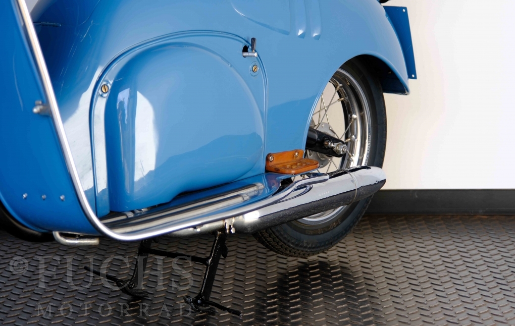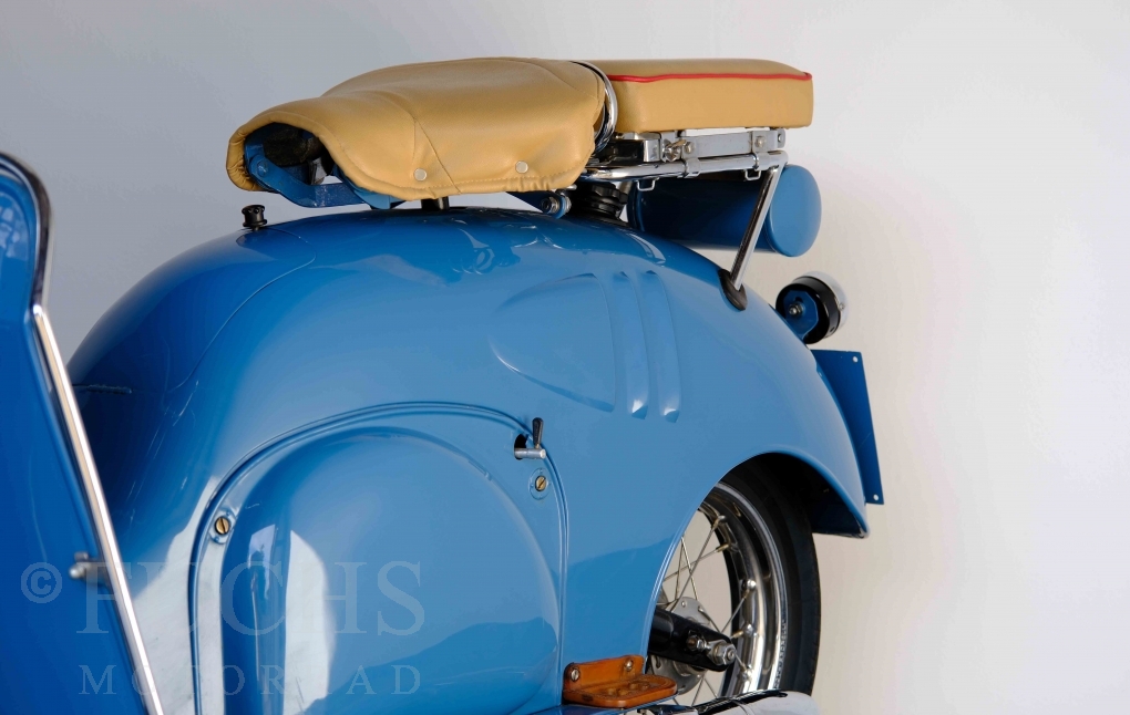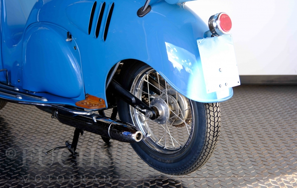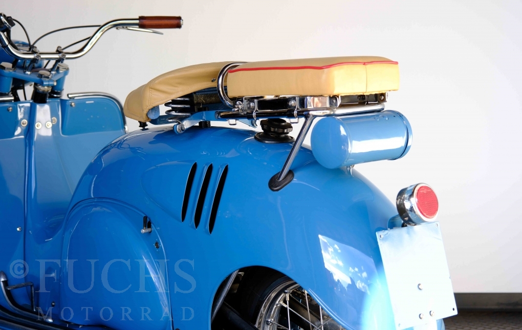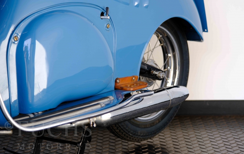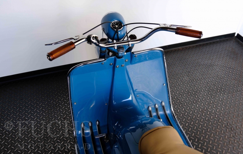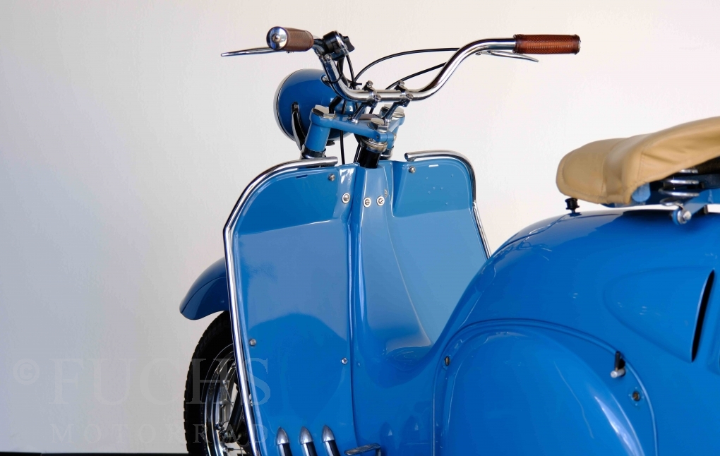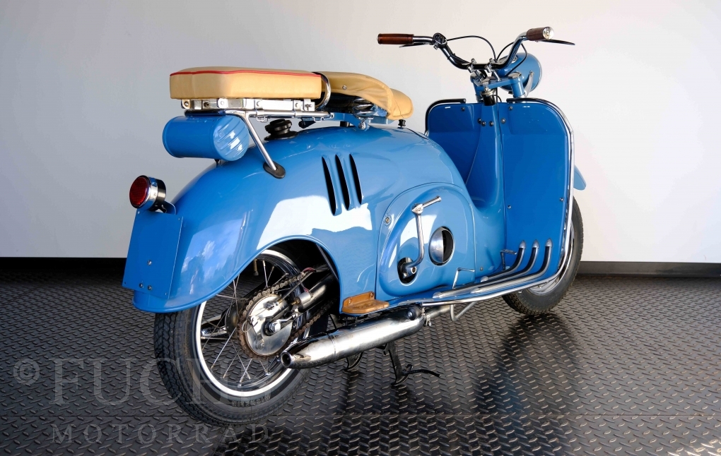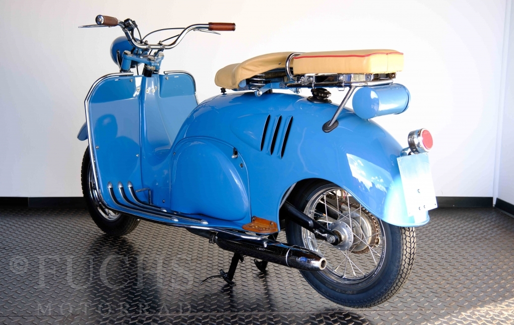 Isothermos produzierte zunächst in Bresso thermische Anlagen. Nur geringe Erfolge verzeichnete das erste Modell 1949 der Motorroller Furetto mit 65 ccm. 1950 kam der Motorroller ISO 125 in den Markt, der erfolgreicher war. Der von uns angebotene Roller wurde zwischen 1953 und 1955 hergestellt. Mit einer Teleskopgabel, Fußschaltung, 3-Gang Getriebe und Hinterradschwinge wurden guten Fahrleistungen erreicht. Der Isoscooter 125 ist in einem sehr schönen Zustand, da vor einigen Jahren eine Restaurierung durchgeführt wurde. Der Firmeneigentümer hat sich 1960 auf den Bau von Sportwagen konzentriert, so dass die Produktion von Motorrollern eingestellt wurde. 1961 wurde zwar der Öffentlichkeit noch das Motorrad ISO 500 präsentiert, dass aber vom Motorradmarkt nicht angenommen wurde.