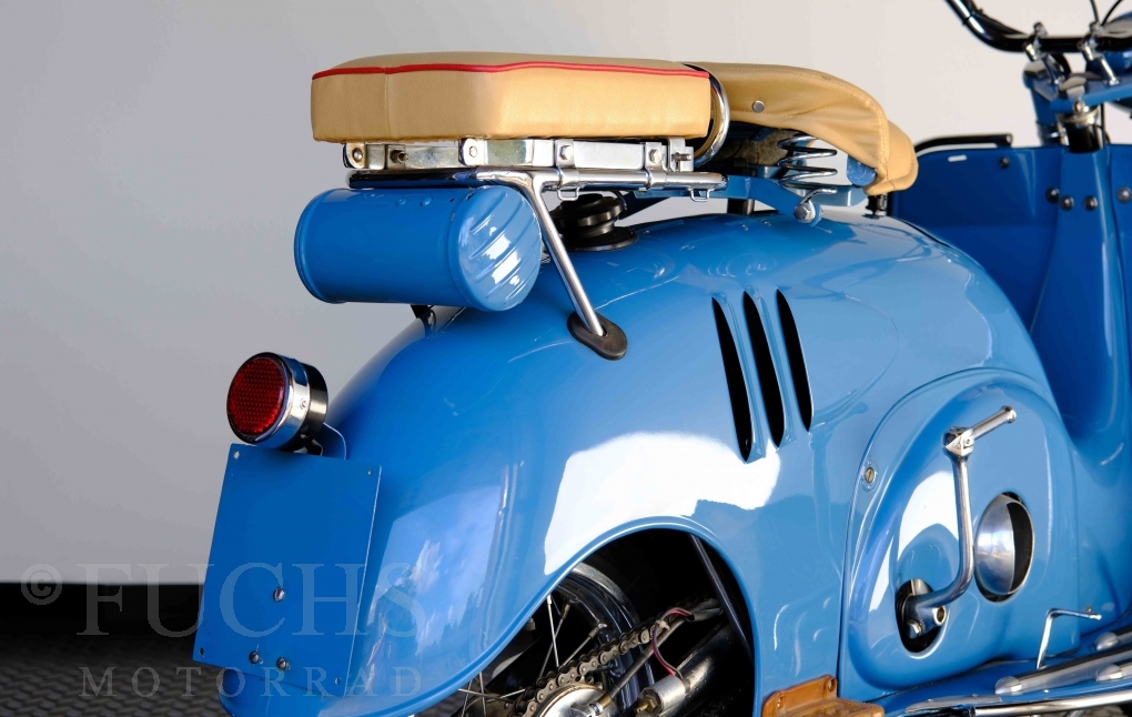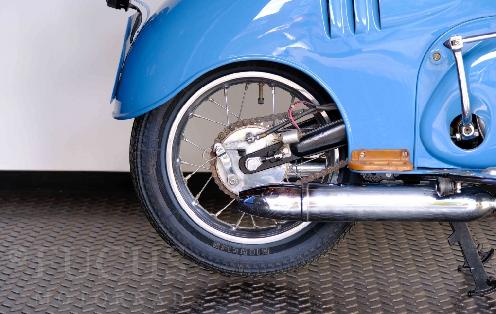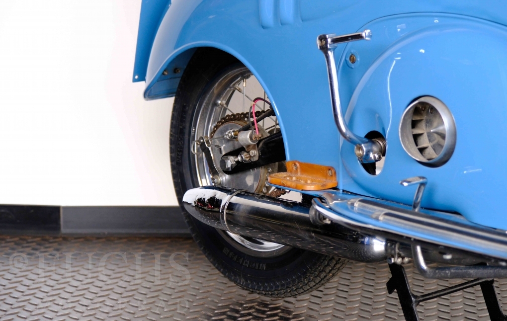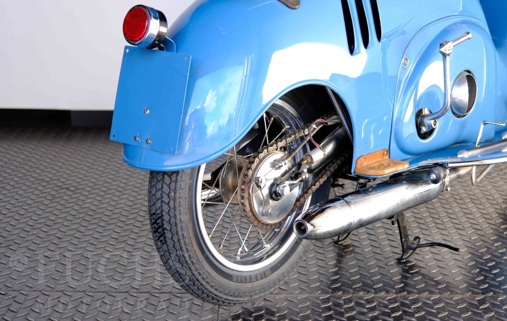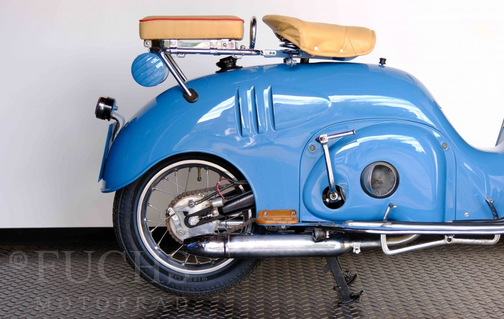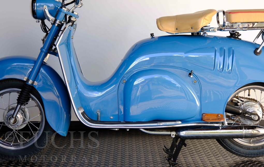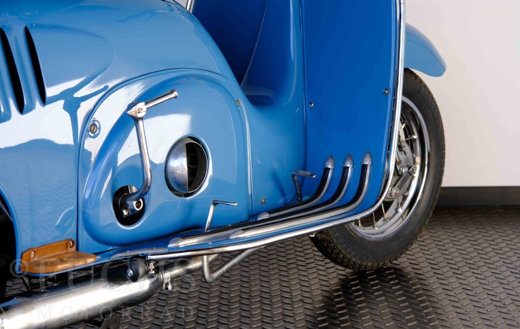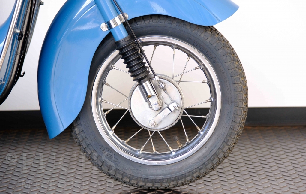 Isothermos produzierte zunächst in Bresso thermische Anlagen. Nur geringe Erfolge verzeichnete das erste Modell 1949 der Motorroller Furetto mit 65 ccm. 1950 kam der Motorroller ISO 125 in den Markt, der erfolgreicher war. Der von uns angebotene Roller wurde zwischen 1953 und 1955 hergestellt. Mit einer Teleskopgabel, Fußschaltung, 3-Gang Getriebe und Hinterradschwinge wurden guten Fahrleistungen erreicht. Der Isoscooter 125 ist in einem sehr schönen Zustand, da vor einigen Jahren eine Restaurierung durchgeführt wurde. Der Firmeneigentümer hat sich 1960 auf den Bau von Sportwagen konzentriert, so dass die Produktion von Motorrollern eingestellt wurde. 1961 wurde zwar der Öffentlichkeit noch das Motorrad ISO 500 präsentiert, dass aber vom Motorradmarkt nicht angenommen wurde.
