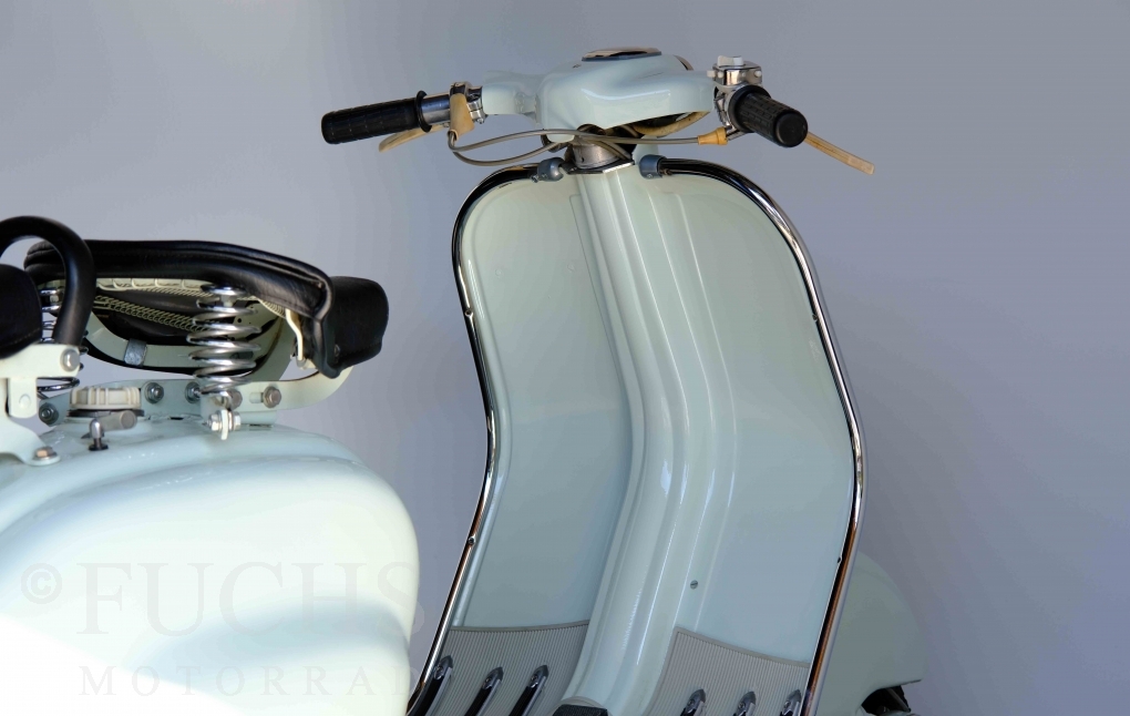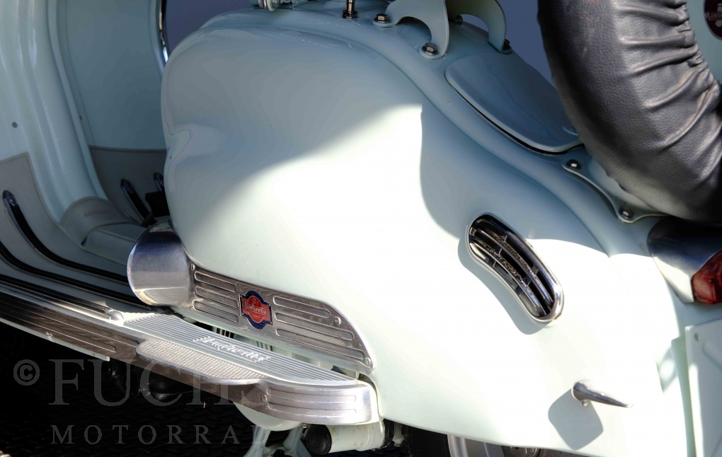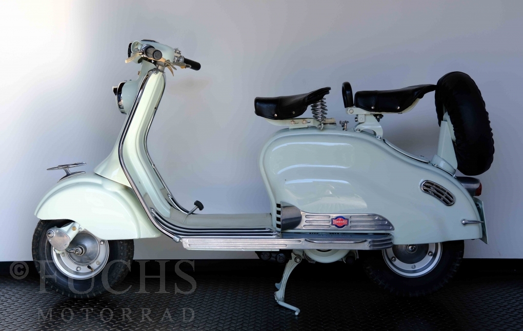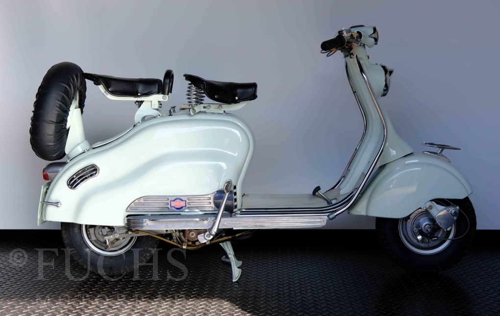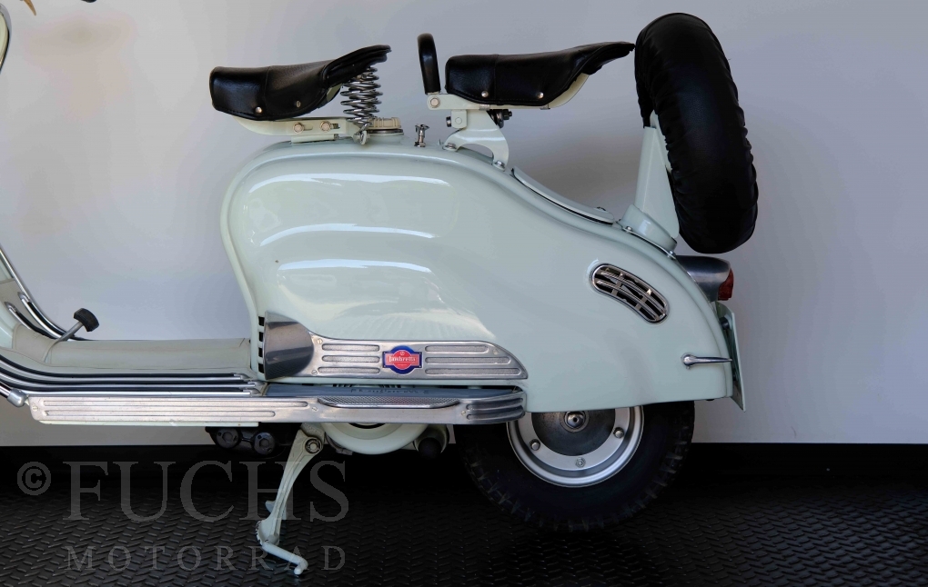 Ferdinando Innocenti hat 1931 in Lambrate bei Mailand einen Fertigungsbetrieb aufgebaut. 1946 wurden die ersten Lambretta Roller entwickelt. Der Roller Lambretta 150 LD wurde im Jahr 1954 homologiert. Unsere 150 LD ist in einem guten und restaurierten Zustand. Die Originalität wurde in einem italienischen Museum zertifiziert.