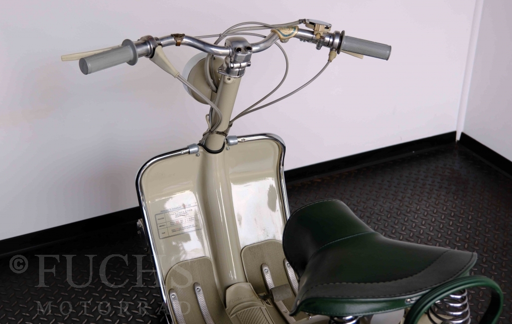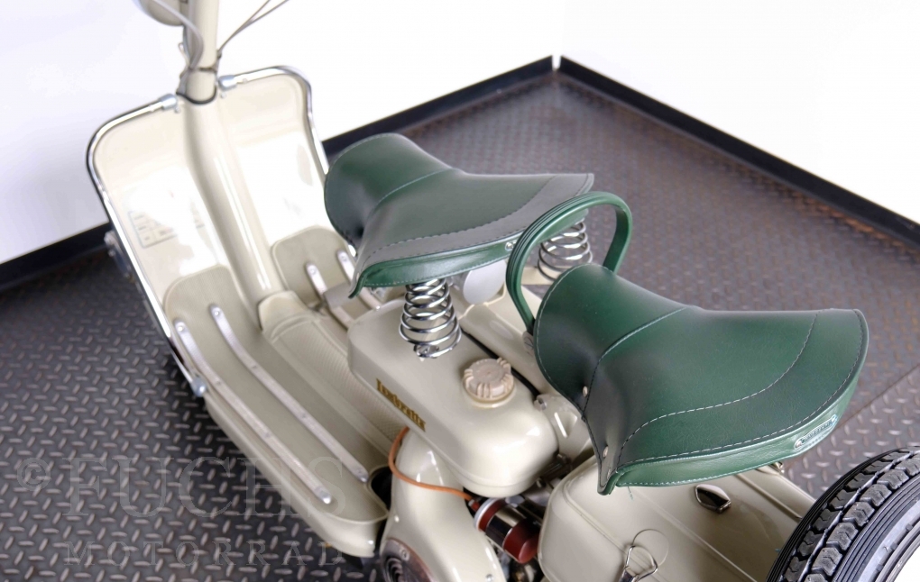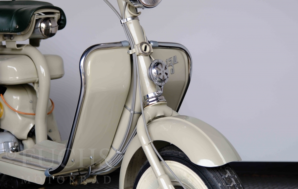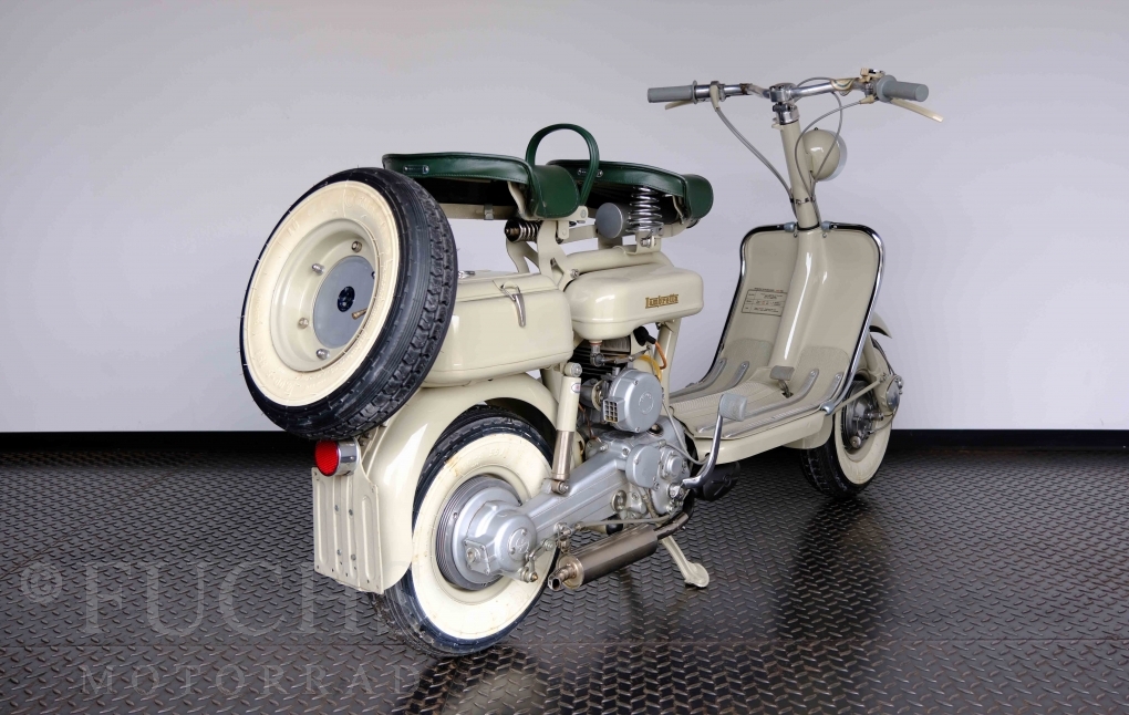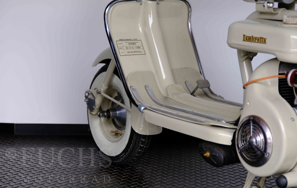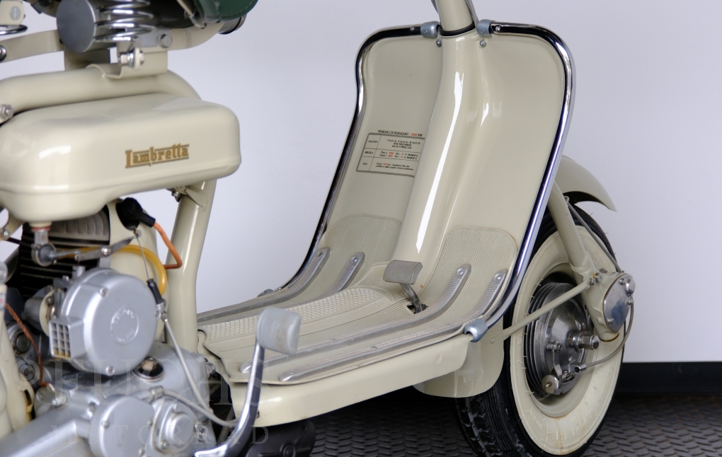 Die 150 D MK2 wurde als sparsame Version entwickelt. Aus heutiger Sicht ist gerade diese Lambretta sehr attraktiv. Ferdinando Innocenti lebte 1891 bis 1966. Ihm ist es gelungen ein Motorroller Imperium aufzubauen. Lizenzen für Produktionsstätten wurden weltweit vergeben. In Italien wurde die Herstellung 1971 aufgegeben. Unsere Lambretta 150 D MK2 stammt noch aus den frühen Jahren und ist in einem sehr schönen Zustand. Dank einer fachmännischen Restaurierung freuen wir uns, dass wir diese Lambretta präsentieren dürfen.