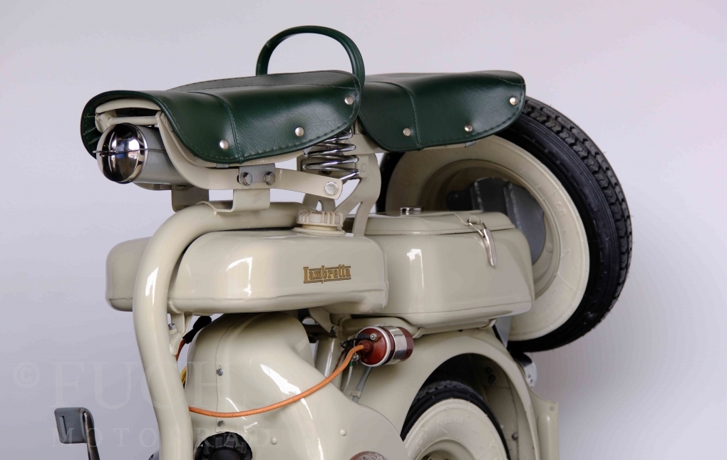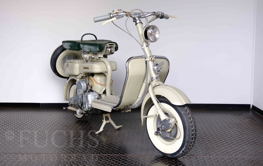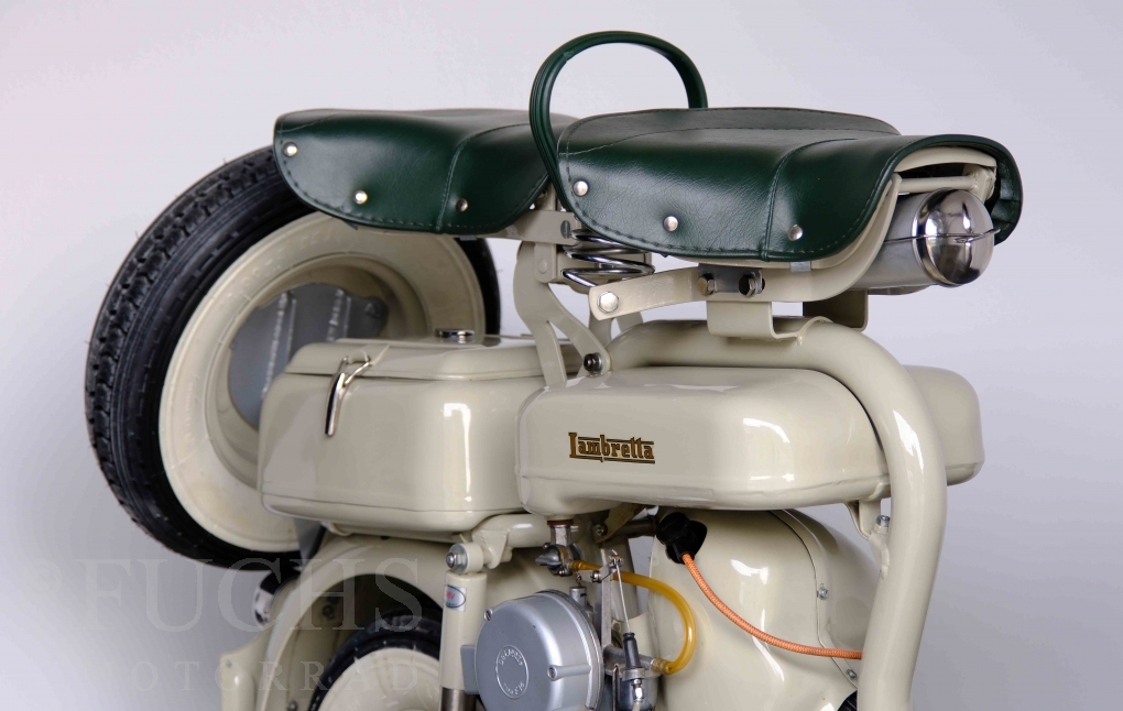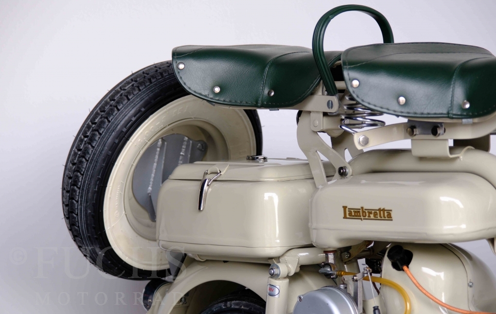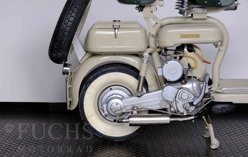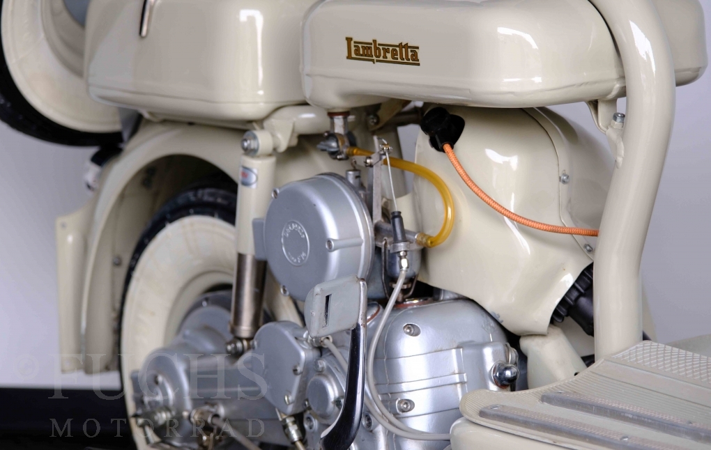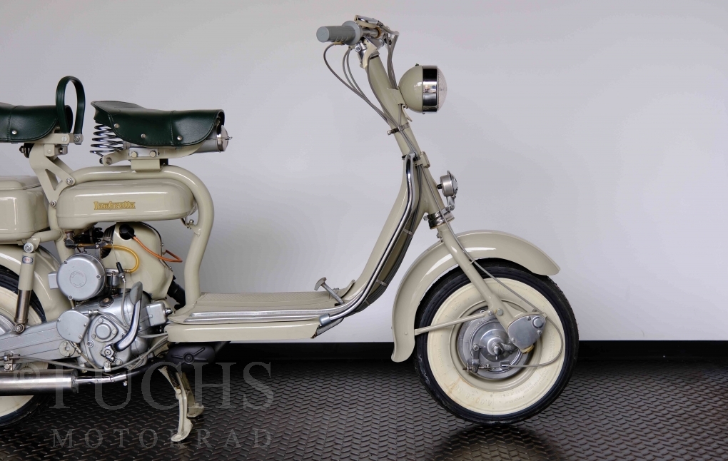 Die 150 D MK2 wurde als sparsame Version entwickelt. Aus heutiger Sicht ist gerade diese Lambretta sehr attraktiv. Ferdinando Innocenti lebte 1891 bis 1966. Ihm ist es gelungen ein Motorroller Imperium aufzubauen. Lizenzen für Produktionsstätten wurden weltweit vergeben. In Italien wurde die Herstellung 1971 aufgegeben. Unsere Lambretta 150 D MK2 stammt noch aus den frühen Jahren und ist in einem sehr schönen Zustand. Dank einer fachmännischen Restaurierung freuen wir uns, dass wir diese Lambretta präsentieren dürfen.