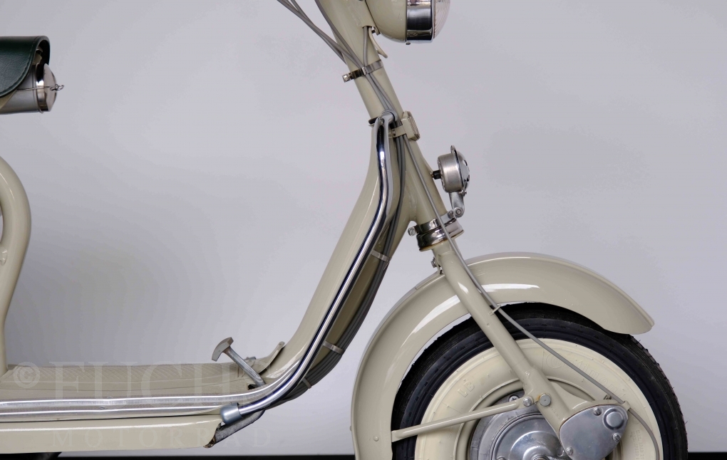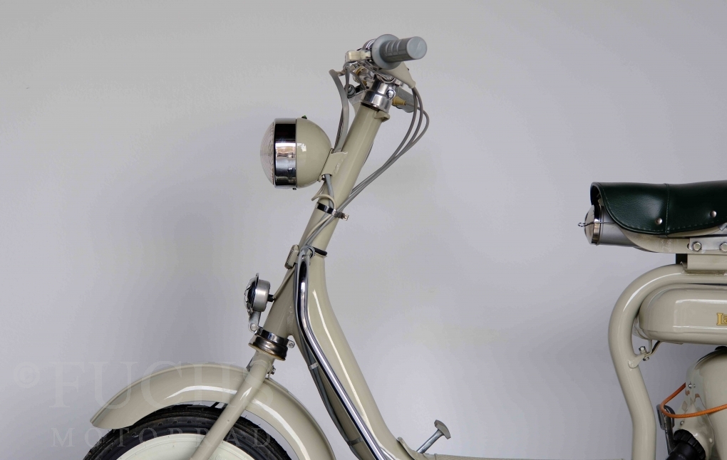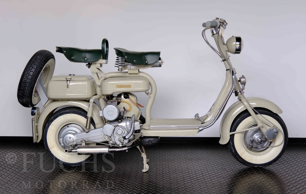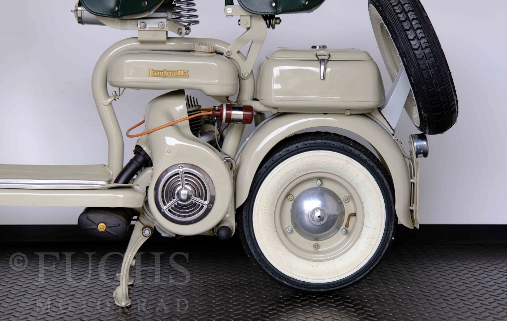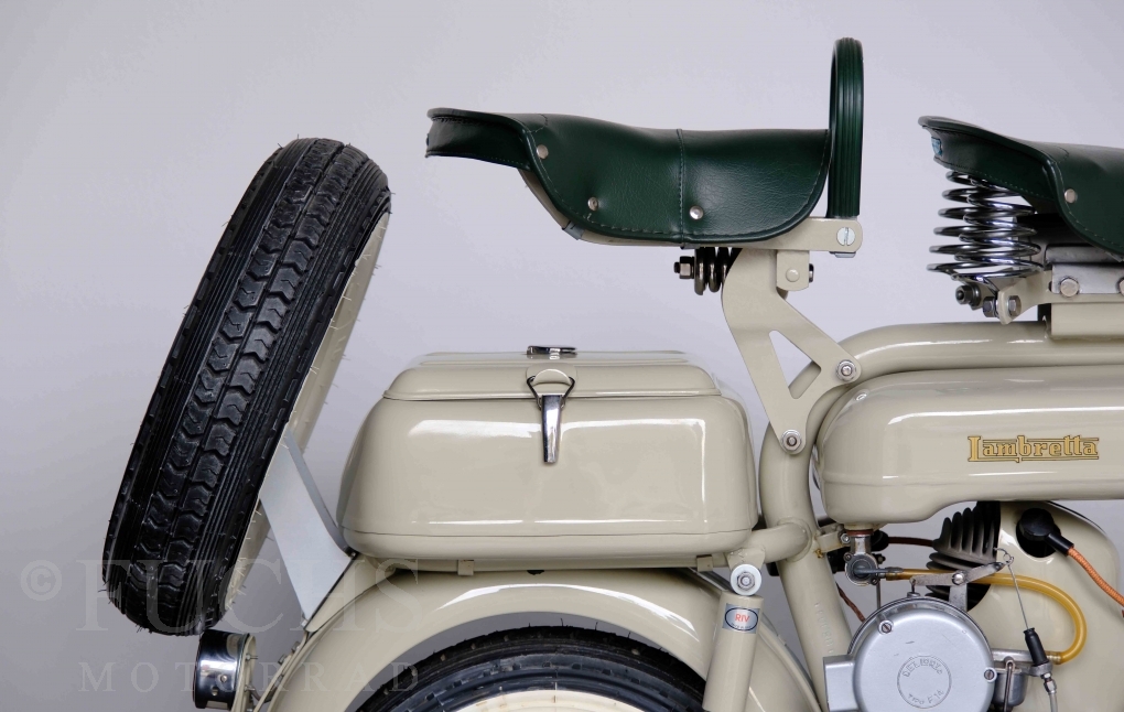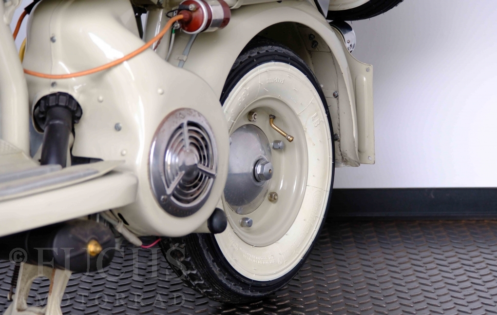 Die 150 D MK2 wurde als sparsame Version entwickelt. Aus heutiger Sicht ist gerade diese Lambretta sehr attraktiv. Ferdinando Innocenti lebte 1891 bis 1966. Ihm ist es gelungen ein Motorroller Imperium aufzubauen. Lizenzen für Produktionsstätten wurden weltweit vergeben. In Italien wurde die Herstellung 1971 aufgegeben. Unsere Lambretta 150 D MK2 stammt noch aus den frühen Jahren und ist in einem sehr schönen Zustand. Dank einer fachmännischen Restaurierung freuen wir uns, dass wir diese Lambretta präsentieren dürfen.