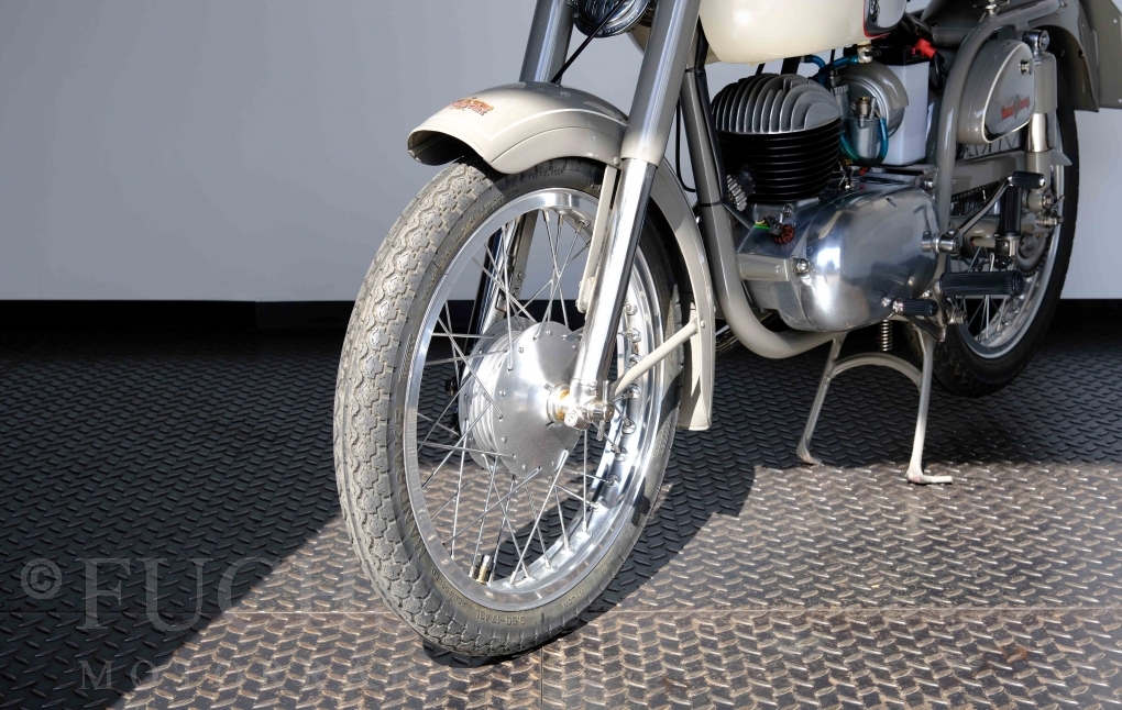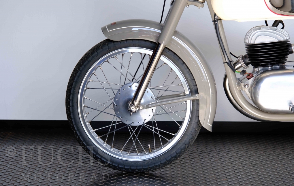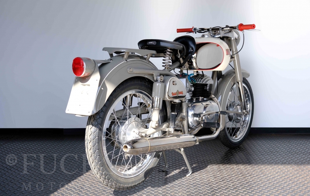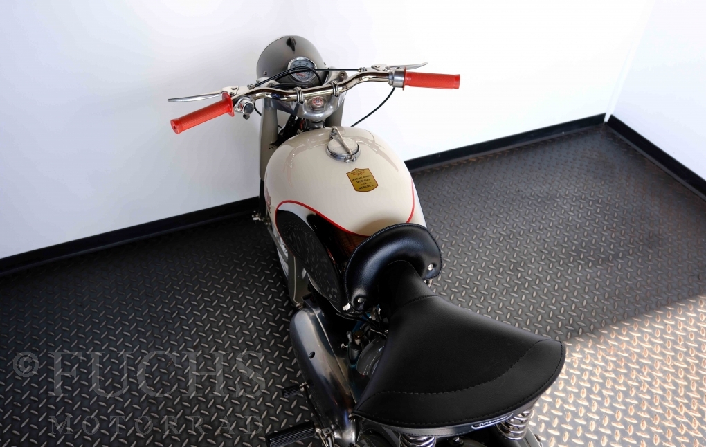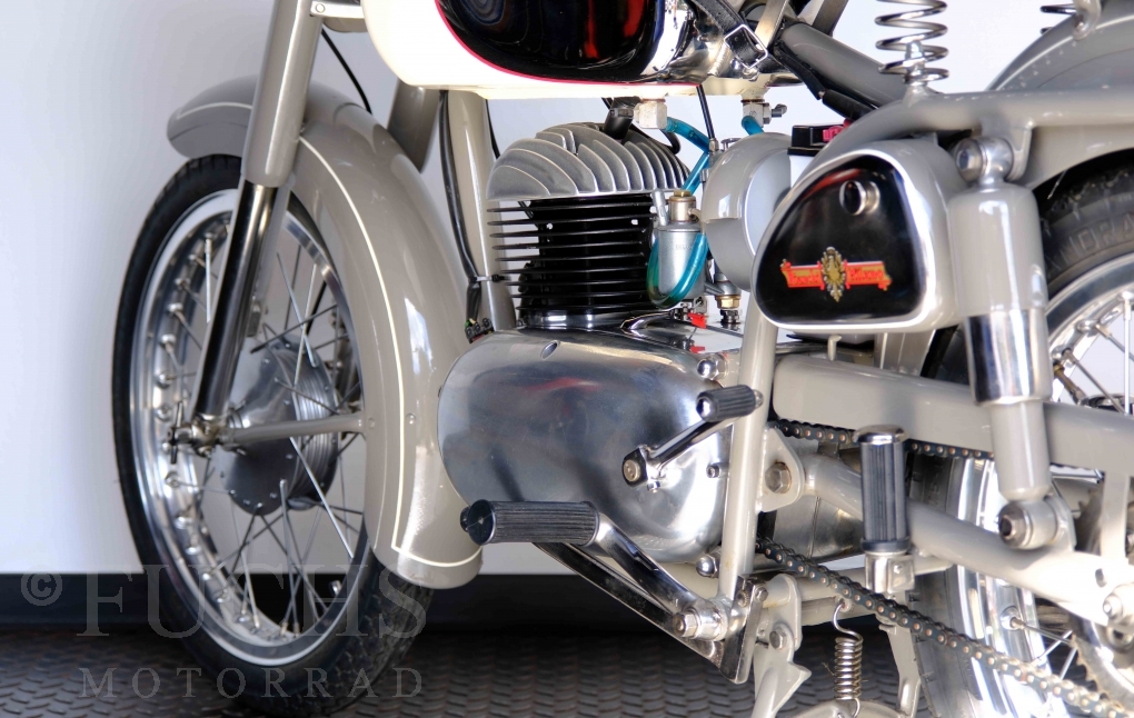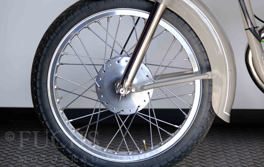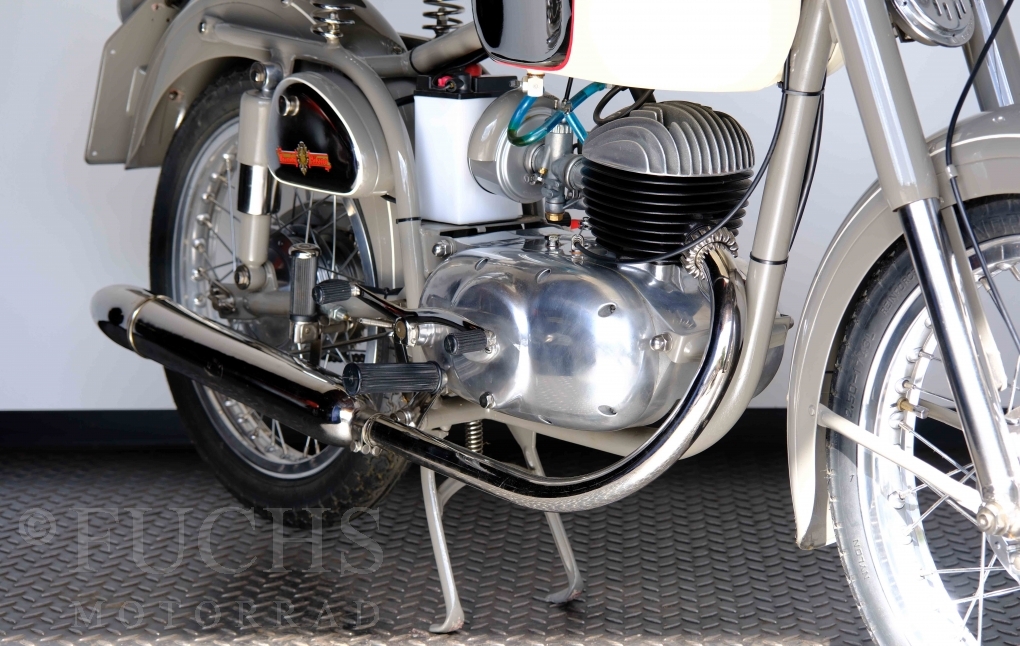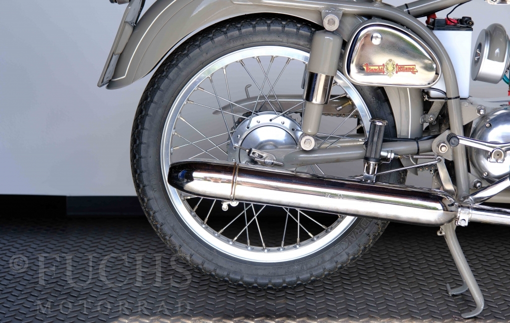 Edoardo Bianchi hat 1897 das erste Motorrad gebaut. Der in Mailand bestehende Betrieb hat sich in den folgenden Jahren zu einem innvoativen Unternehmen entwickelt, dass im Rennsport erfolgreich war und parallel die Fertigung von Straßenmaschinen ständig weiterentwickelt hat. Ende der 50er Jahre zeichnete sich ab, dass für die Bianchi Werke keine Zukunft mehr besteht. Unsere Bianchi Mendola stammt aus den frühen 50er Jahren als die Welt für das Unternehmen noch in Ordnung war.