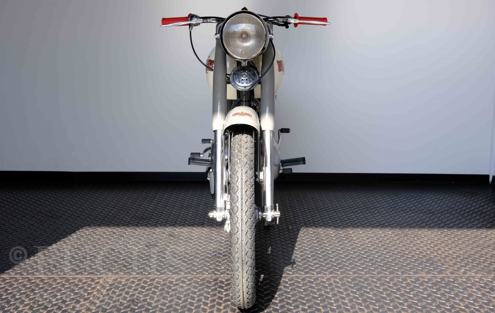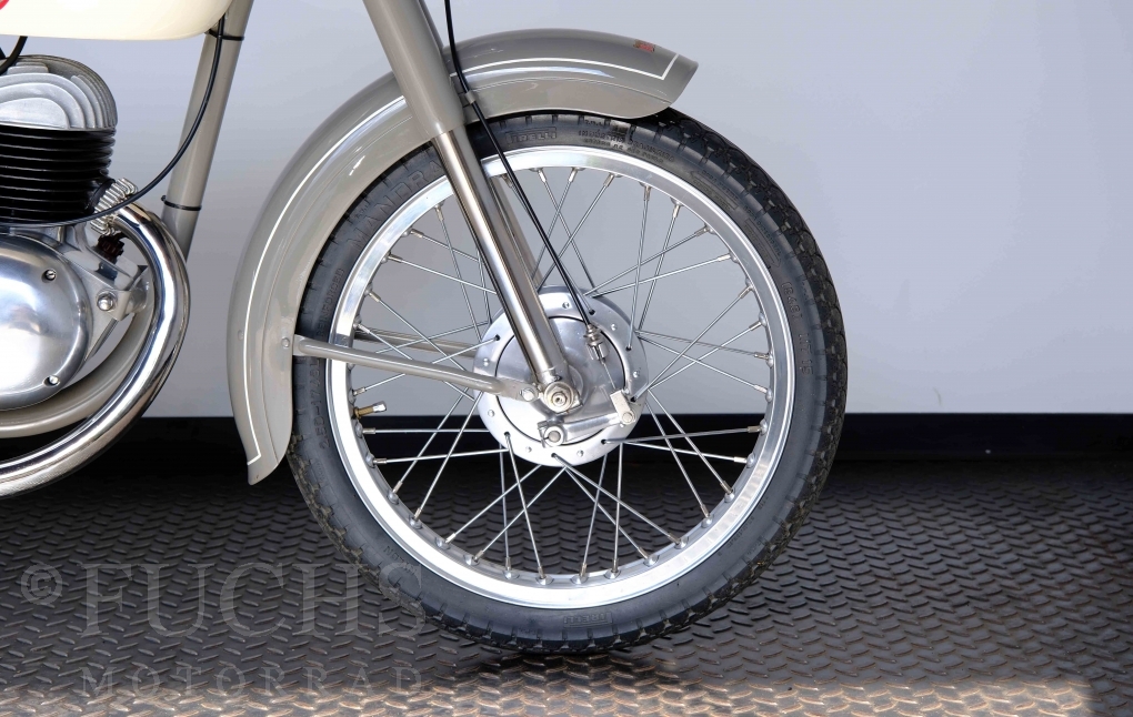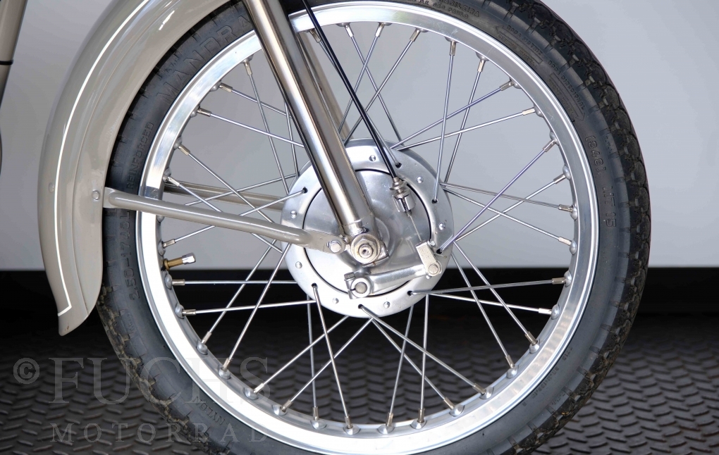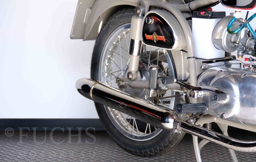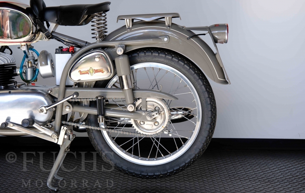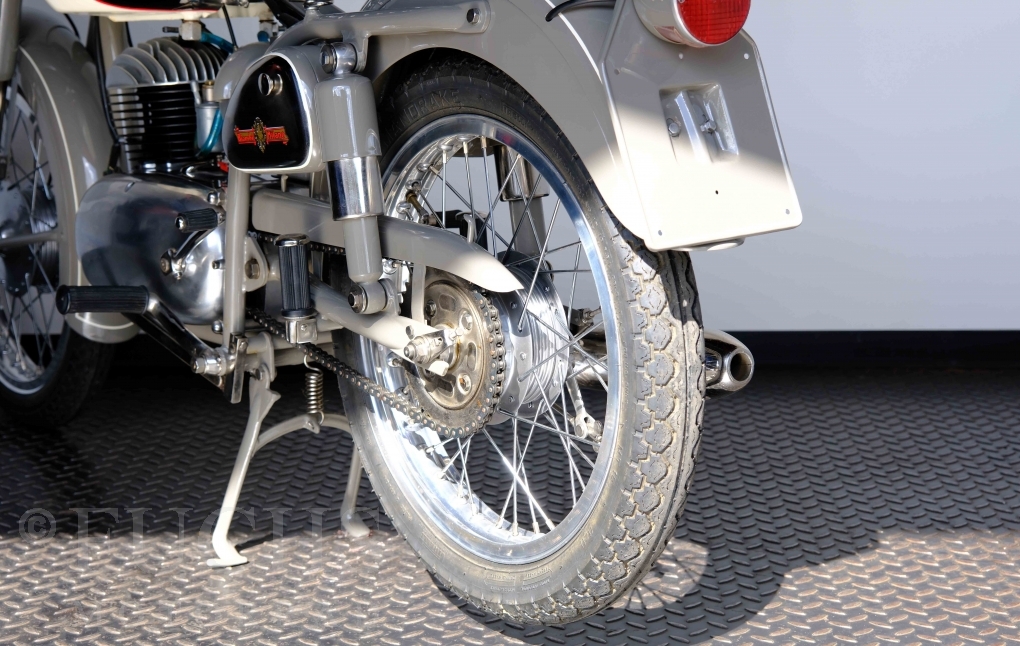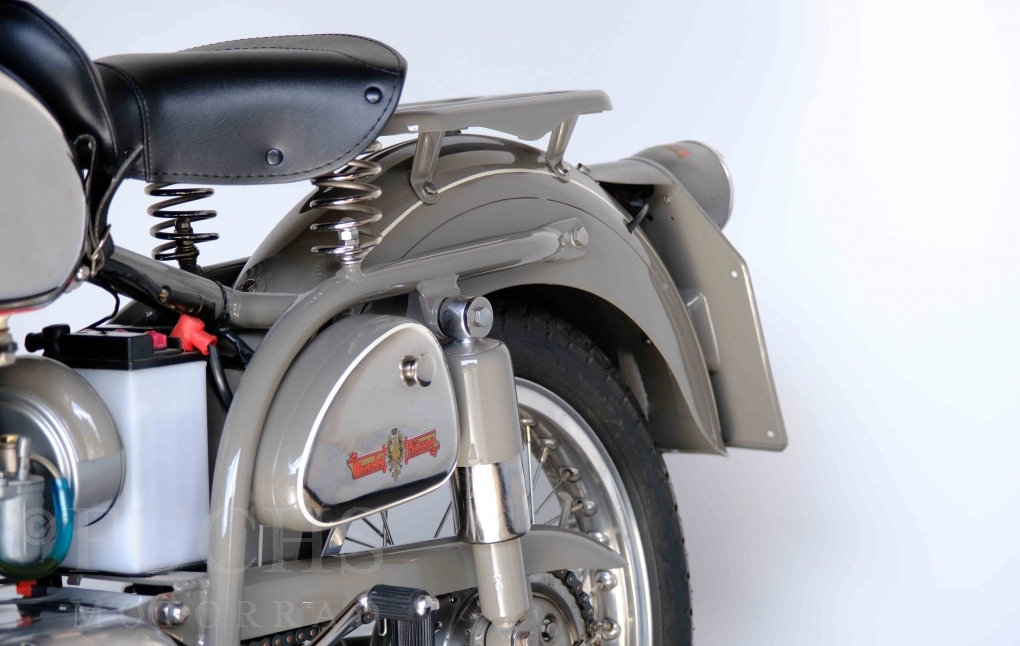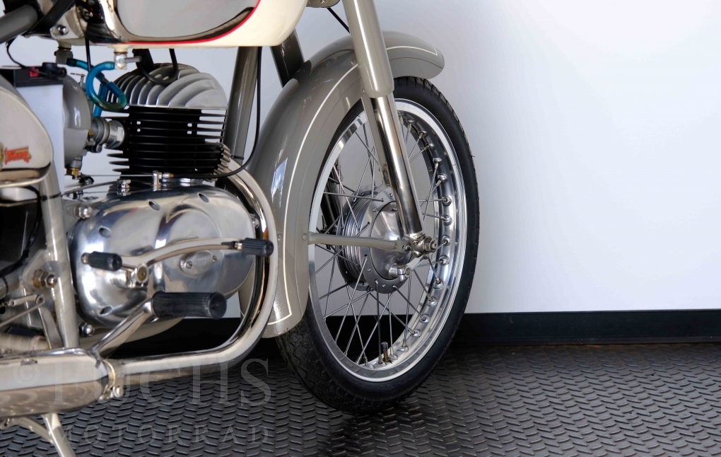 Edoardo Bianchi hat 1897 das erste Motorrad gebaut. Der in Mailand bestehende Betrieb hat sich in den folgenden Jahren zu einem innvoativen Unternehmen entwickelt, dass im Rennsport erfolgreich war und parallel die Fertigung von Straßenmaschinen ständig weiterentwickelt hat. Ende der 50er Jahre zeichnete sich ab, dass für die Bianchi Werke keine Zukunft mehr besteht. Unsere Bianchi Mendola stammt aus den frühen 50er Jahren als die Welt für das Unternehmen noch in Ordnung war.