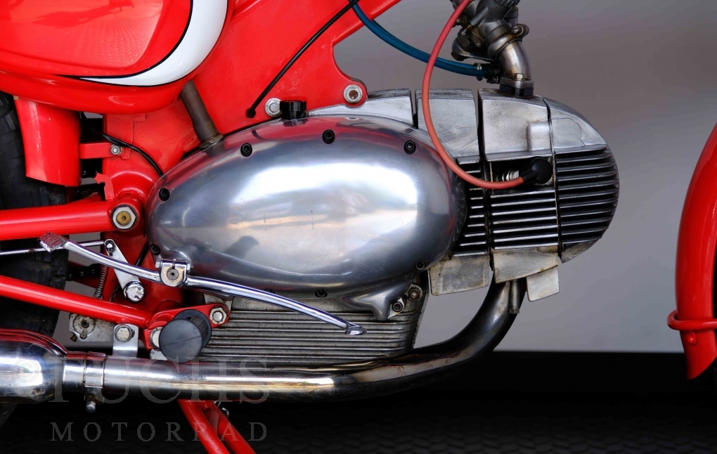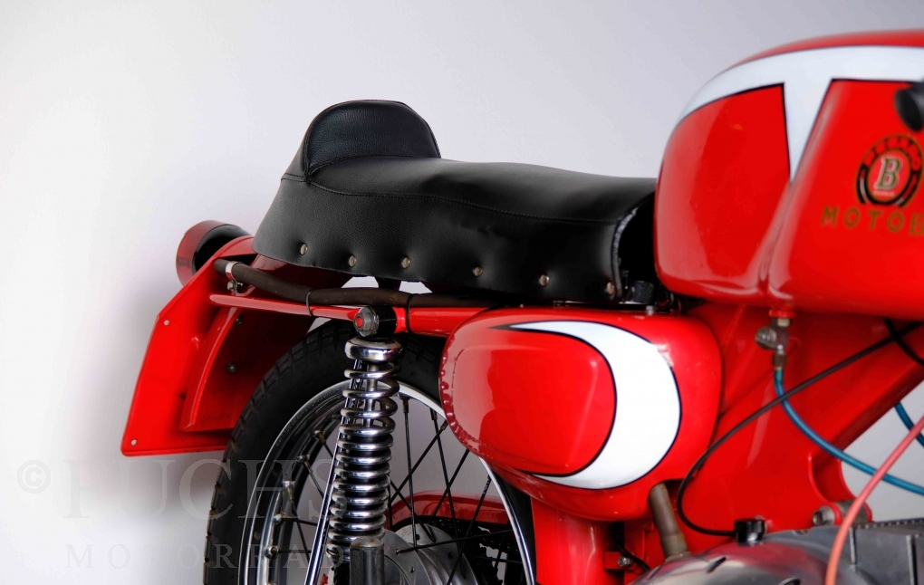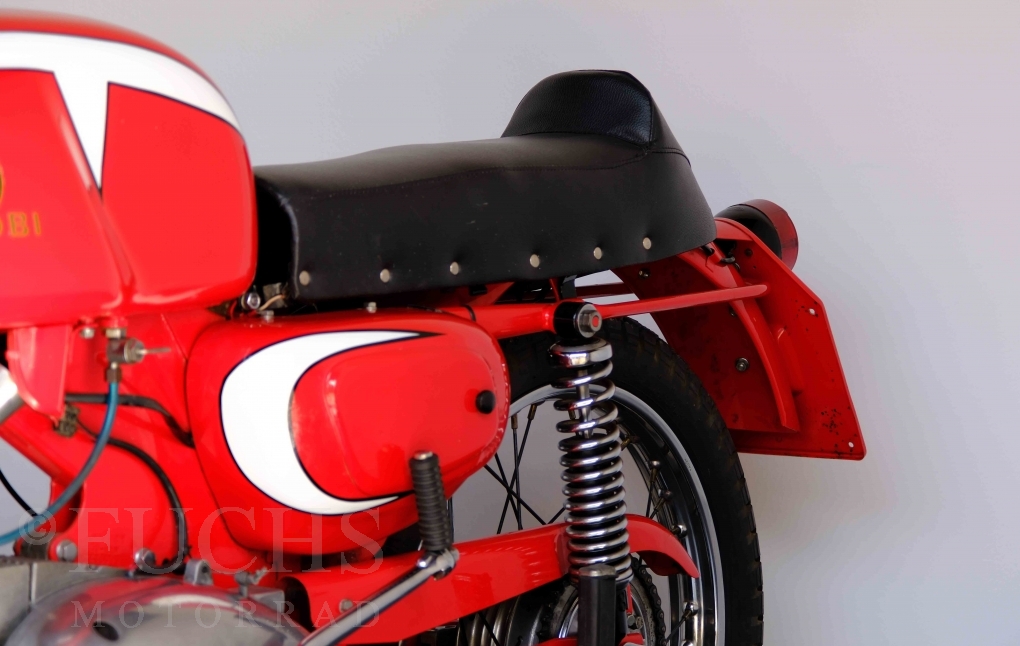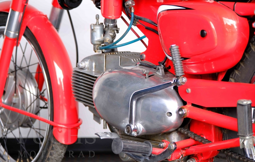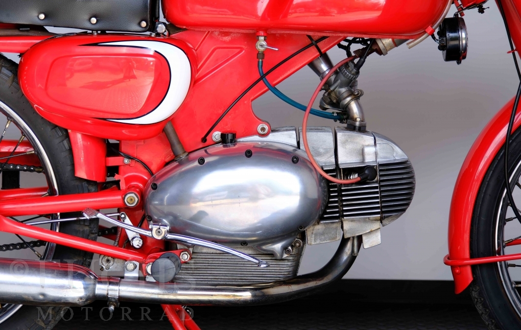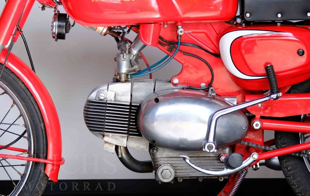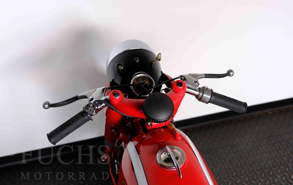 Bei 6 Brüdern innerhalb der Benelli Familie ist nachvollziehbar, dass es zu Konflikten kommt. Folglich hat Giuseppe Benelli sein eigenes Unternehmen im Jahr 1950 gegründet. Zunächst wurden Motoren mit 98 ccm und 115 ccm entwickelt. Bereits bei diesen frühen Motoren war der liegende Zylinder das Konstruktionsmerkmal. Giuseppe Benelli verstarb 1957 und seine Söhne Luigi und Marco übernahmen den Betrieb. Es zeichnetet sich Anfang der 60er Jahre ab, dass die wirtschaftliche Lage des Unternehmens schwierig wurde. Der Schlußpunkt war die Integration der Motobi-Benelli Fabrik in die damalige de Tomaso Firmengruppe. Die Entwicklung unserer Imperial geht auf das Jahr 1956 zurück. Unsere Imperiale ist in einem sehr schönen Zustand und läuft einwandfrei.