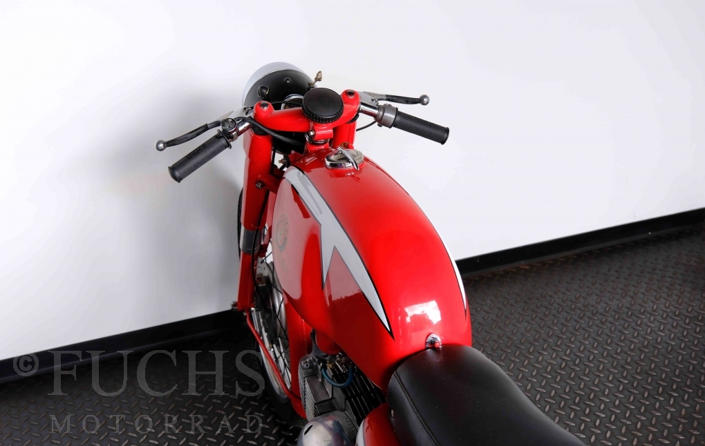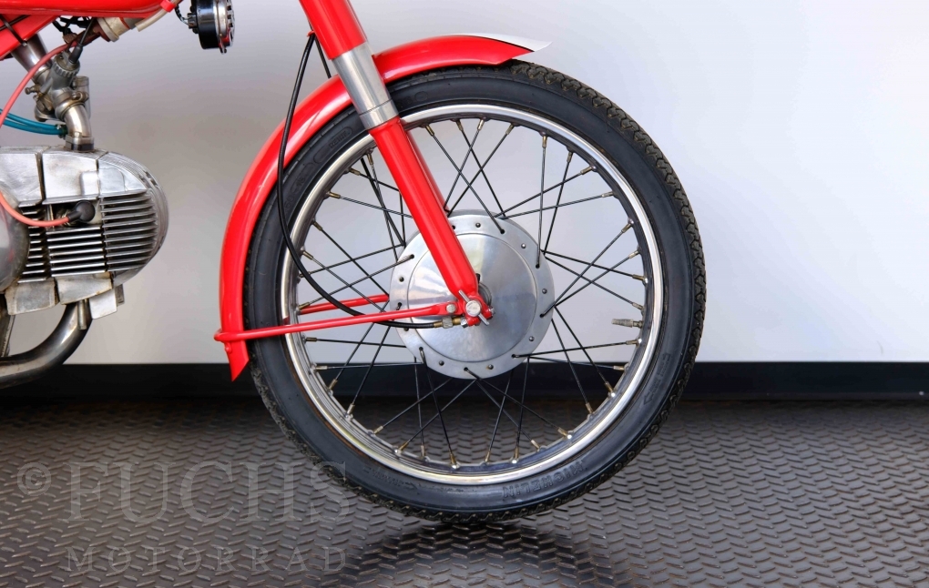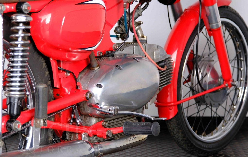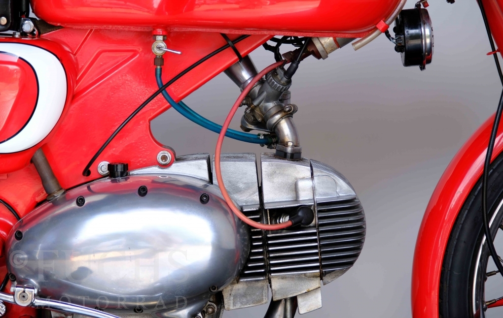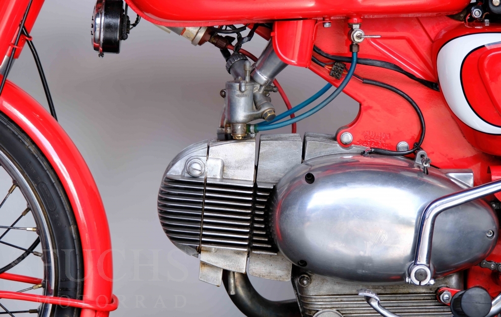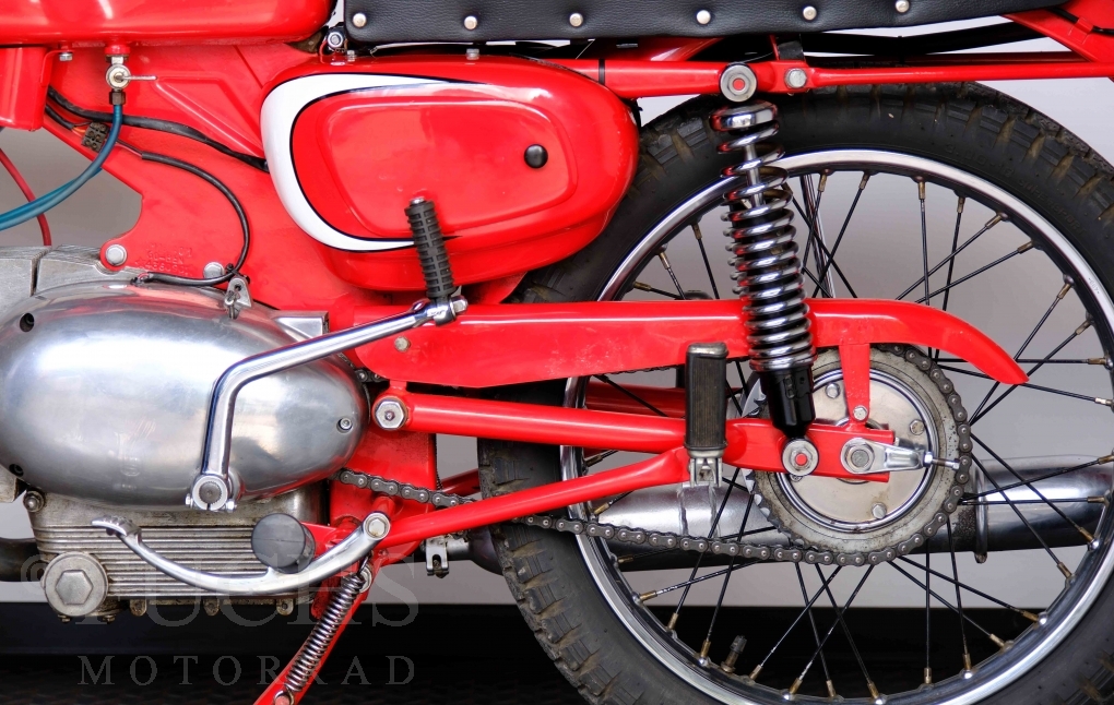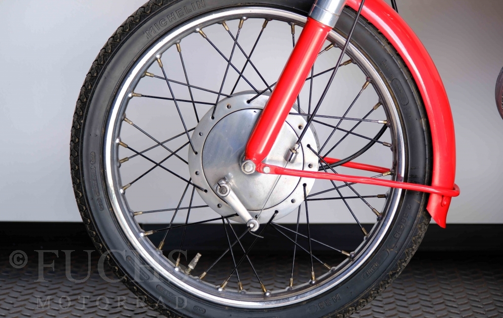 Bei 6 Brüdern innerhalb der Benelli Familie ist nachvollziehbar, dass es zu Konflikten kommt. Folglich hat Giuseppe Benelli sein eigenes Unternehmen im Jahr 1950 gegründet. Zunächst wurden Motoren mit 98 ccm und 115 ccm entwickelt. Bereits bei diesen frühen Motoren war der liegende Zylinder das Konstruktionsmerkmal. Giuseppe Benelli verstarb 1957 und seine Söhne Luigi und Marco übernahmen den Betrieb. Es zeichnetet sich Anfang der 60er Jahre ab, dass die wirtschaftliche Lage des Unternehmens schwierig wurde. Der Schlußpunkt war die Integration der Motobi-Benelli Fabrik in die damalige de Tomaso Firmengruppe. Die Entwicklung unserer Imperial geht auf das Jahr 1956 zurück. Unsere Imperiale ist in einem sehr schönen Zustand und läuft einwandfrei.