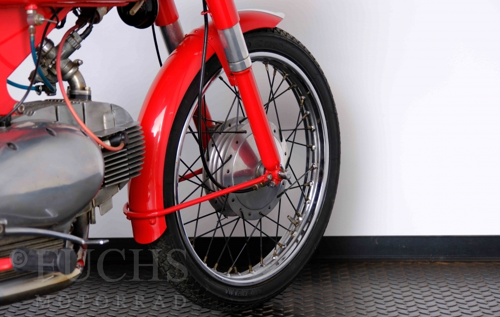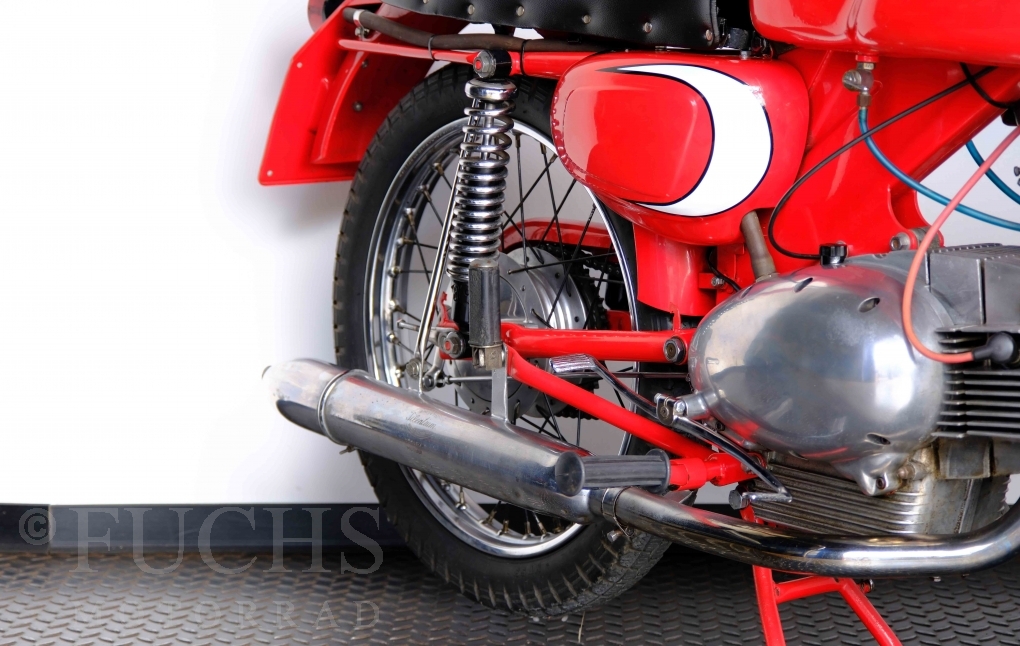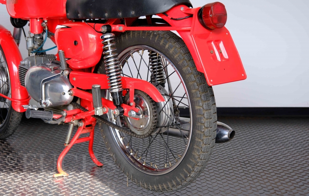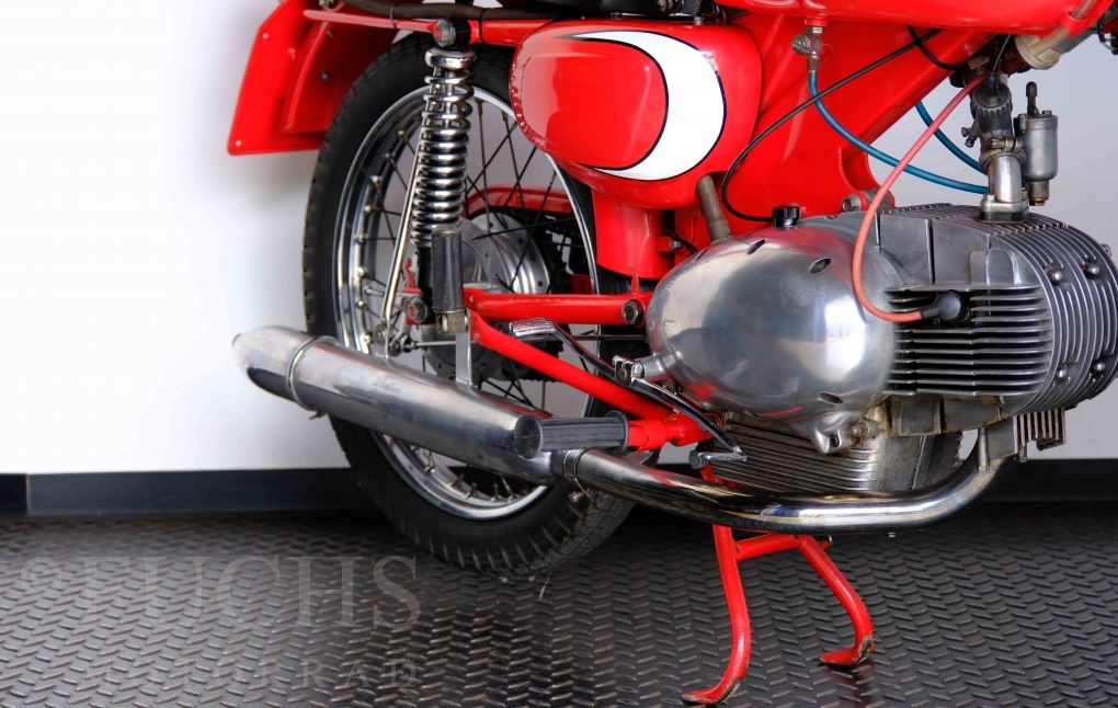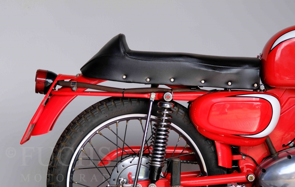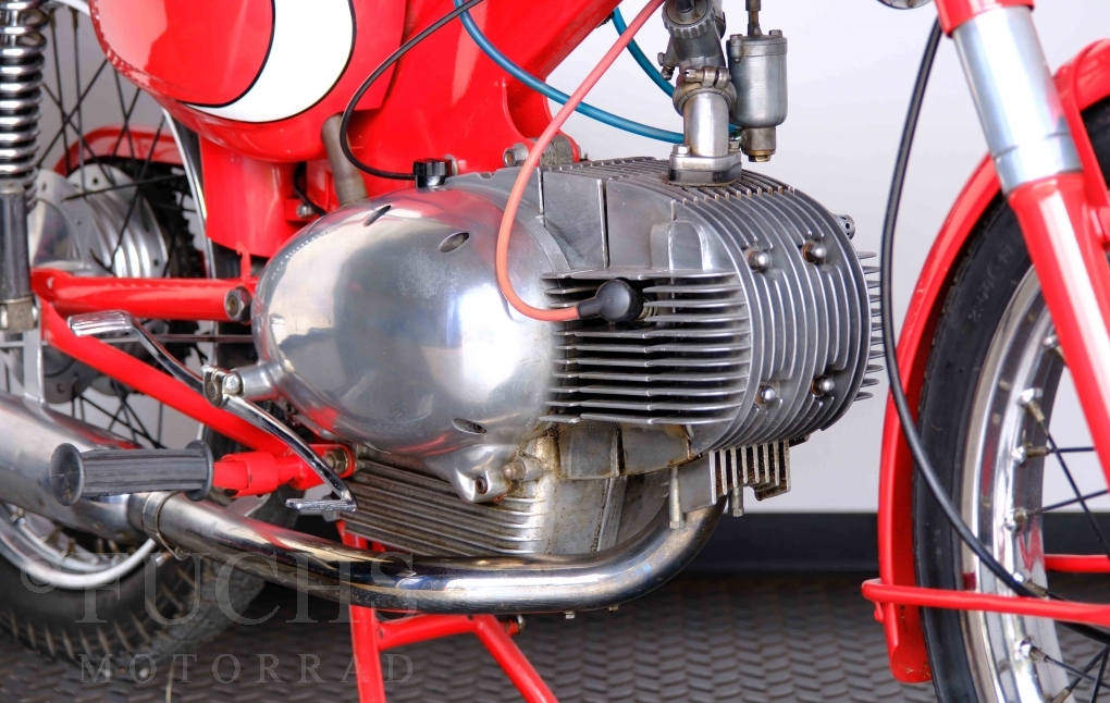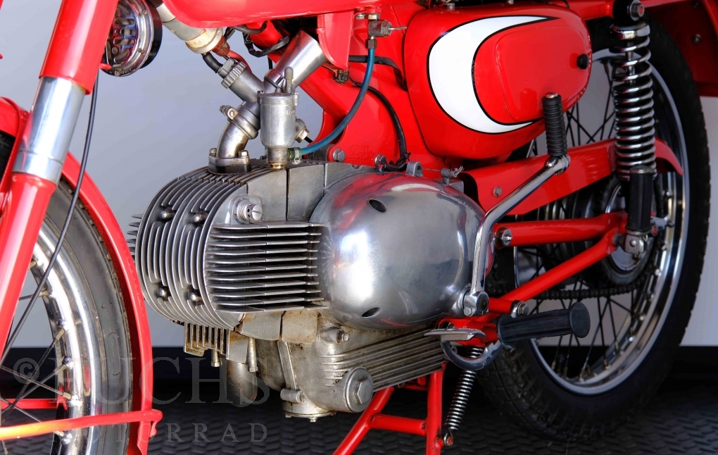 Bei 6 Brüdern innerhalb der Benelli Familie ist nachvollziehbar, dass es zu Konflikten kommt. Folglich hat Giuseppe Benelli sein eigenes Unternehmen im Jahr 1950 gegründet. Zunächst wurden Motoren mit 98 ccm und 115 ccm entwickelt. Bereits bei diesen frühen Motoren war der liegende Zylinder das Konstruktionsmerkmal. Giuseppe Benelli verstarb 1957 und seine Söhne Luigi und Marco übernahmen den Betrieb. Es zeichnetet sich Anfang der 60er Jahre ab, dass die wirtschaftliche Lage des Unternehmens schwierig wurde. Der Schlußpunkt war die Integration der Motobi-Benelli Fabrik in die damalige de Tomaso Firmengruppe. Die Entwicklung unserer Imperial geht auf das Jahr 1956 zurück. Unsere Imperiale ist in einem sehr schönen Zustand und läuft einwandfrei.