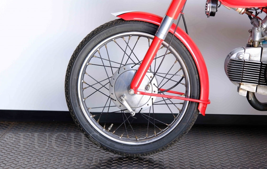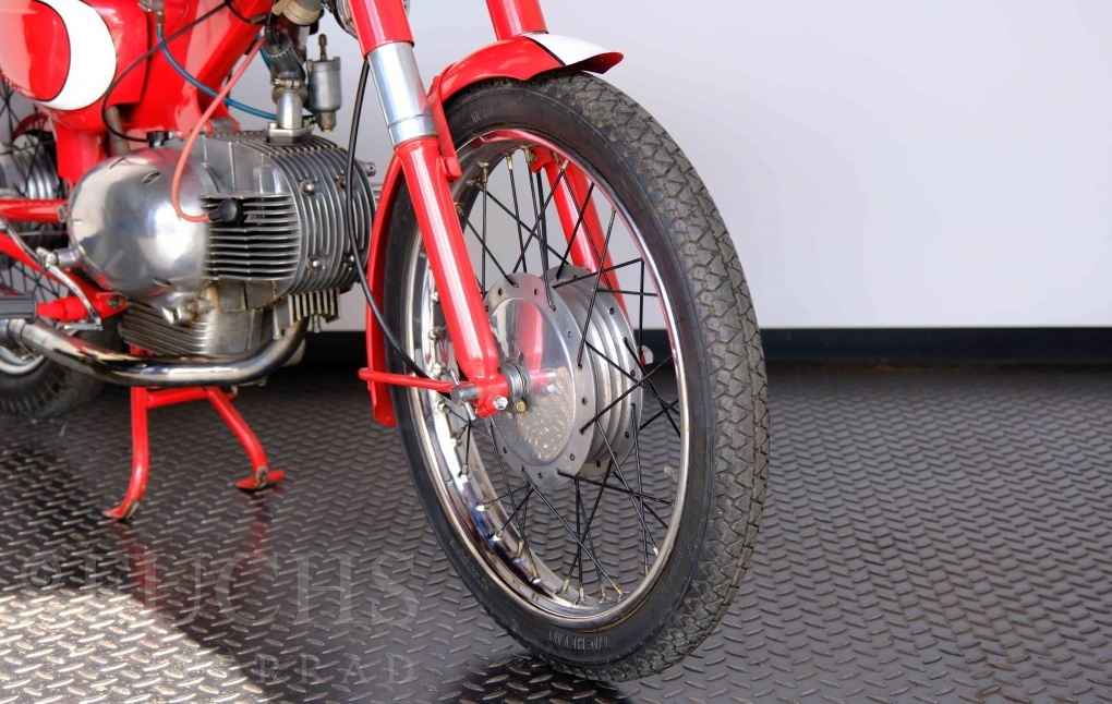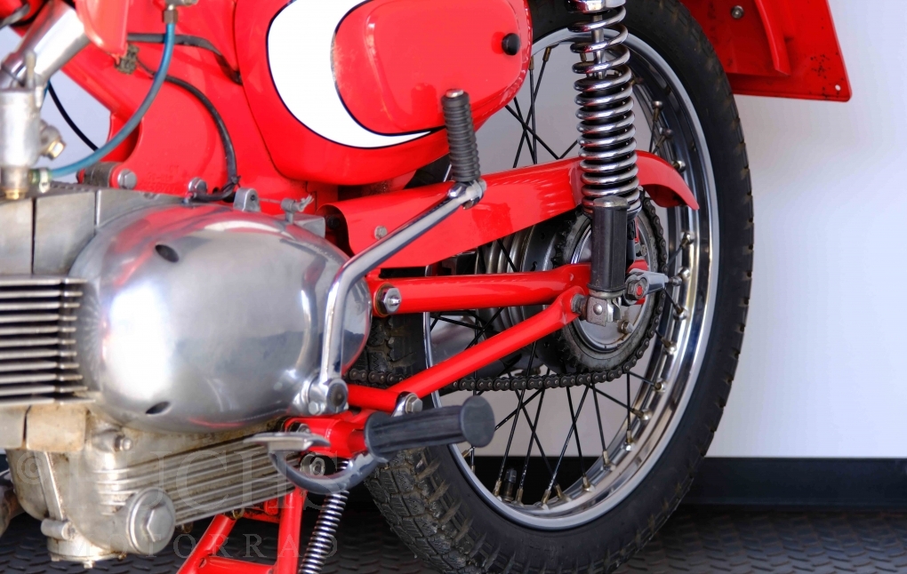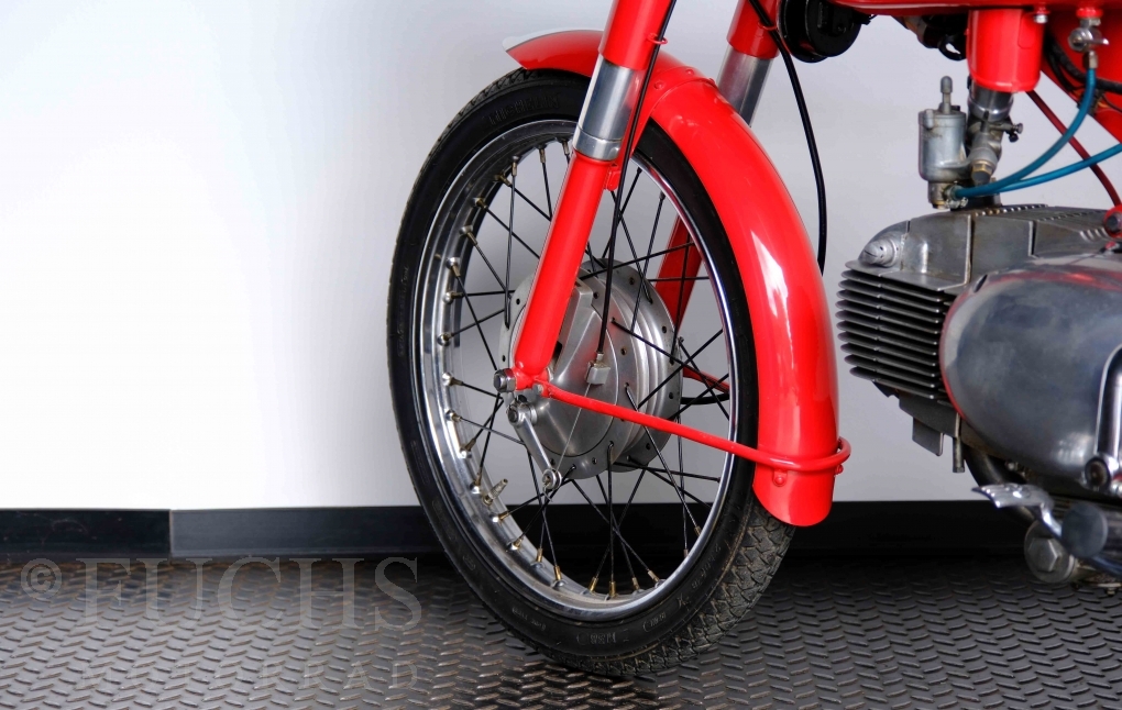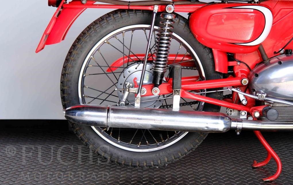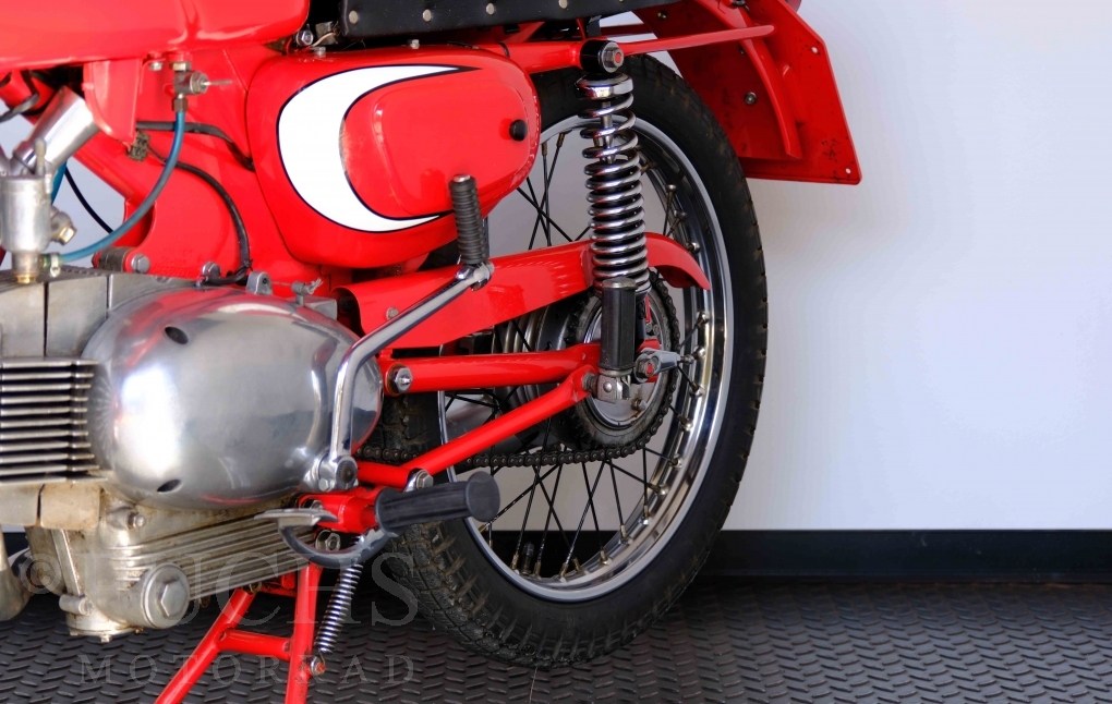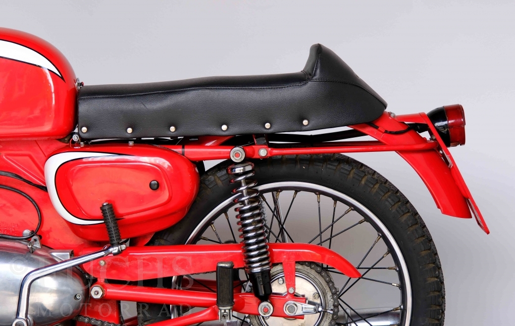 Bei 6 Brüdern innerhalb der Benelli Familie ist nachvollziehbar, dass es zu Konflikten kommt. Folglich hat Giuseppe Benelli sein eigenes Unternehmen im Jahr 1950 gegründet. Zunächst wurden Motoren mit 98 ccm und 115 ccm entwickelt. Bereits bei diesen frühen Motoren war der liegende Zylinder das Konstruktionsmerkmal. Giuseppe Benelli verstarb 1957 und seine Söhne Luigi und Marco übernahmen den Betrieb. Es zeichnetet sich Anfang der 60er Jahre ab, dass die wirtschaftliche Lage des Unternehmens schwierig wurde. Der Schlußpunkt war die Integration der Motobi-Benelli Fabrik in die damalige de Tomaso Firmengruppe. Die Entwicklung unserer Imperial geht auf das Jahr 1956 zurück. Unsere Imperiale ist in einem sehr schönen Zustand und läuft einwandfrei.