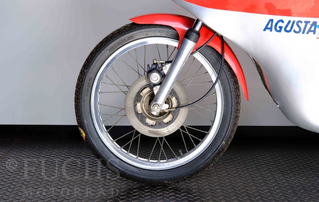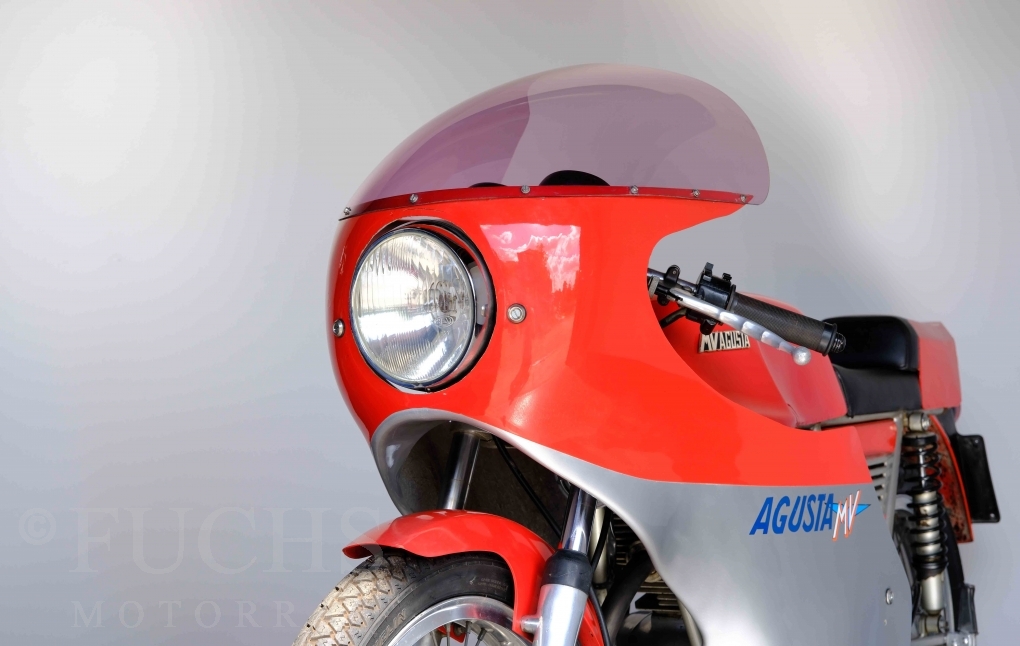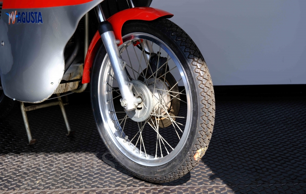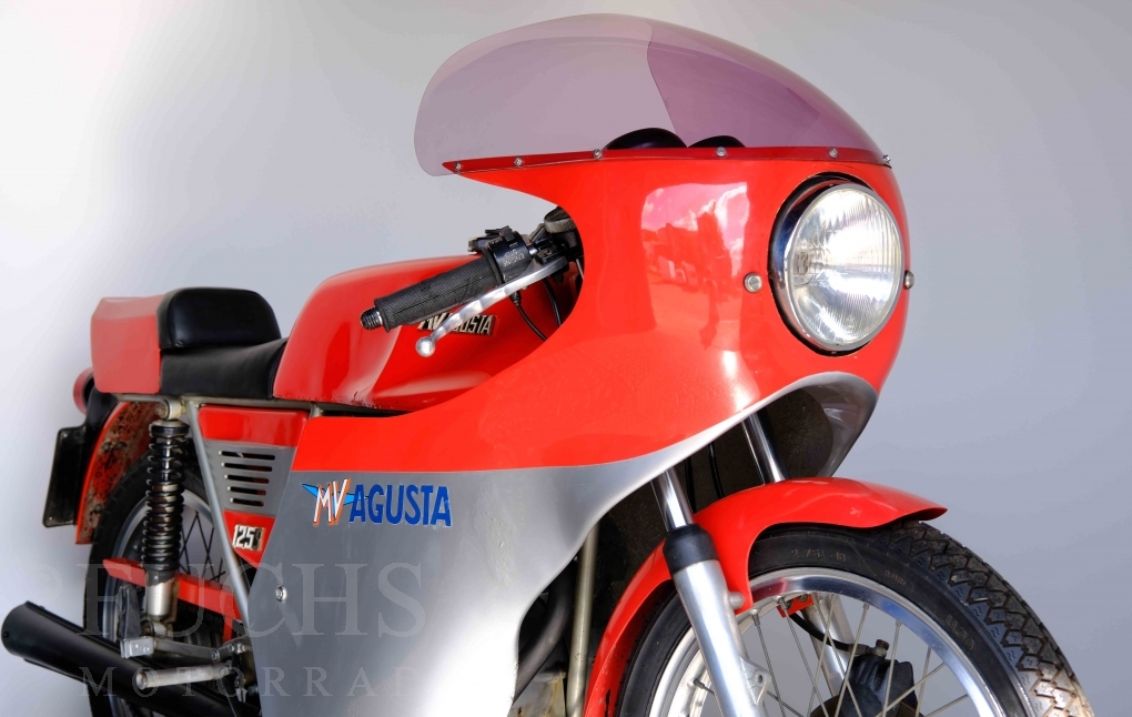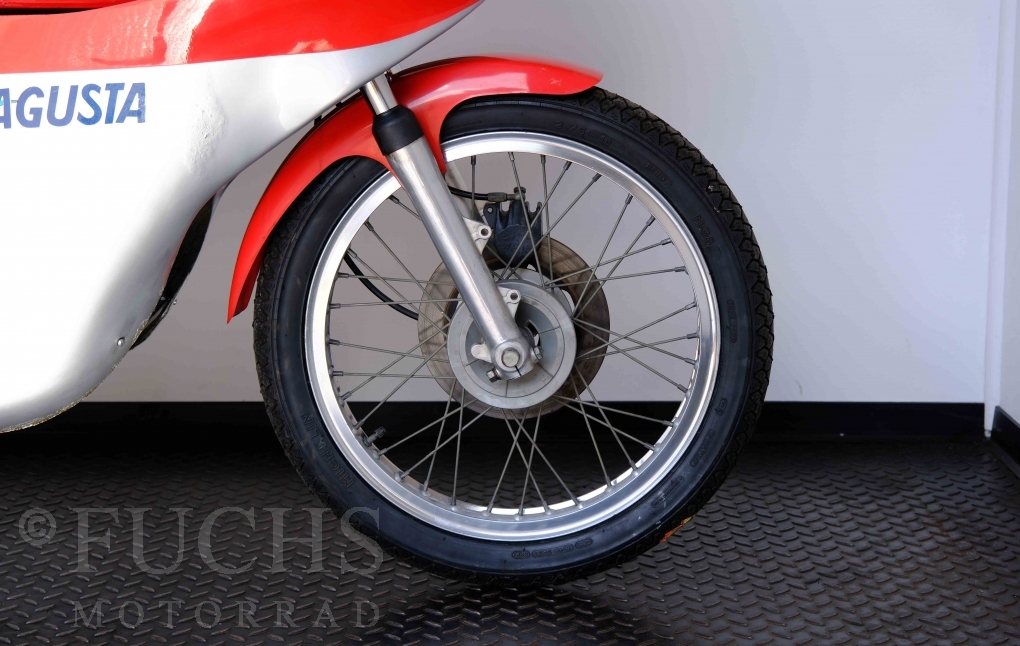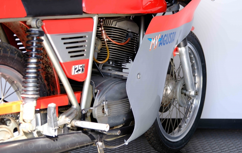 Zu den Glanzzeiten von Giacomo Agostini ist auch die Sport entstanden. Ein Einstiegsmodell, dass die Produktpallette abrunden sollte. Aber die strategische Ausrichtung des Kleinserienherstellers hat die Offensive der japanische Konkurrenz unterschätzt oder ignoriert. Heute sind gut erhaltenen Motorräder der Marke MV AGUSTA begehrte Sammlerstücke, da nur geringe Stückzahlen produziert wurden. Unser Sport ist in einem sehr schönen Zustand und originalen Zustand, da die Restaurierung mit Sachverstand gemacht wurde. Zu den technischen Fakten zählt ein 5-Gang Getriebe, 1-Zylinder 4-Takt Motor, 18 Zoll Räder und ein Gewicht von rund 100 kg.