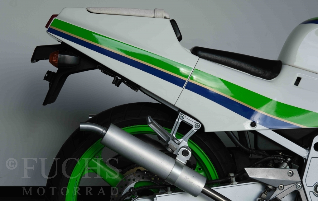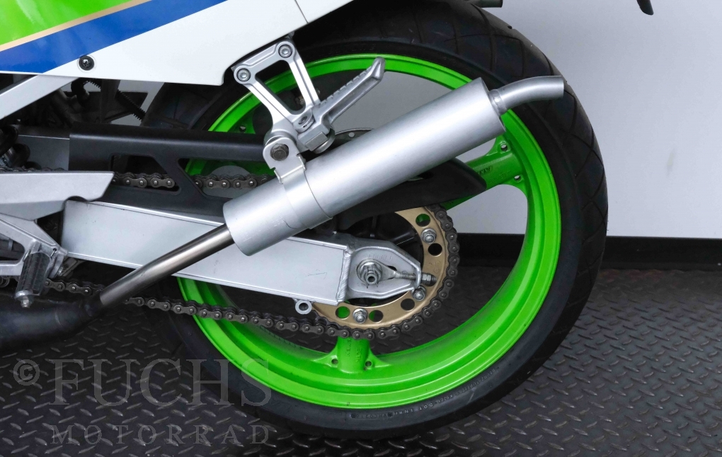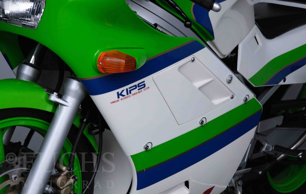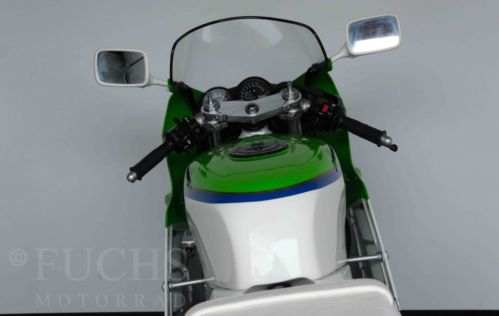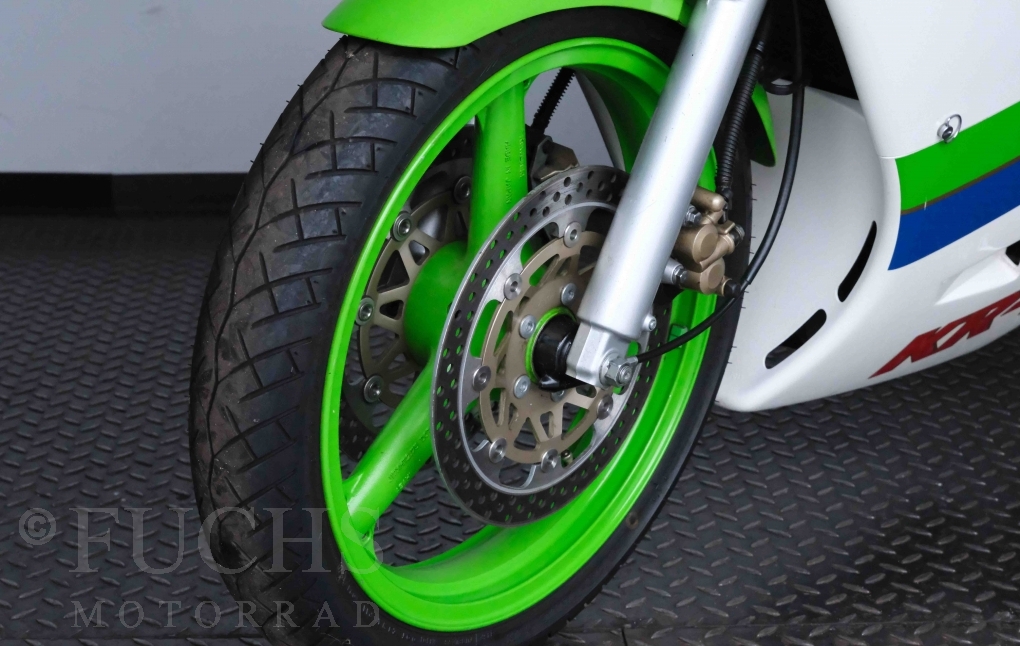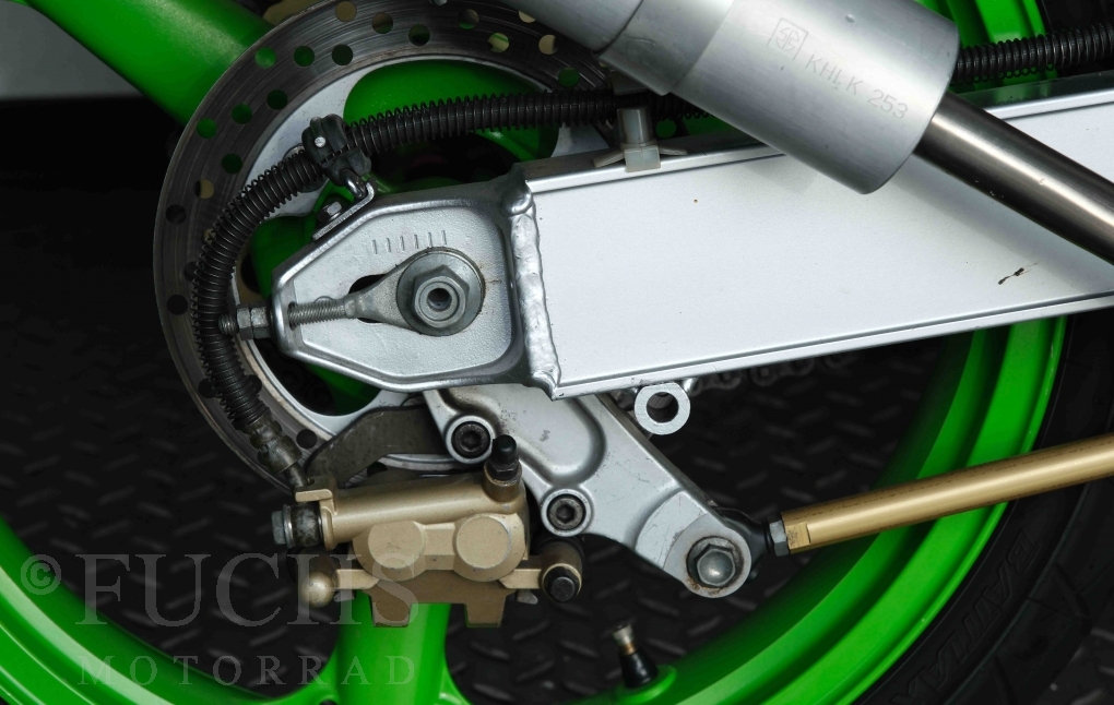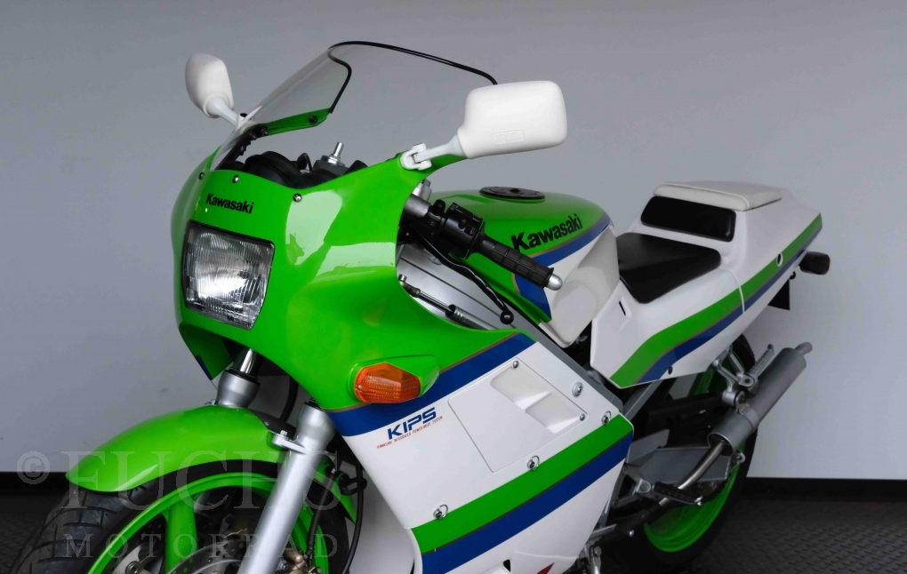 Bei unserer KR-1 handelt sich um eine B2 aus dem Modelljahr 1989. Im deutschen Markt wurde die KR-1 nicht über das Händlernetz angeboten und so blieb der Zweitakter bis heute in Deutschland eine Seltenheit. Die B2 hat bereits den Motor mit K.I.P.S (Kawasaki Integrated Powervalve System). Die Steuerung verhilft dem Motor zu einem optimalen Drehmomentverlauf. In Verbindung mit dem E-Box frame und einem Gewicht von 140 Kg ist der Fahrspaß garantiert. Unsere KR-1 ist in einem sehr guten Zustand und mit Schalldämpfern der KR-1S ausgerüstet.