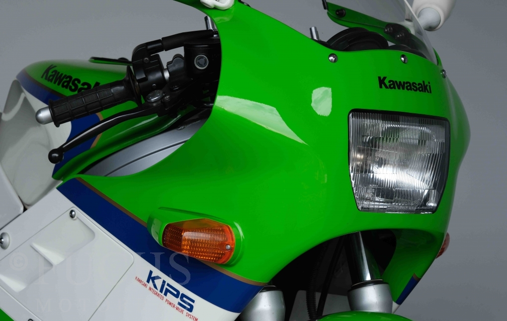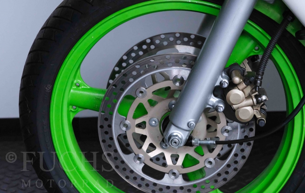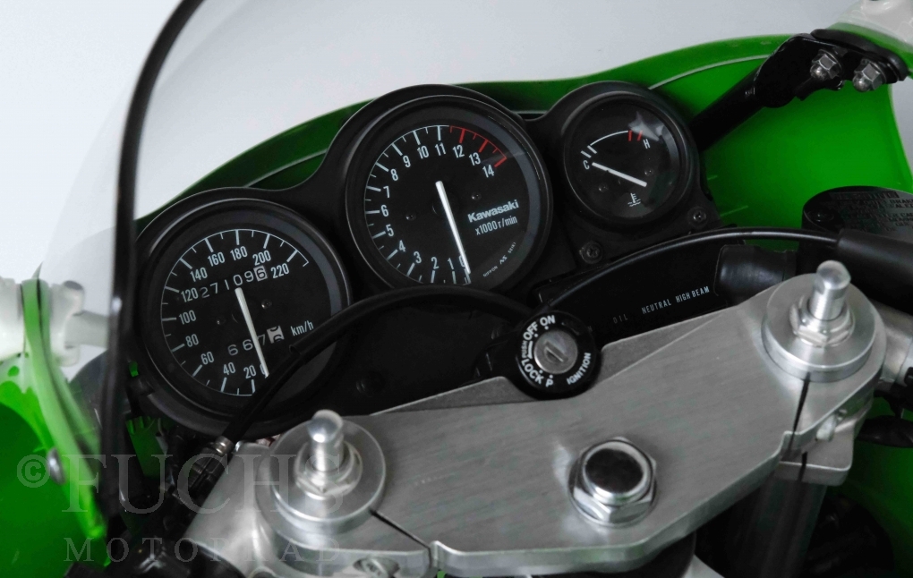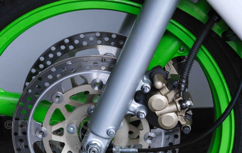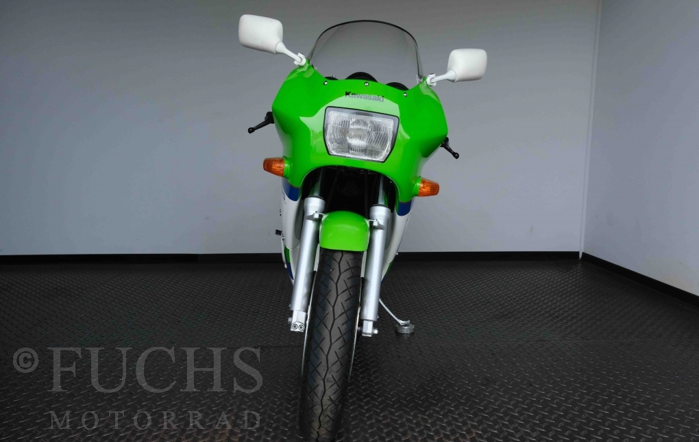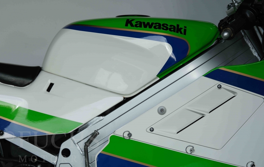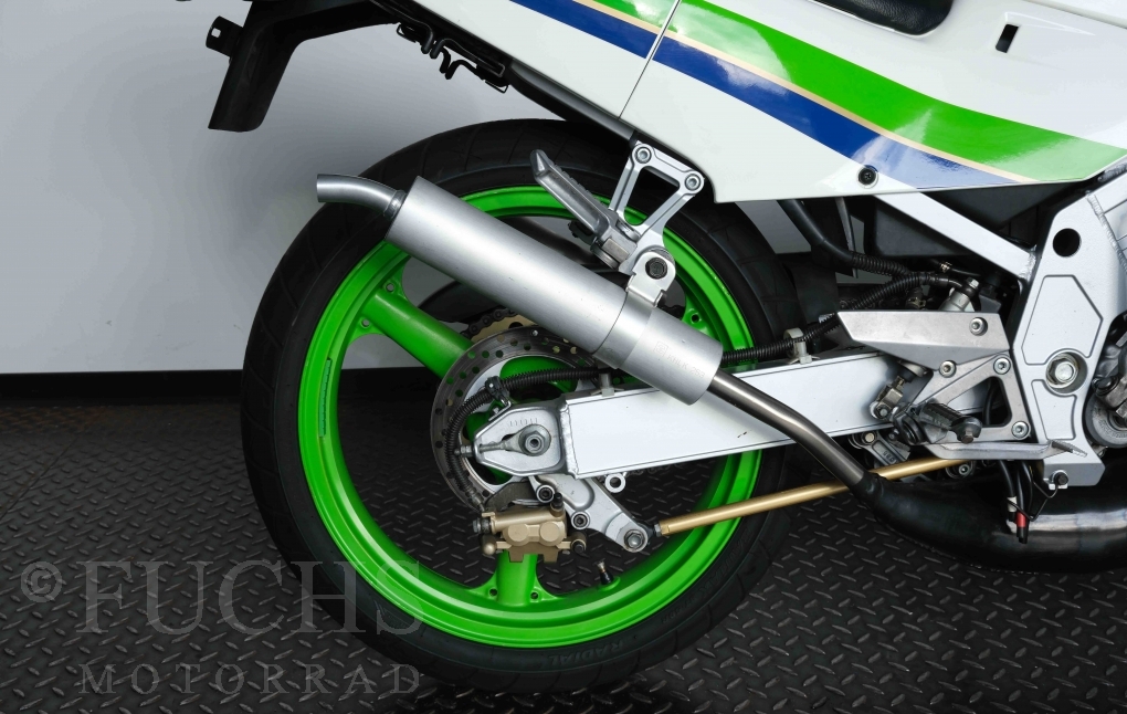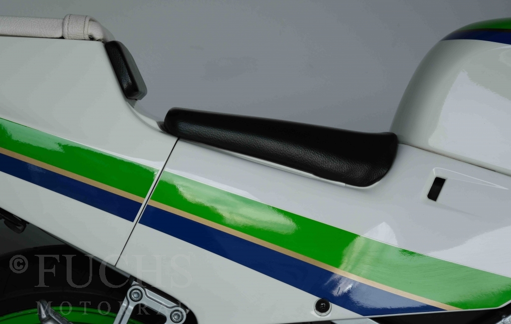 Bei unserer KR-1 handelt sich um eine B2 aus dem Modelljahr 1989. Im deutschen Markt wurde die KR-1 nicht über das Händlernetz angeboten und so blieb der Zweitakter bis heute in Deutschland eine Seltenheit. Die B2 hat bereits den Motor mit K.I.P.S (Kawasaki Integrated Powervalve System). Die Steuerung verhilft dem Motor zu einem optimalen Drehmomentverlauf. In Verbindung mit dem E-Box frame und einem Gewicht von 140 Kg ist der Fahrspaß garantiert. Unsere KR-1 ist in einem sehr guten Zustand und mit Schalldämpfern der KR-1S ausgerüstet.