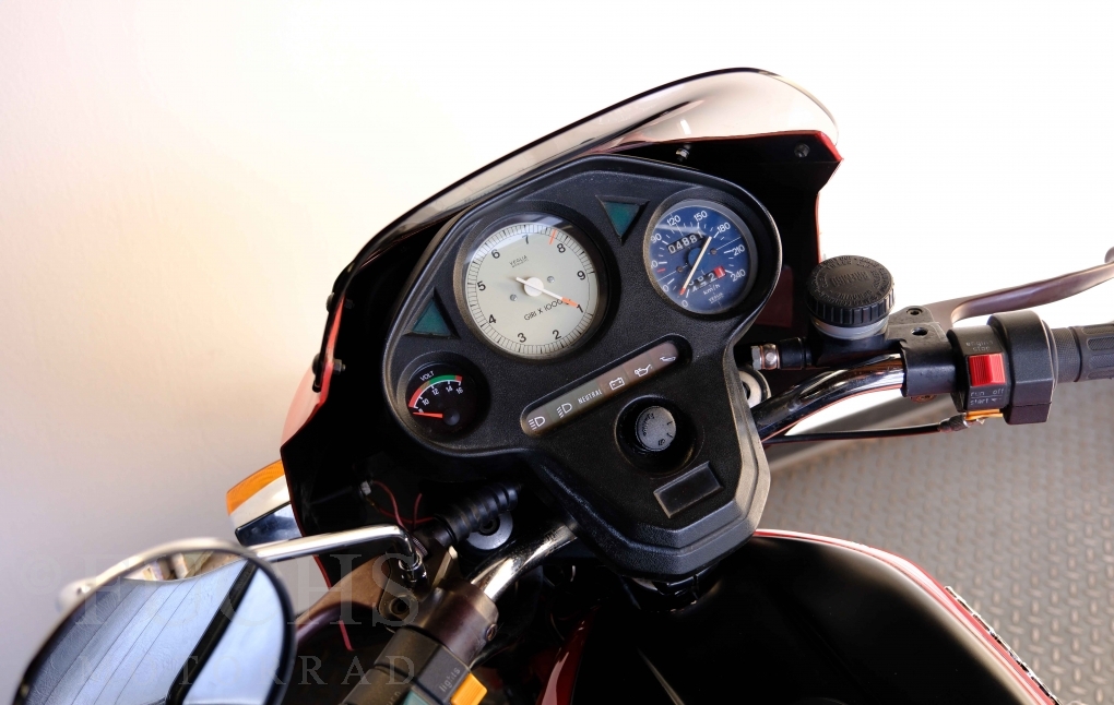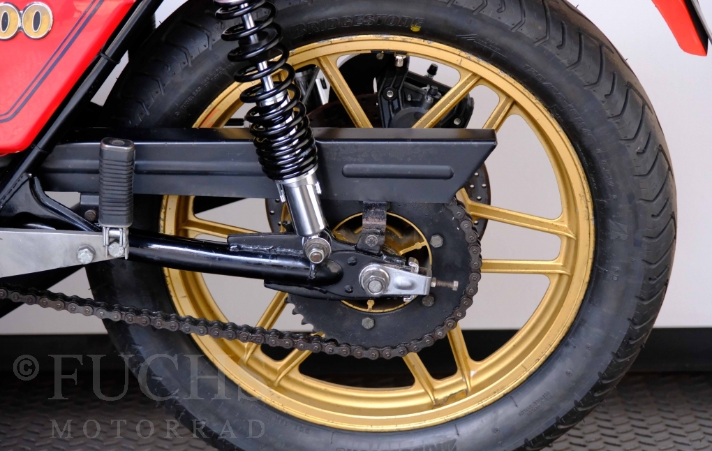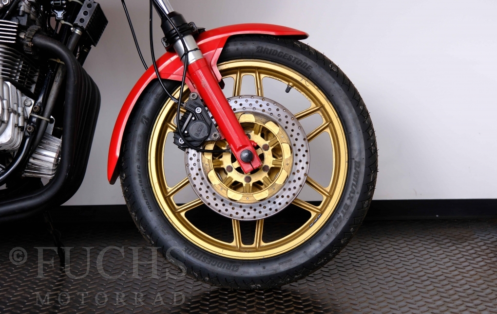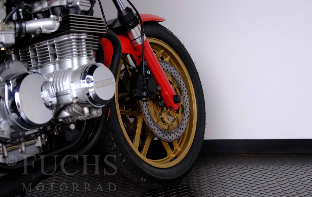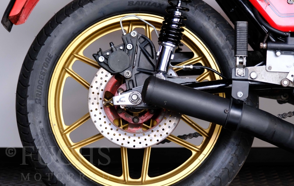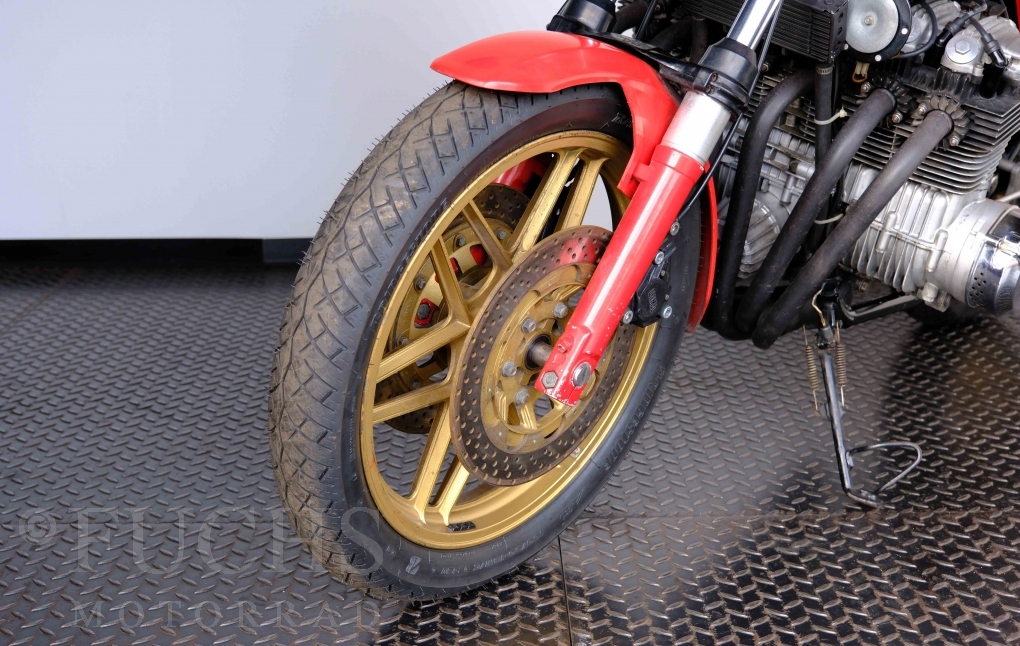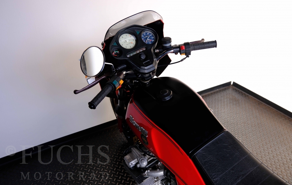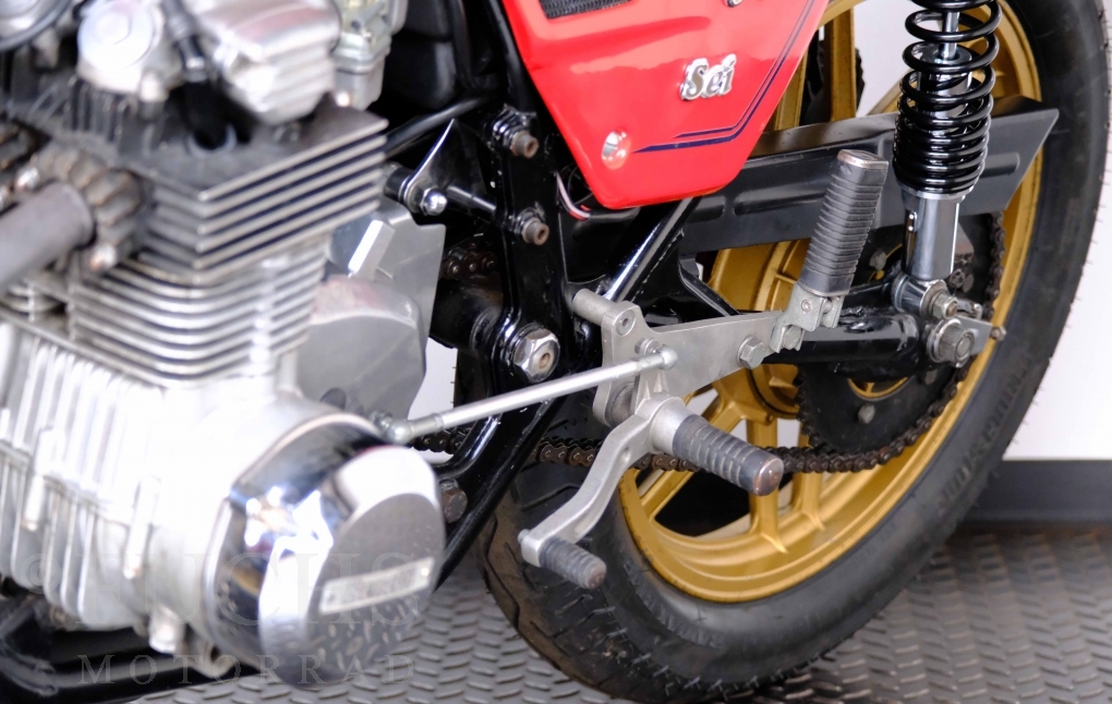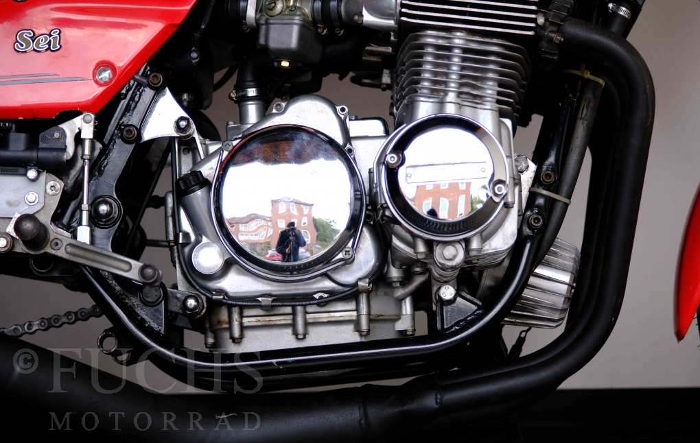 Die Benelli 900 Sei stammt aus Italien und wurde von uns teilweise restauriert. Unser erster Schritt war, dass die Kupplung überholt wurde. Dann haben wir glücklicherweise noch eine sehr gute Marving Auspuffanlage finden können. Damit der schöne Sound auch entspannt genossen werden kann, haben wir eine moderne Zündanlage verbaut. Mit der überholten Bremsanlage, neue IKON stoßdämpfer, neuen Reifen, neuer Batterie steht die schöne Benelli bereit für einen Käufer, der die De Tomaso Zeit bei Benelli erfahren will und dabei sich über ein grandioses Sounderlebnis des 6-Zylinders freut. Deutsche Fahrzeugpapiere liegen vor.